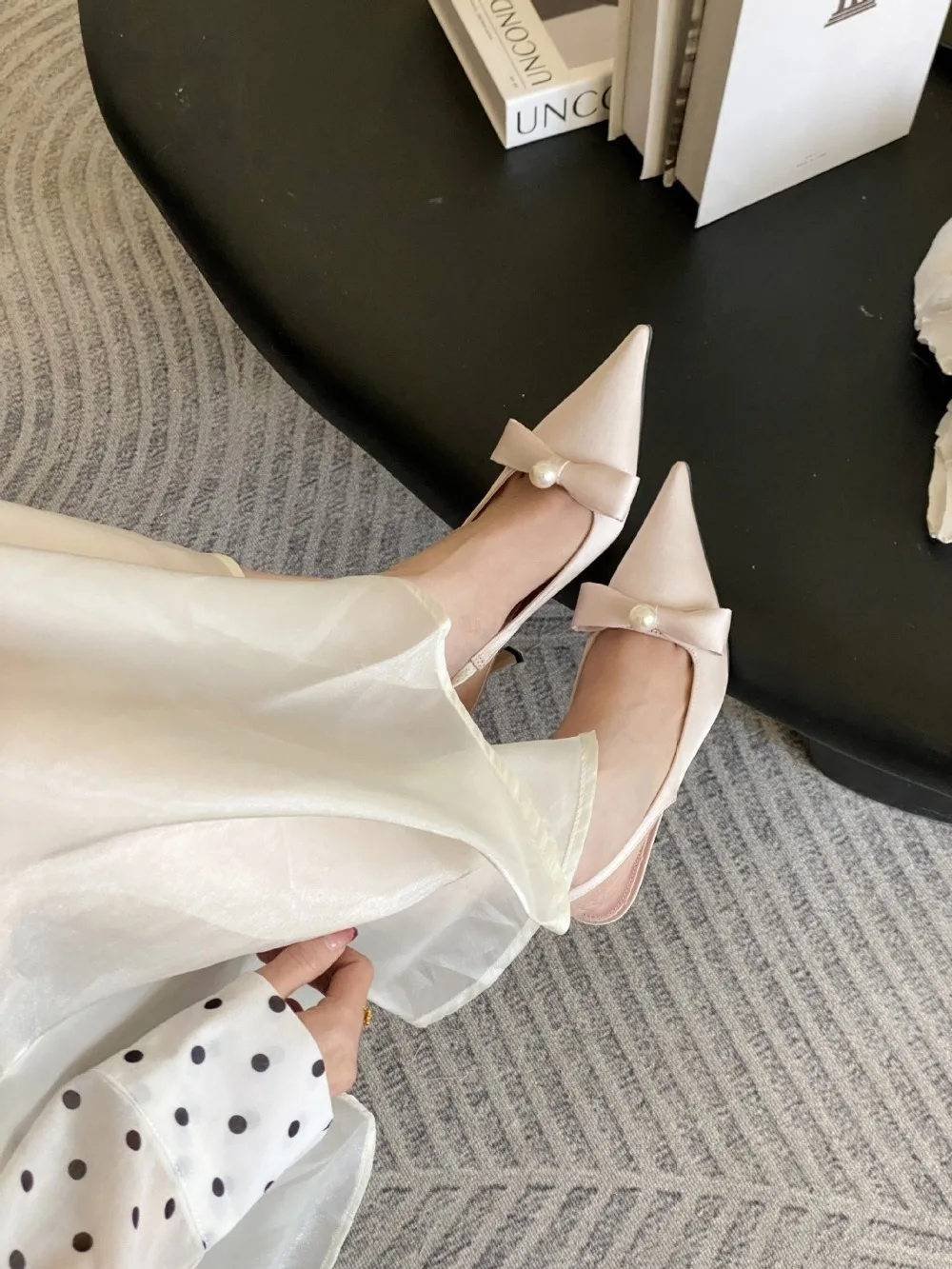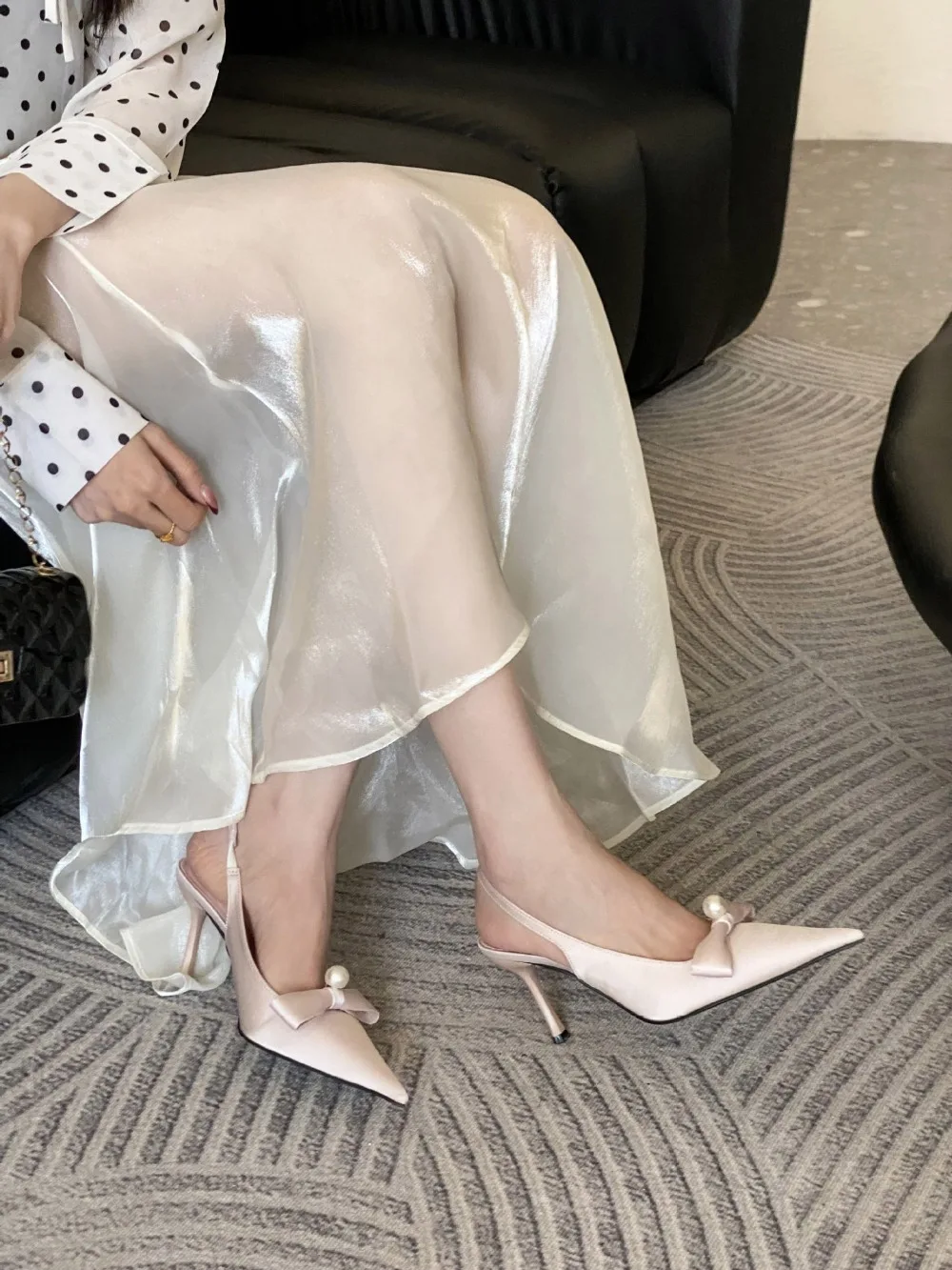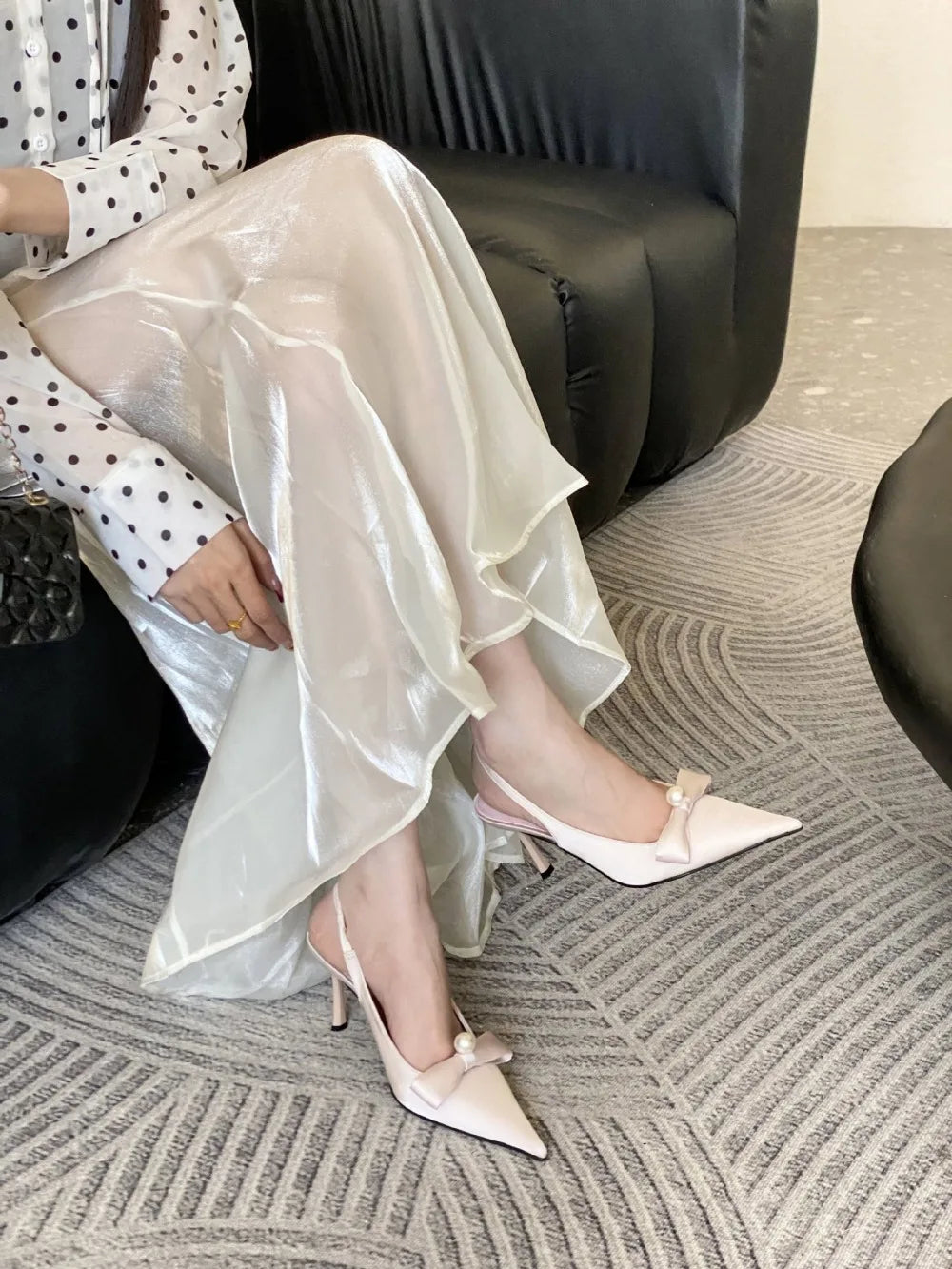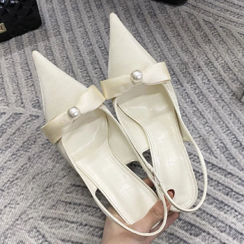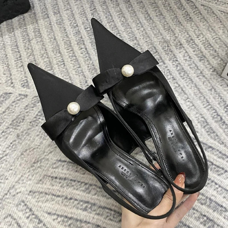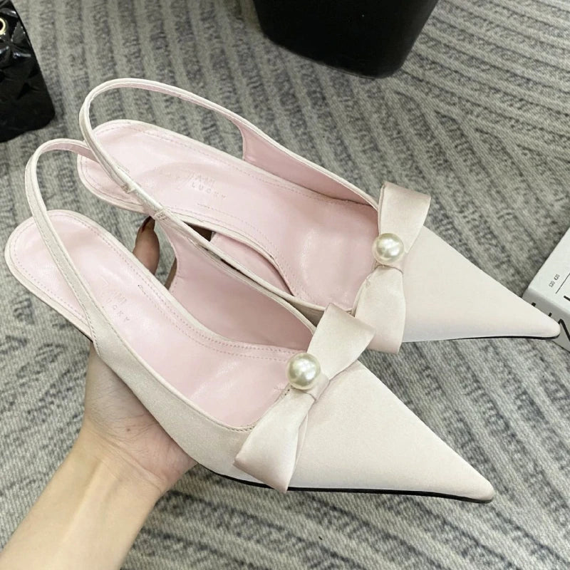 KYLETHOMASW - High Quality Satin Bow Pumps Women Sexy Pointed Toe Thin Heeled Backless Dress Shoes Fashion Brand Designer Shallow Mouth Sandal