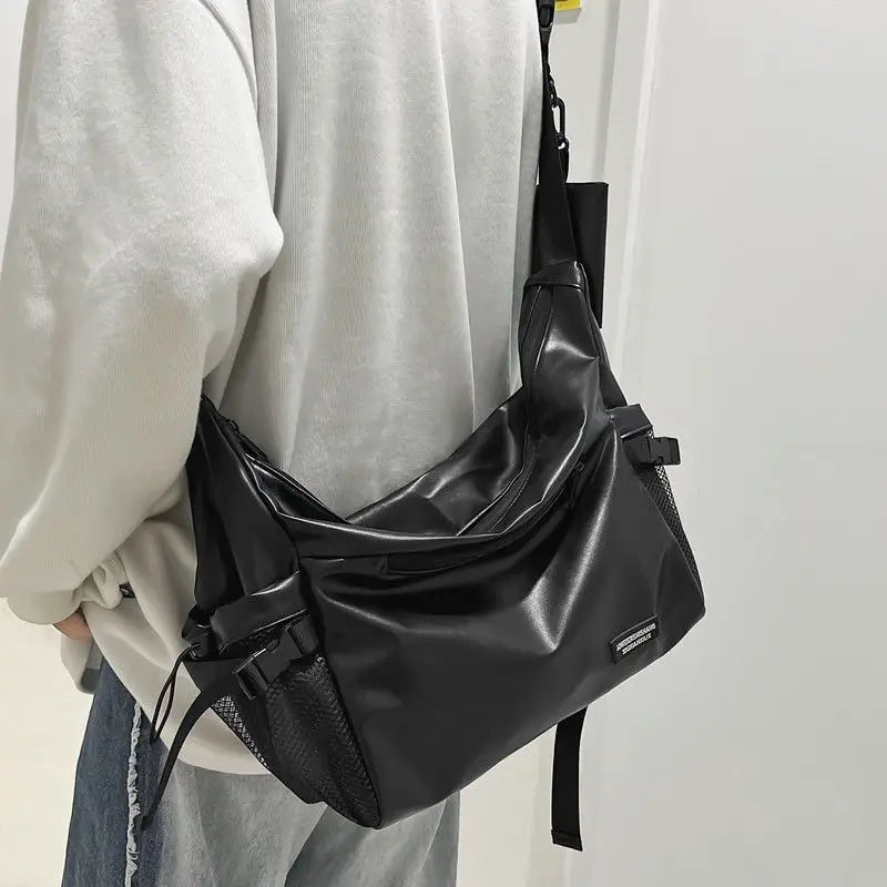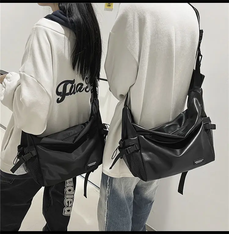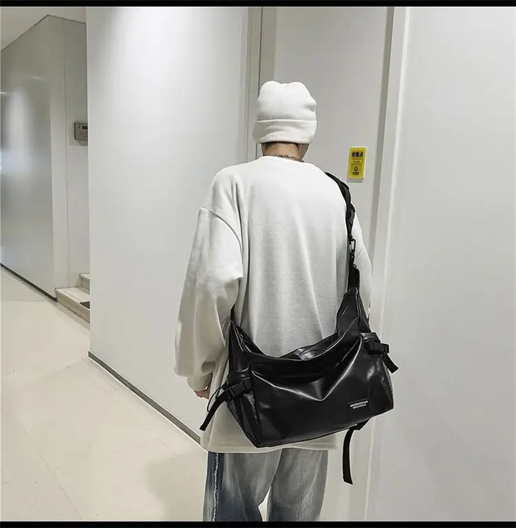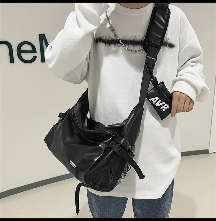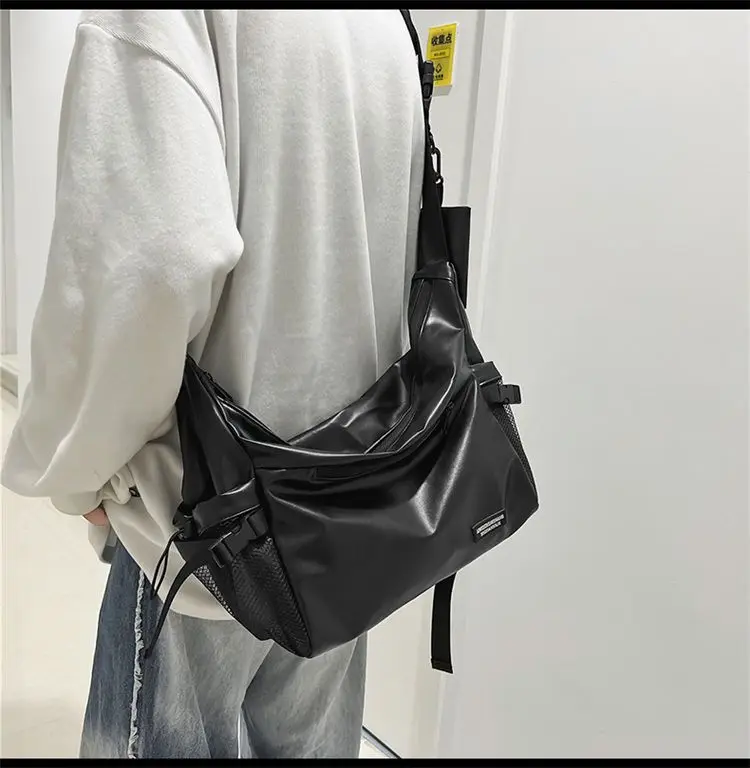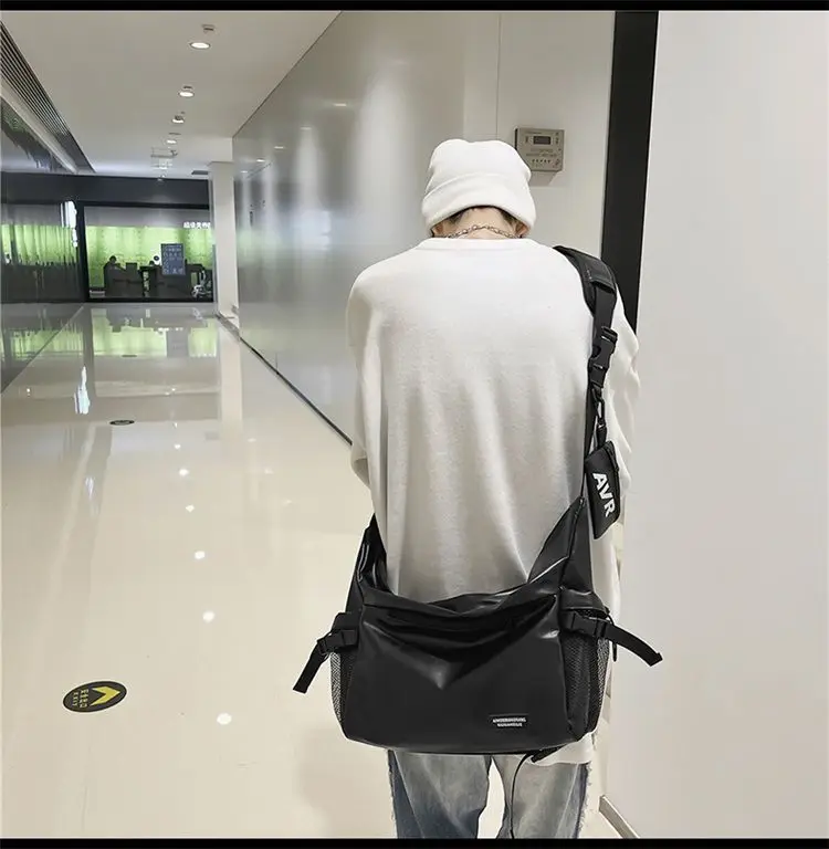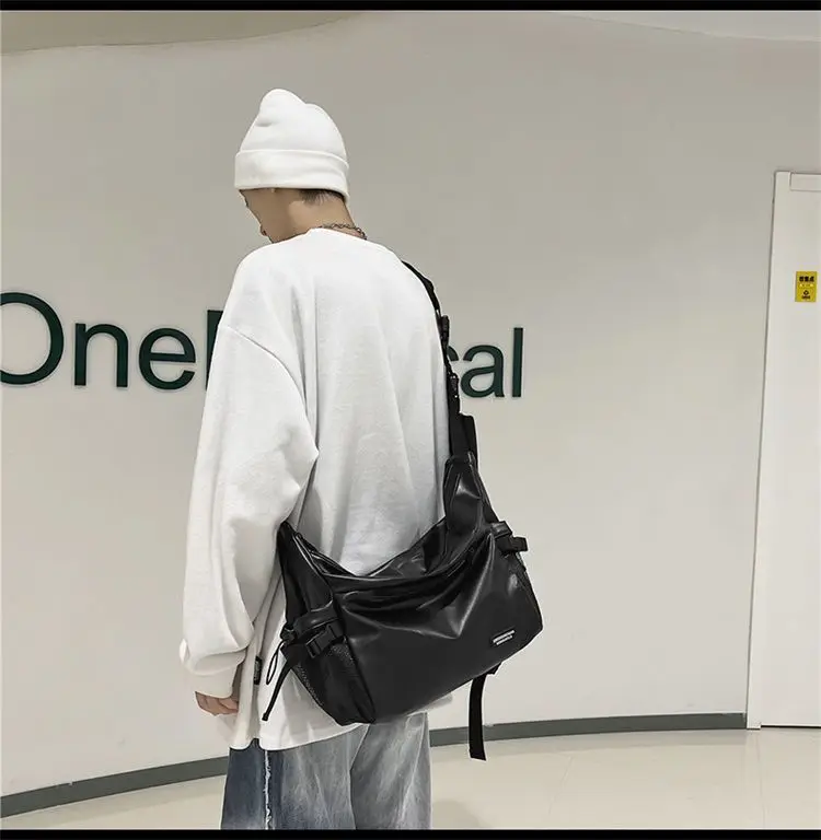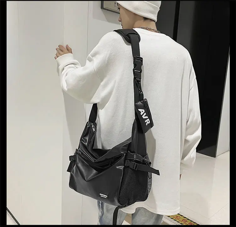Kylethomasw Korean Fashion Trendy Pu Leather Simple Men Crossbody Bag Outdoor Sport Unisex Messenger Bag with Coin Purse Designer Bag