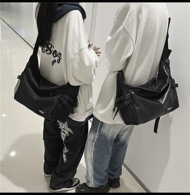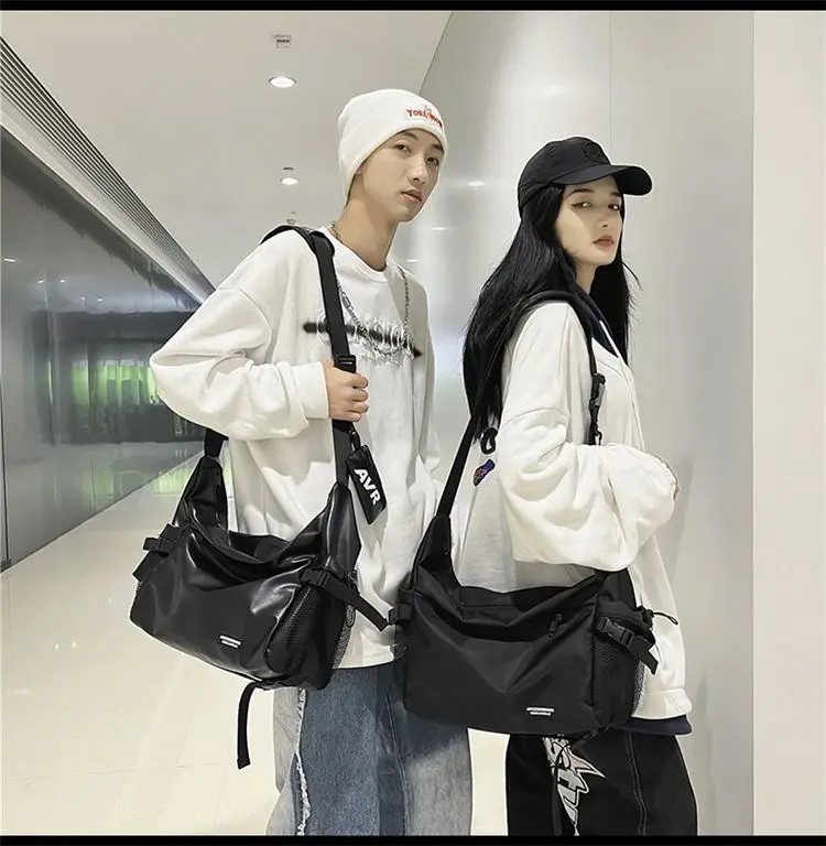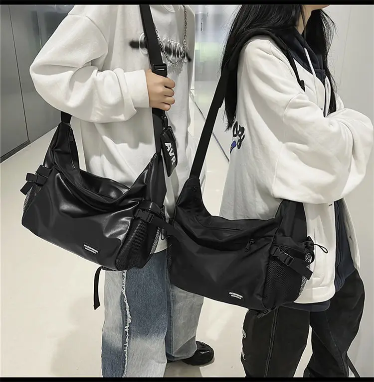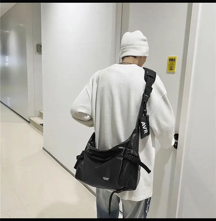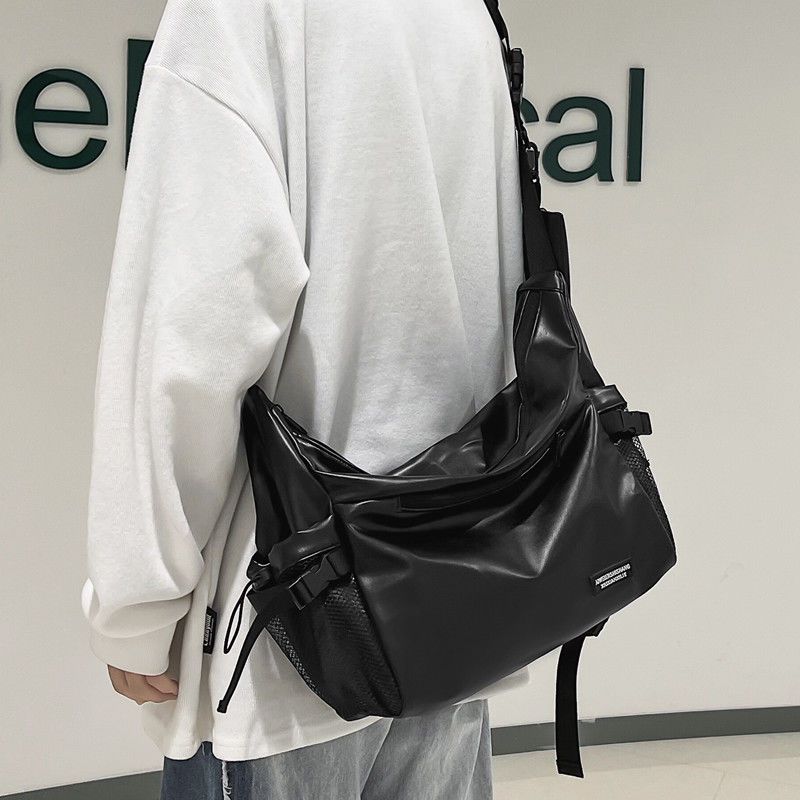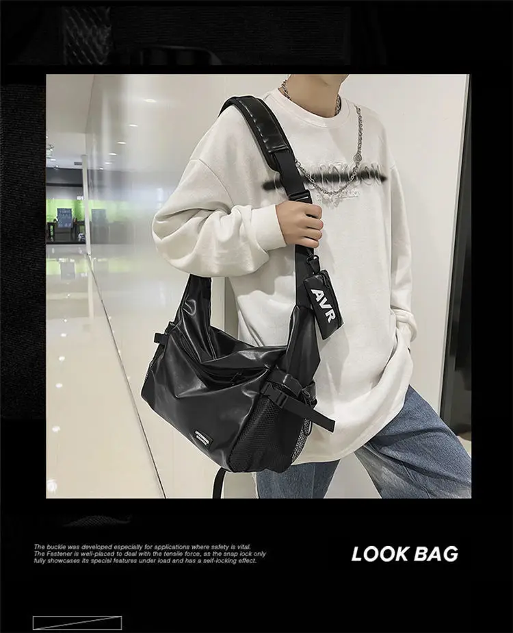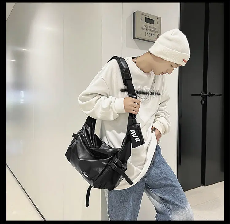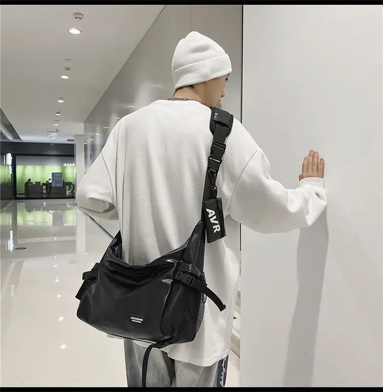 Kylethomasw Korean Fashion Trendy Pu Leather Simple Men Crossbody Bag Outdoor Sport Unisex Messenger Bag with Coin Purse Designer Bag