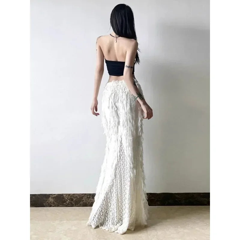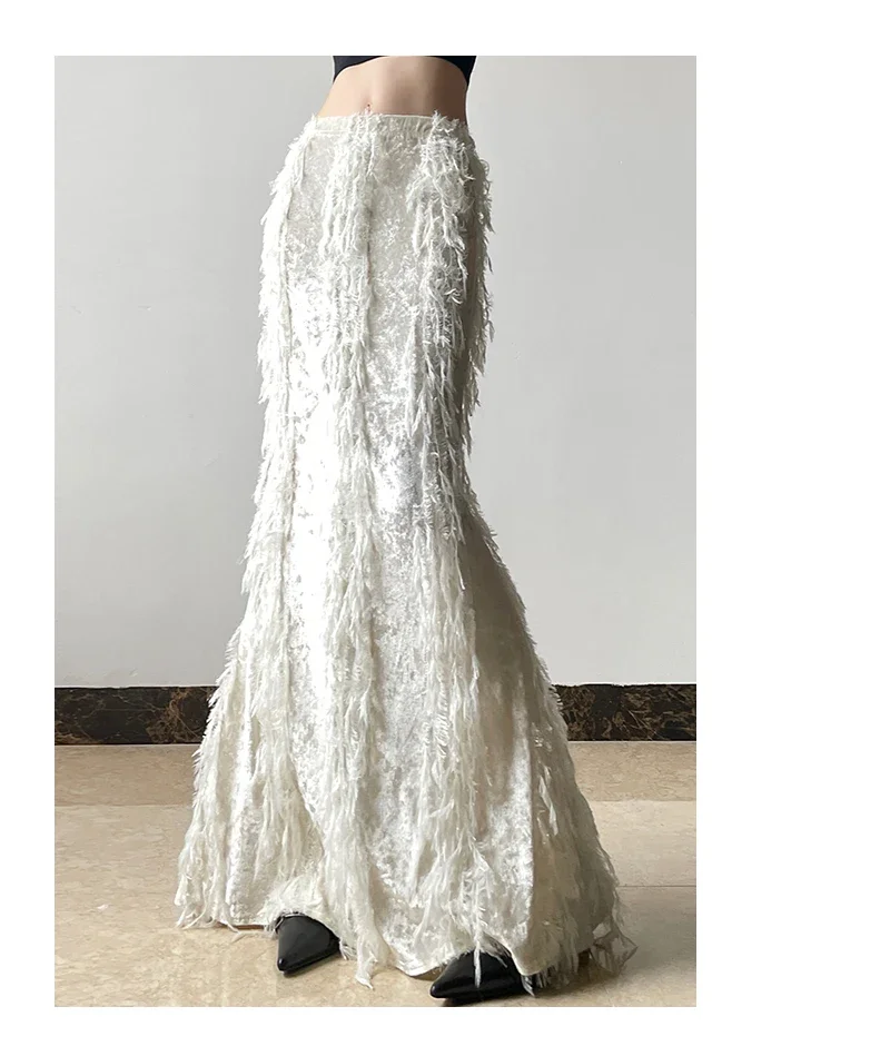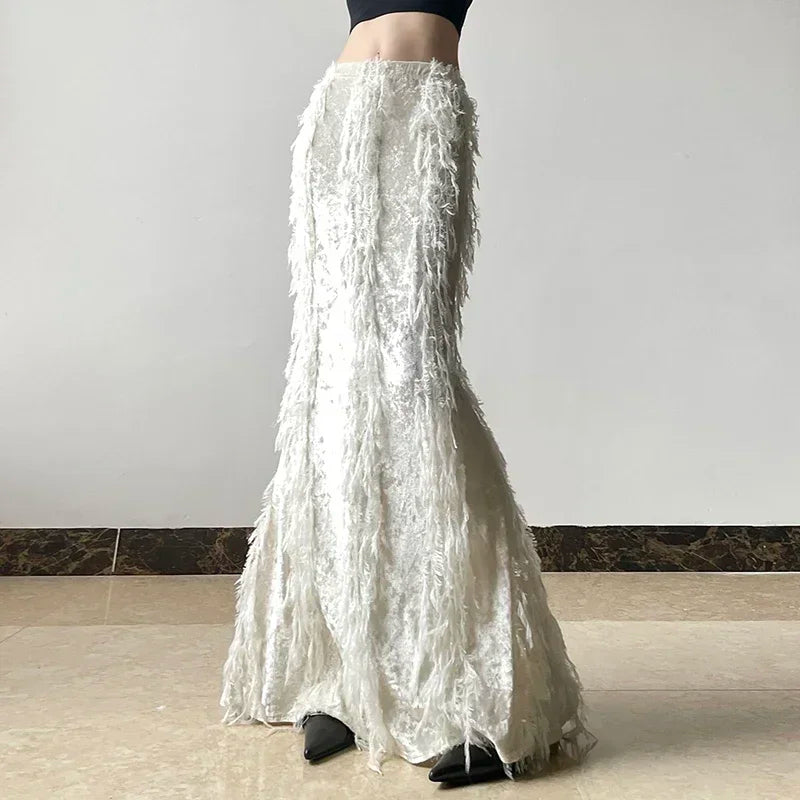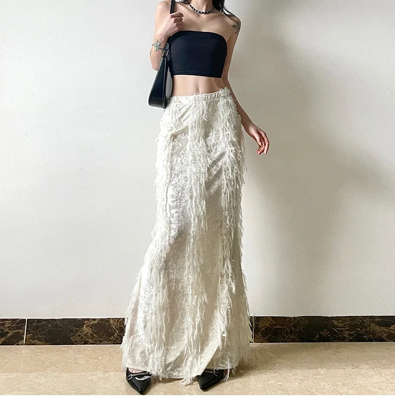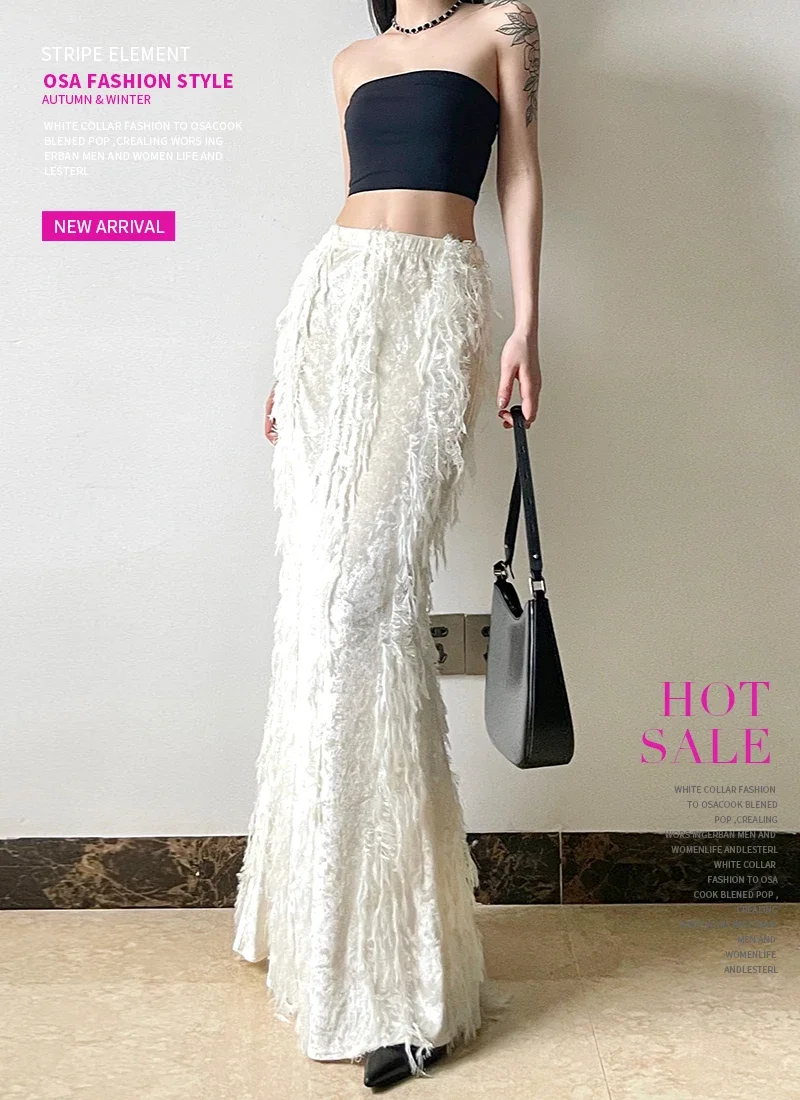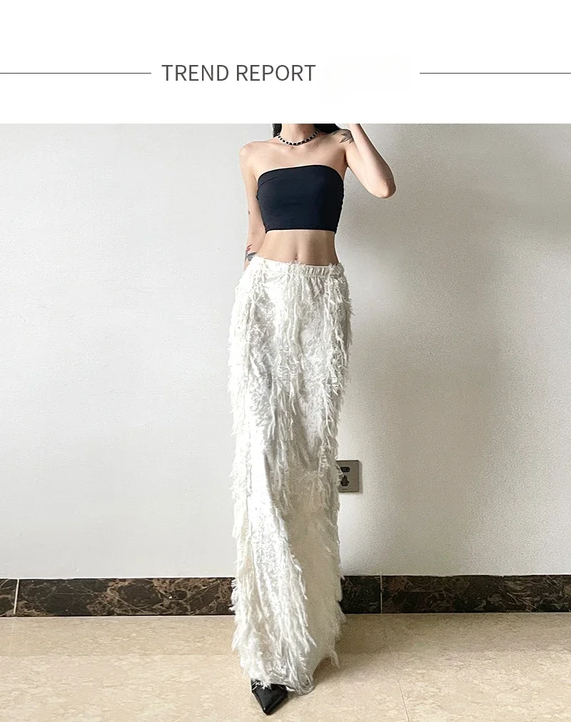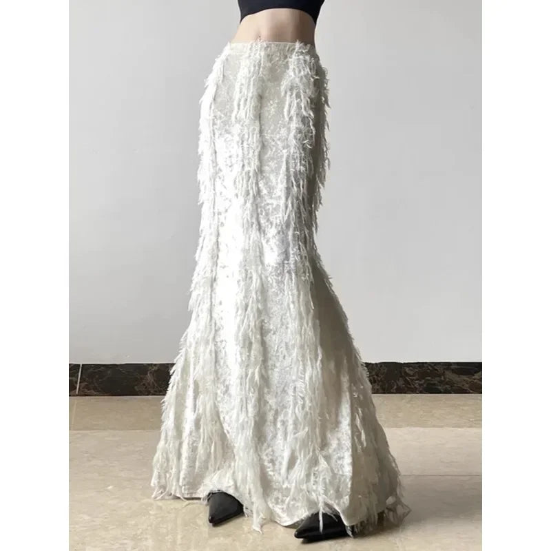 Kylethomasw Korean High Waist Solid Color All-match Mid-length Skirt Women Winter New Streetwear Tassel Stitching Casual A-line Skirt