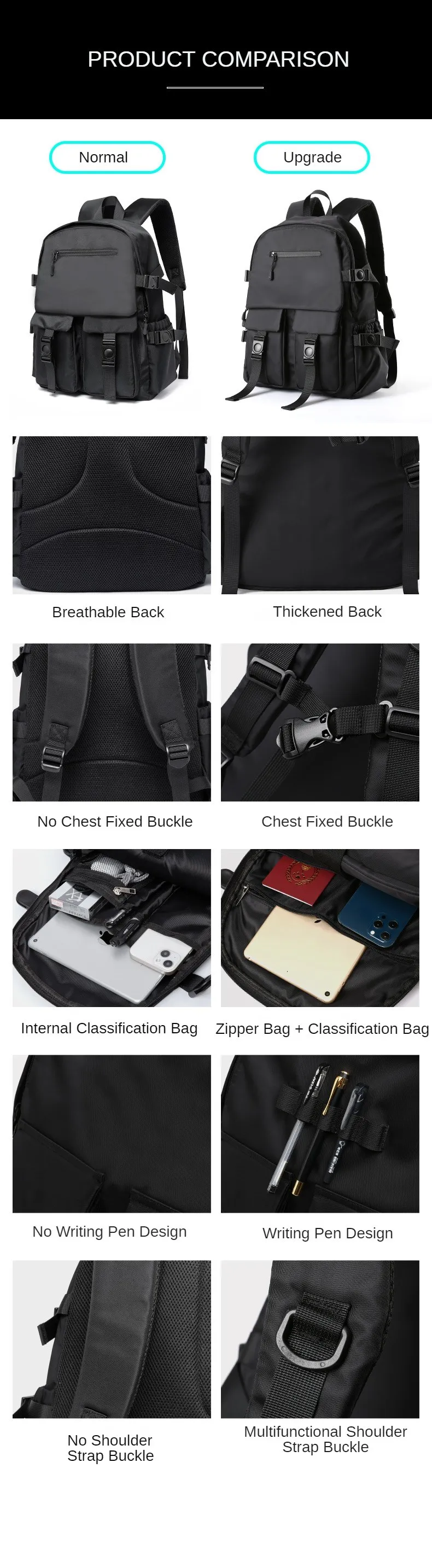 Kylethomasw Laptop Backpack 15.6 inches for Men Oxford Waterproof Casual Student Bags Business Travel Light Large Capacity Zipper Mochila