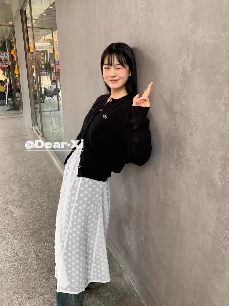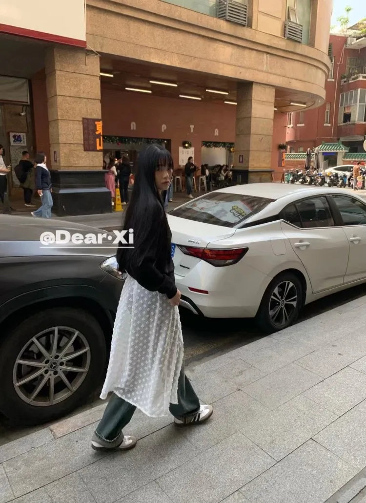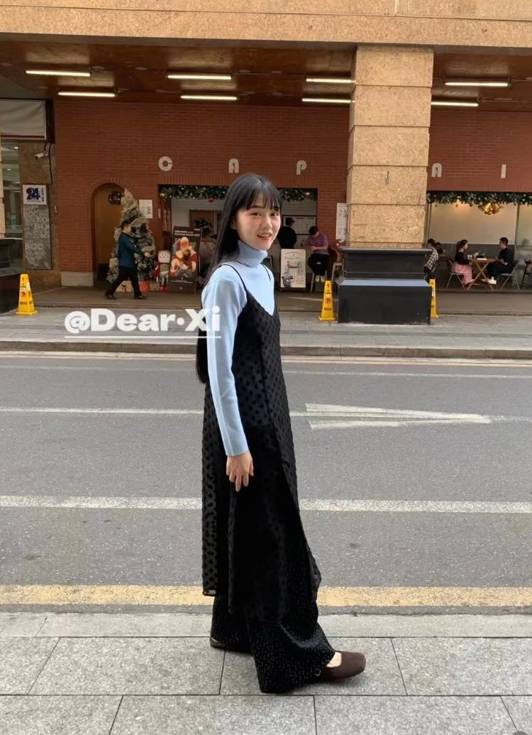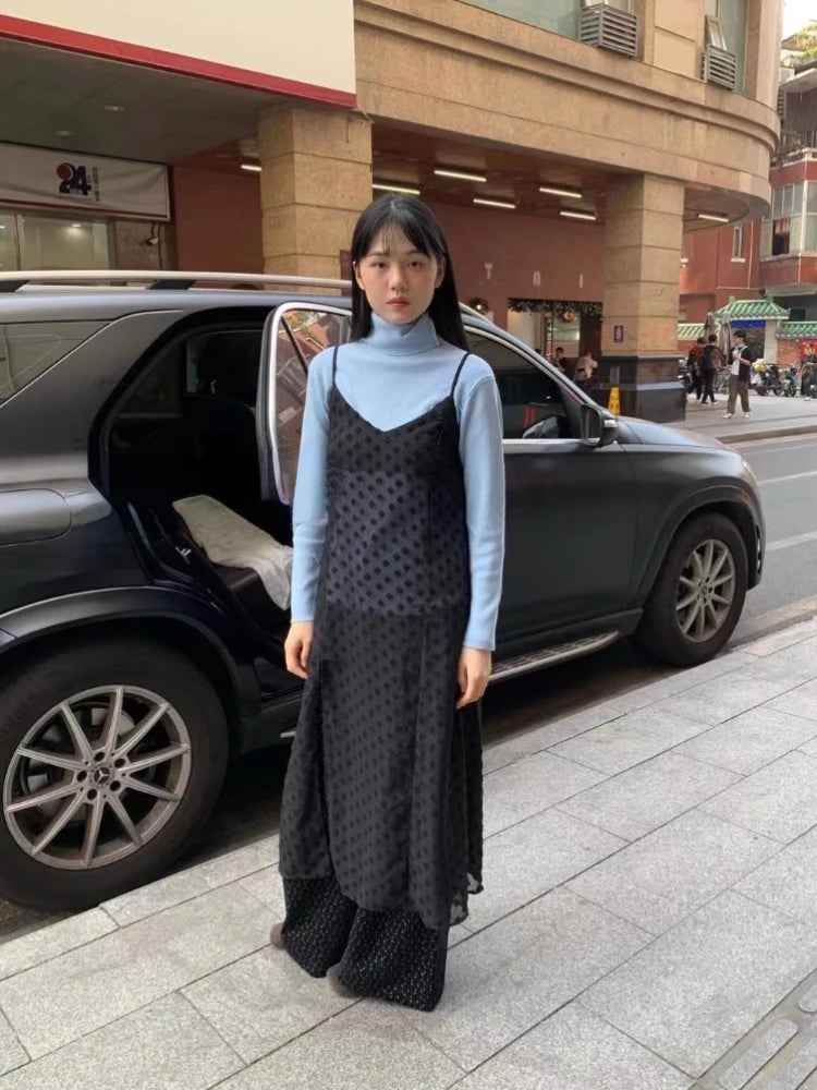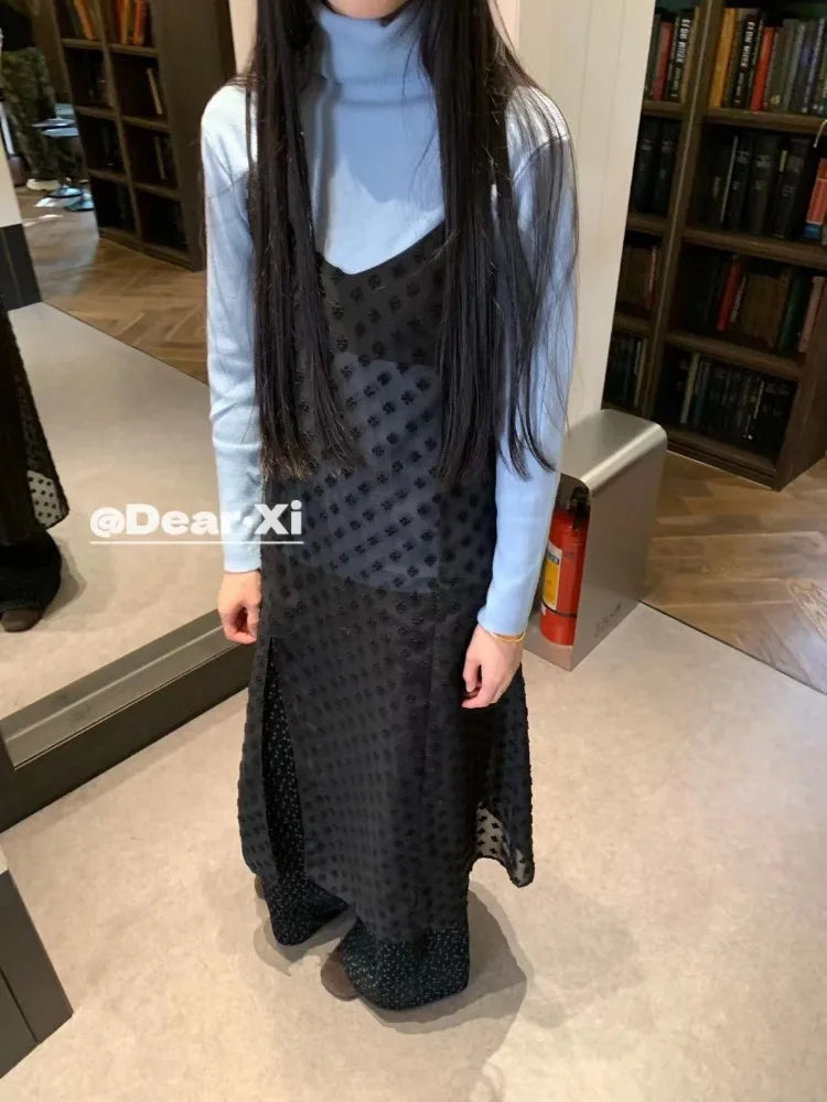 KYLETHOMASW - Loose Thin Dress Floral Embroidery Perspective Skirt Mid-length Lace Halter Dresses Korean Fashion Vestidos Para Mujer