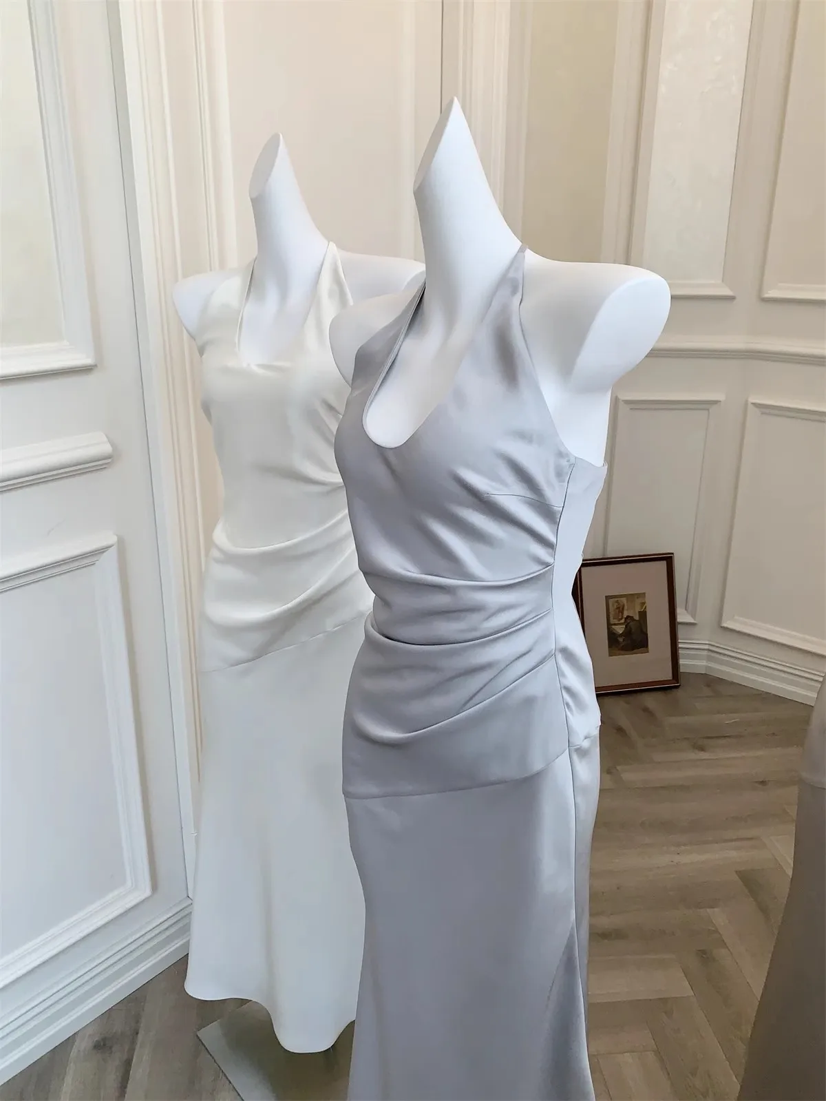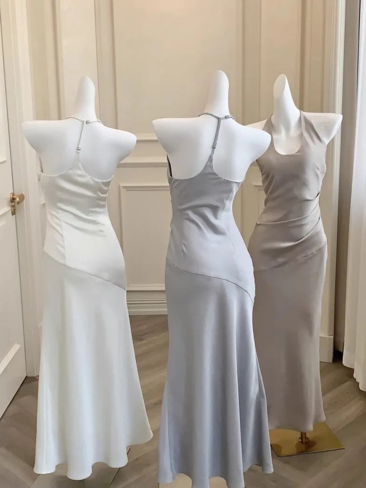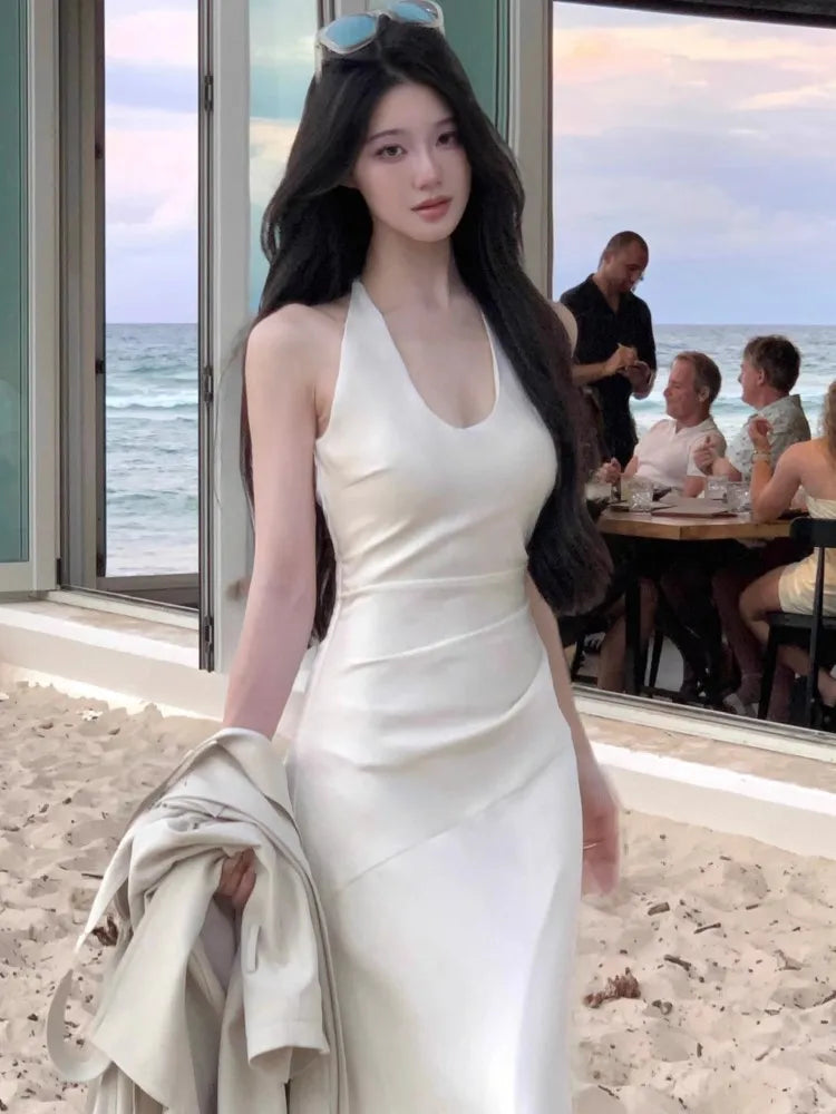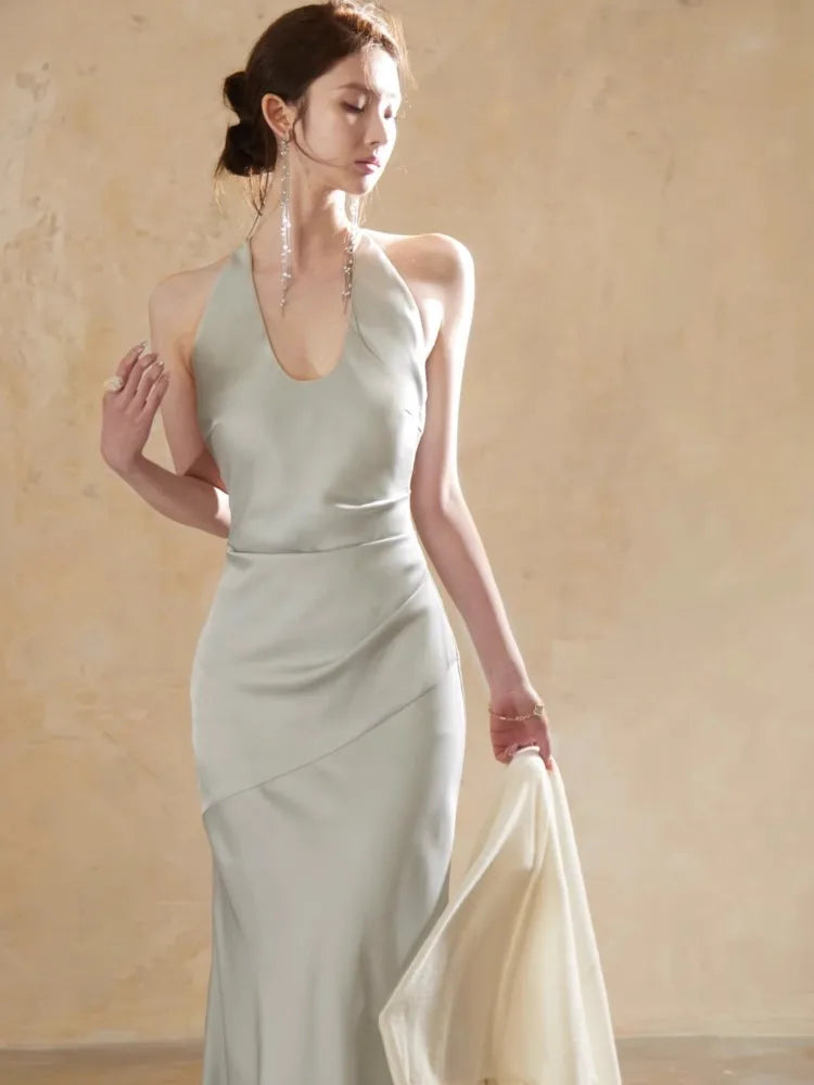 KYLETHOMASW - Luxury Slim Fit Long Dresses Elegant Sexy White Cambridge Blue Evening Dresses Spring Neck-Mounted Backless Mermaid Vestidos