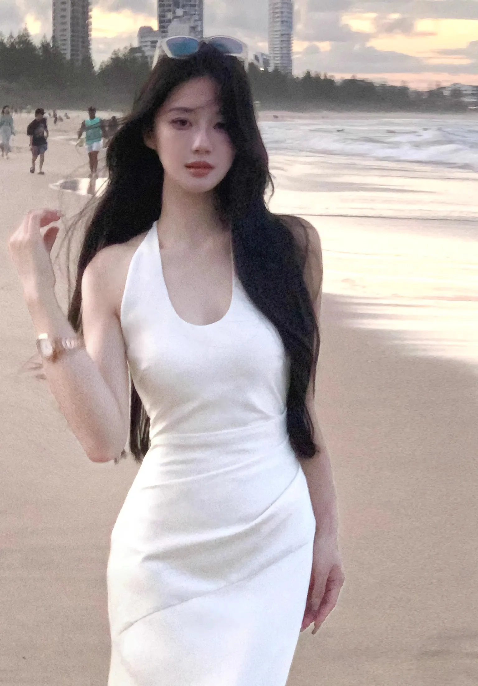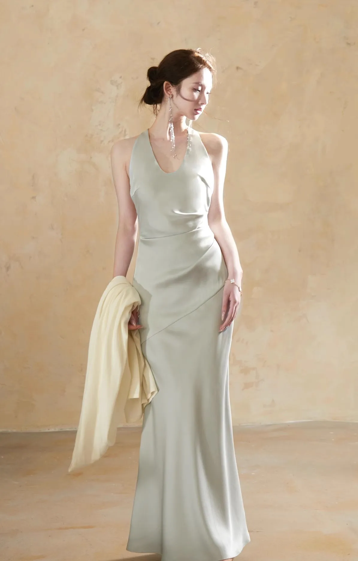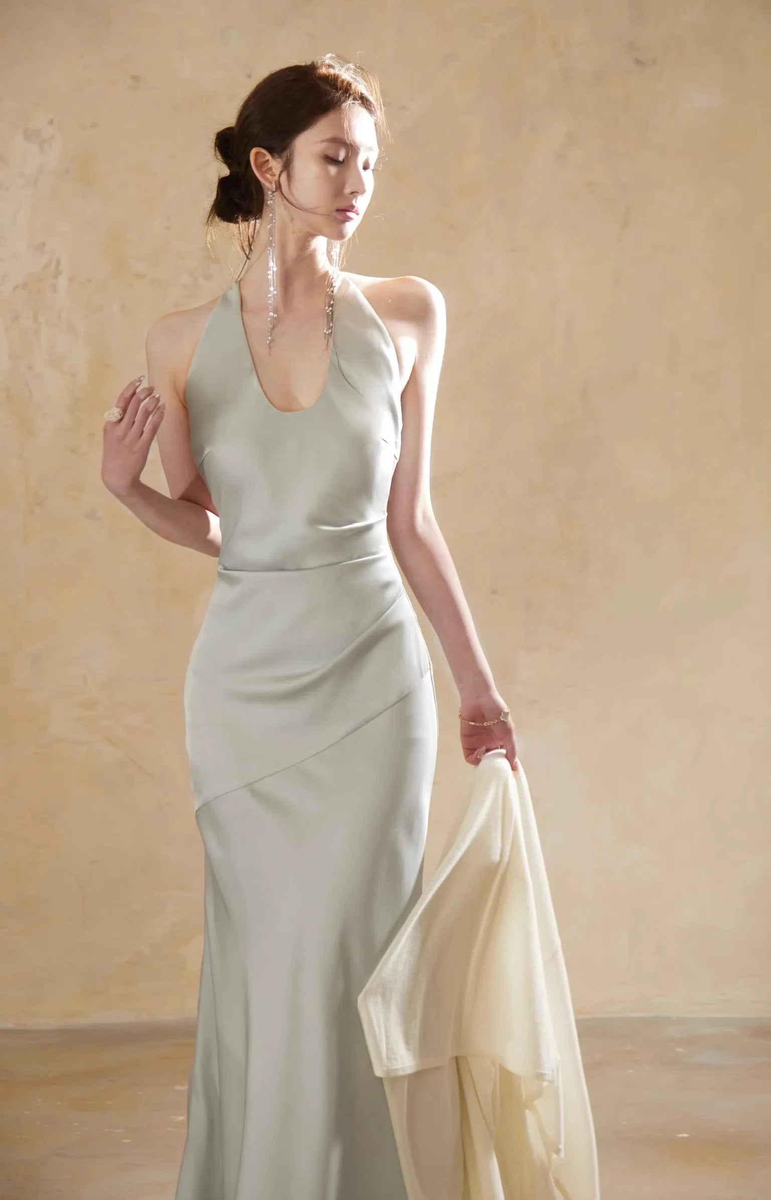 KYLETHOMASW - Luxury Slim Fit Long Dresses Elegant Sexy White Cambridge Blue Evening Dresses Spring Neck-Mounted Backless Mermaid Vestidos