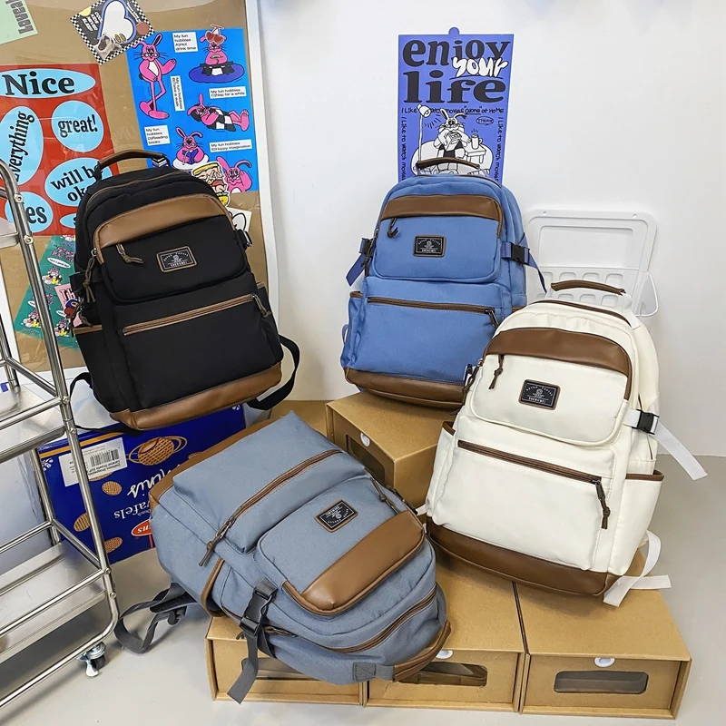 Men Women School Backpack Trendy Girl Boy Laptop College Backpack Fashion Female Book Bag New Lady Male Travel White Student Bag