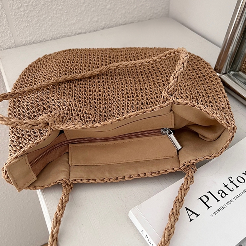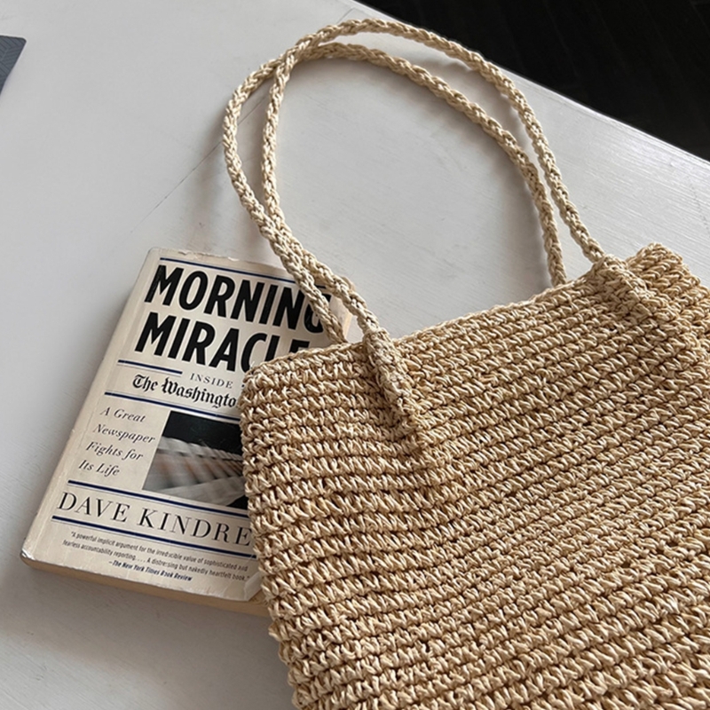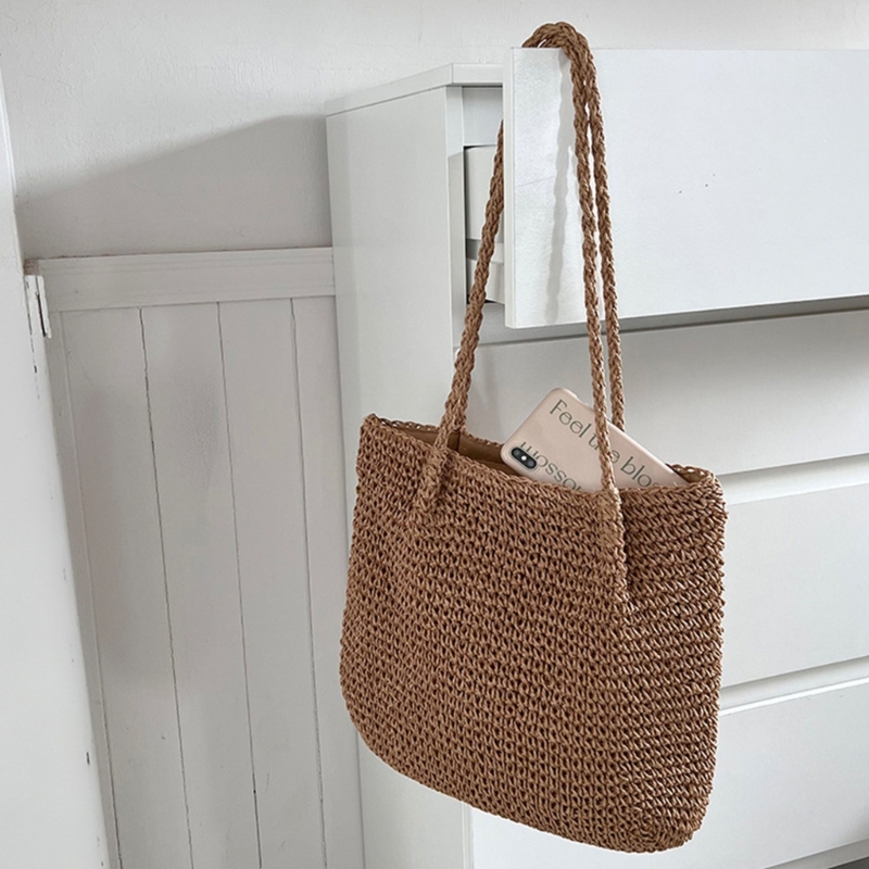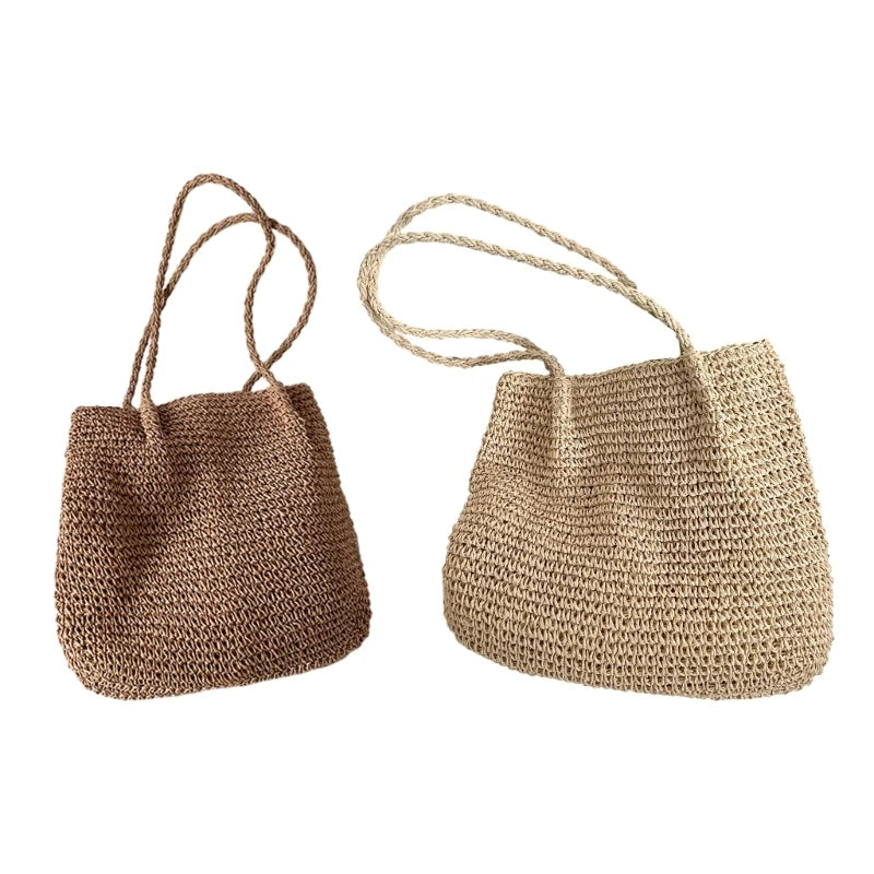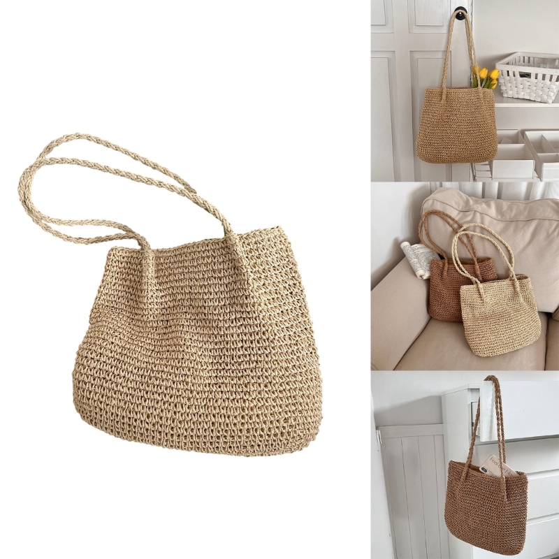 Kylethomasw New Bucket Bags Straw Woven Fashion Bag Casual Travel Vacation Bag Rattan Summer-Beach Shoulder Bag for Women Girl