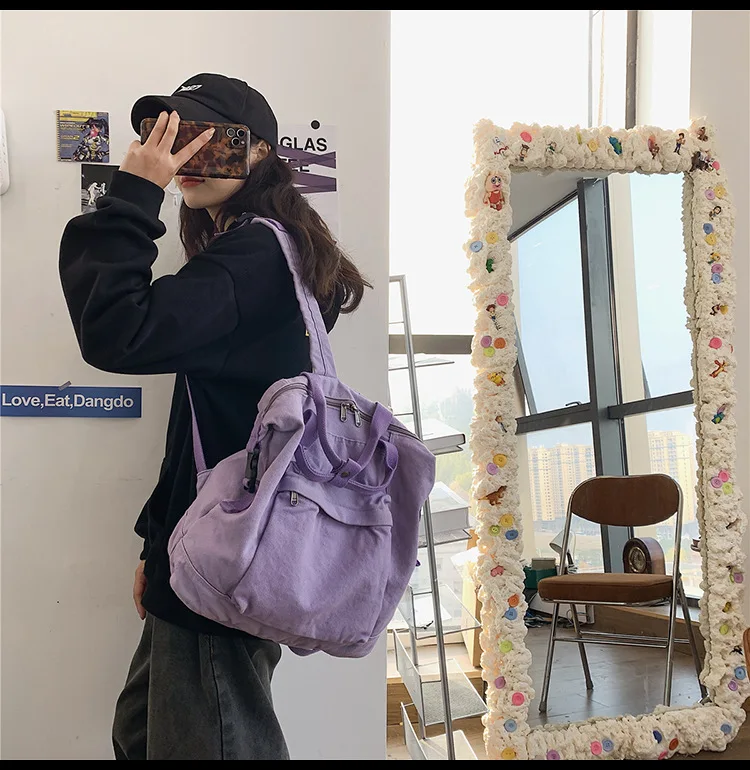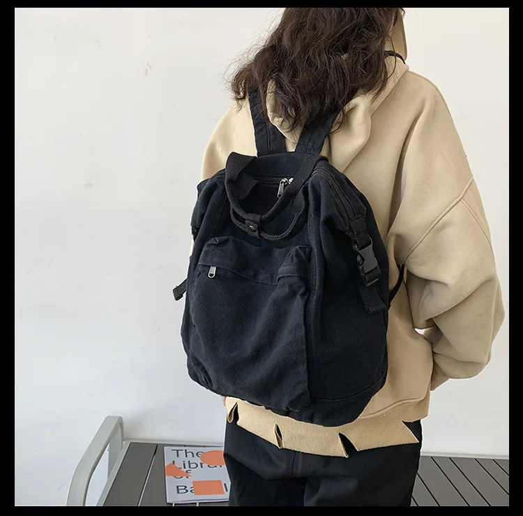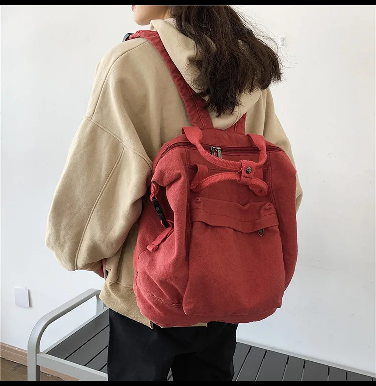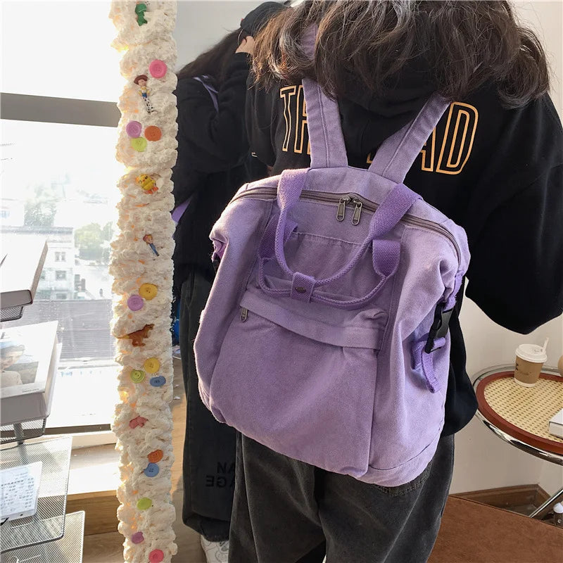 Kylethomasw New Solid Color Women's Backpack Simple School Bag For Teenage Girl Shoulder Travel Bag School Pack Large Capacity Backpack