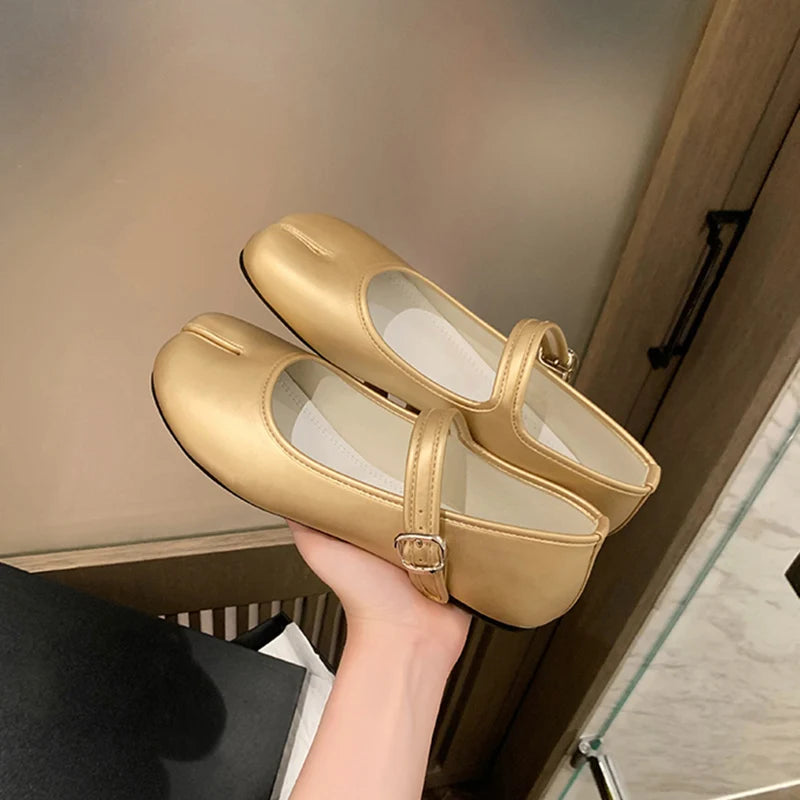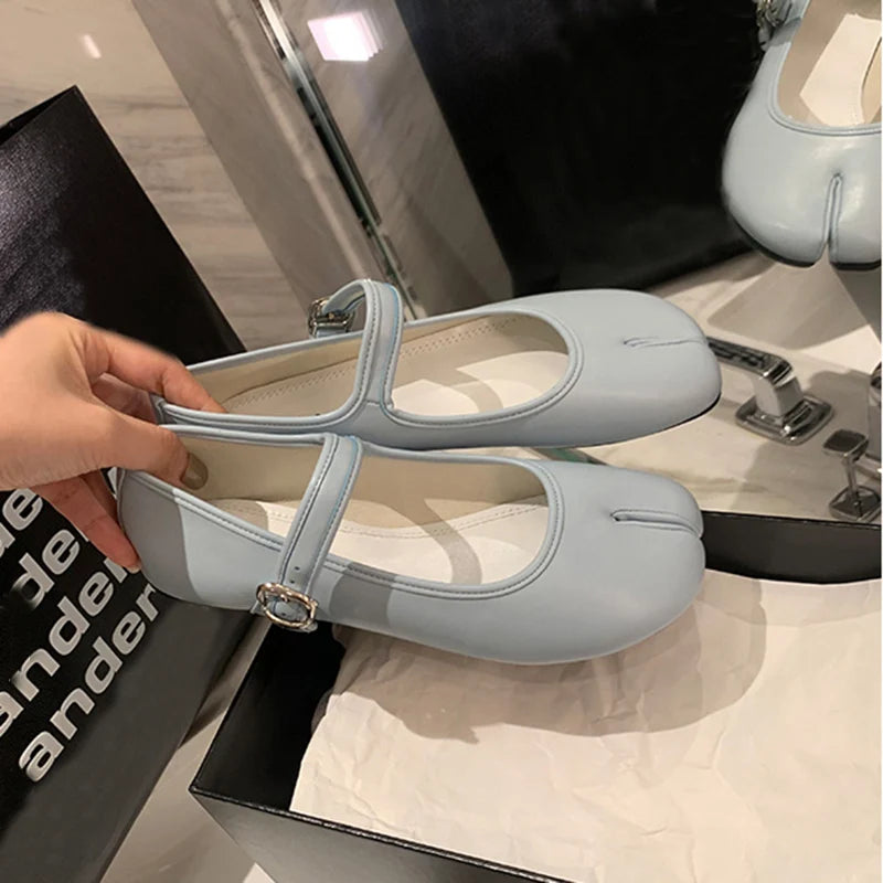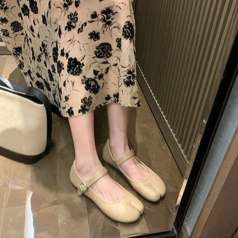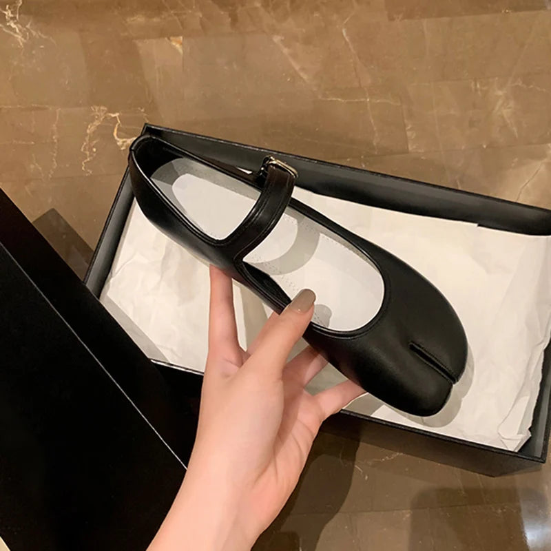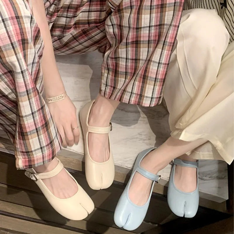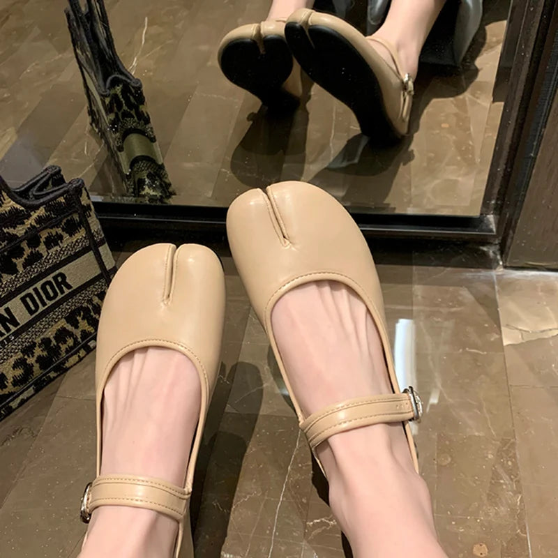 KYLETHOMASW - New Split Toe Tabi Shoes Women Buckle Mary Janes Shoes Women Flats chaussure femme Leisure Ladies Shoes Fashion zapatos de mujer