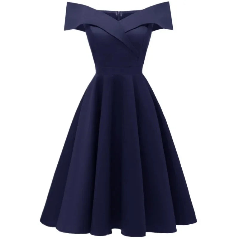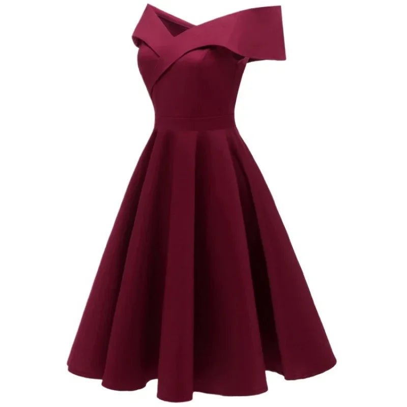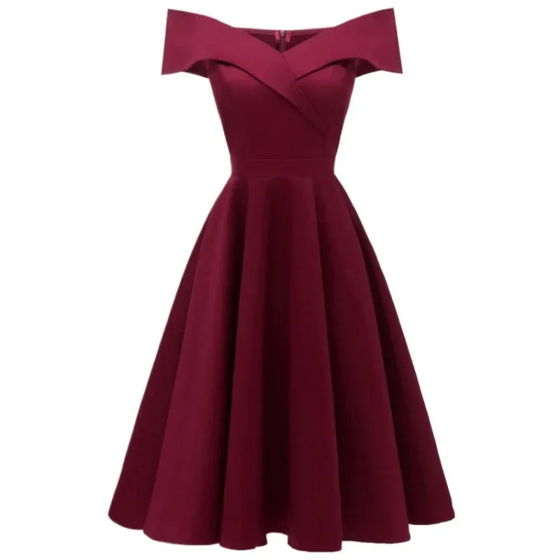 KYLETHOMASW - New Vintage Women Summer Dresses Off Shoulder V-Neck Retro 50s 60s Elegant Dress Sexy Rockabilly Party Dress Midi Vestidos
