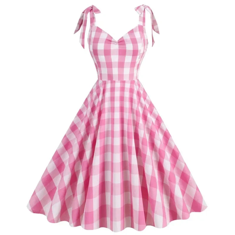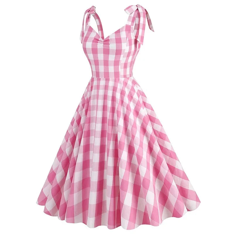 KYLETHOMASW - New Women's 1950s 60s Rockabilly Dress Cocktail Dress Checked Retro Swing Dress Wedding Party Maxi Beach Dresses Women's