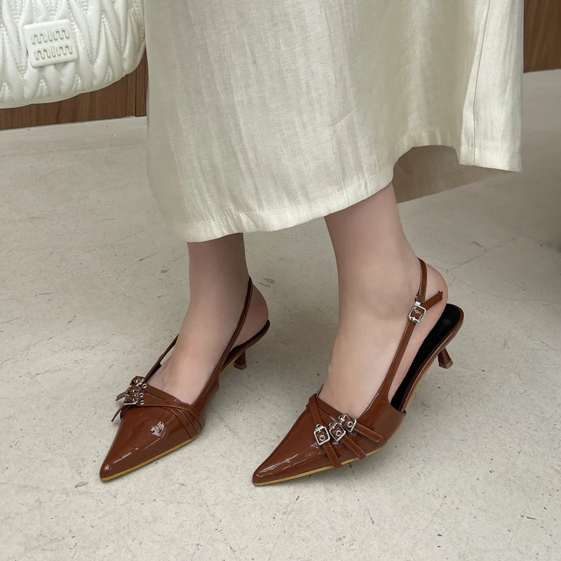KYLETHOMASW - Orange Ladie Pumps Pink High Heels Sexy Pointed Toe Slingback Shoes Women Belt Buckle Low Heel Summer Office Shoes Blue