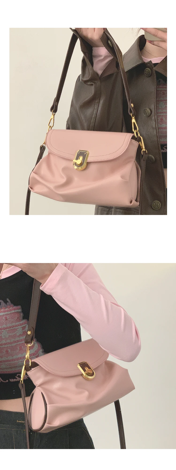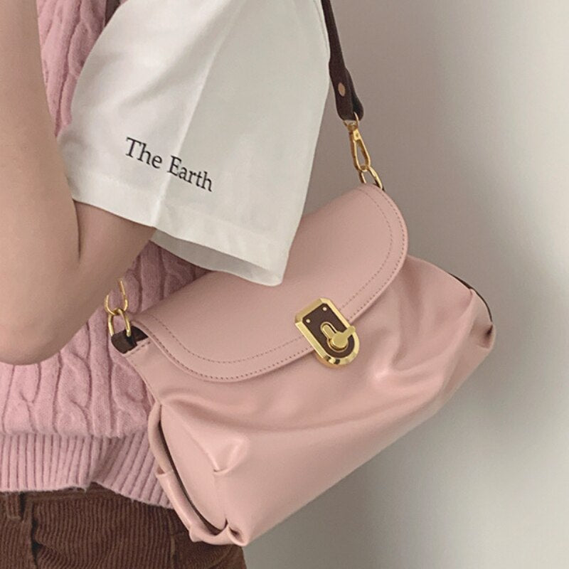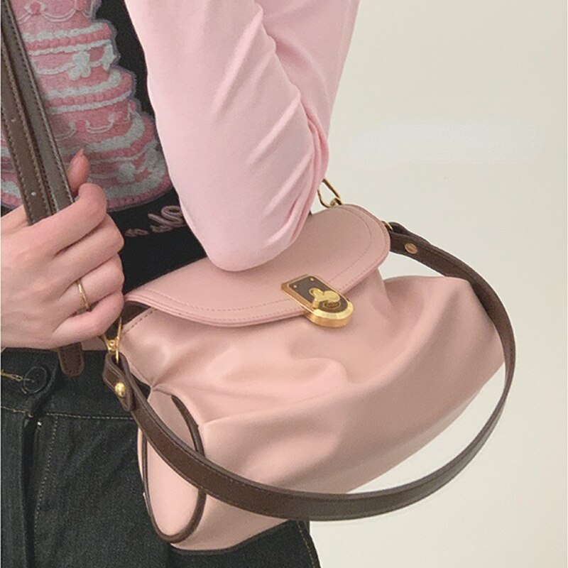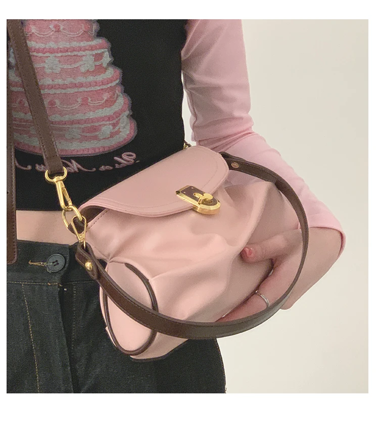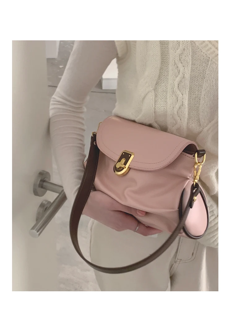 Pink Pleated Womens TopHandle Bags New Luxury Designer Crossbody Bag for Phone Elegant Allmatch Korean Style Shoulder Bag