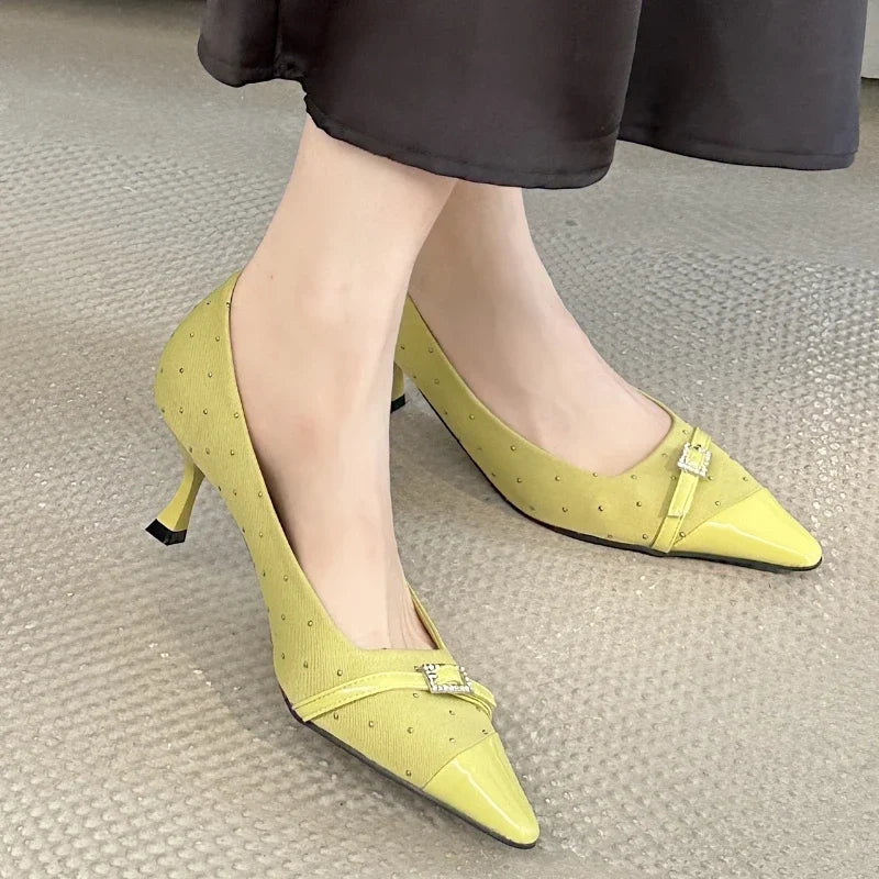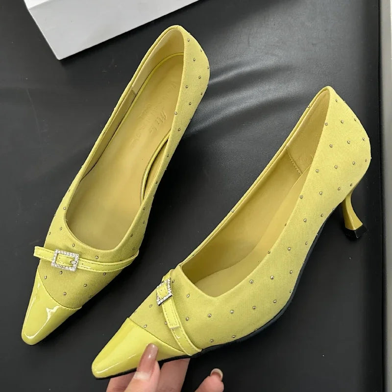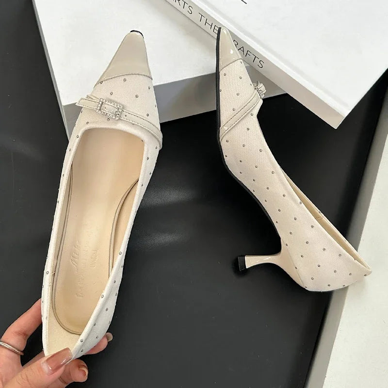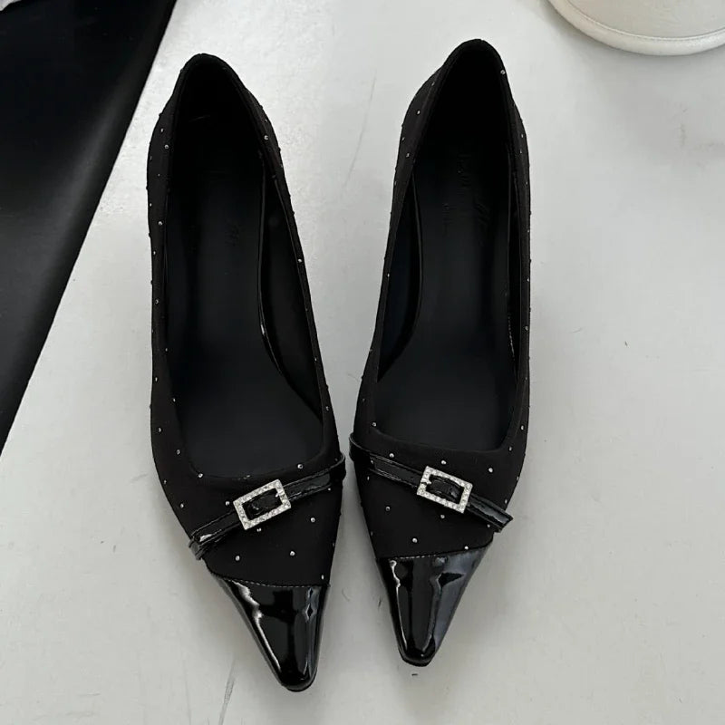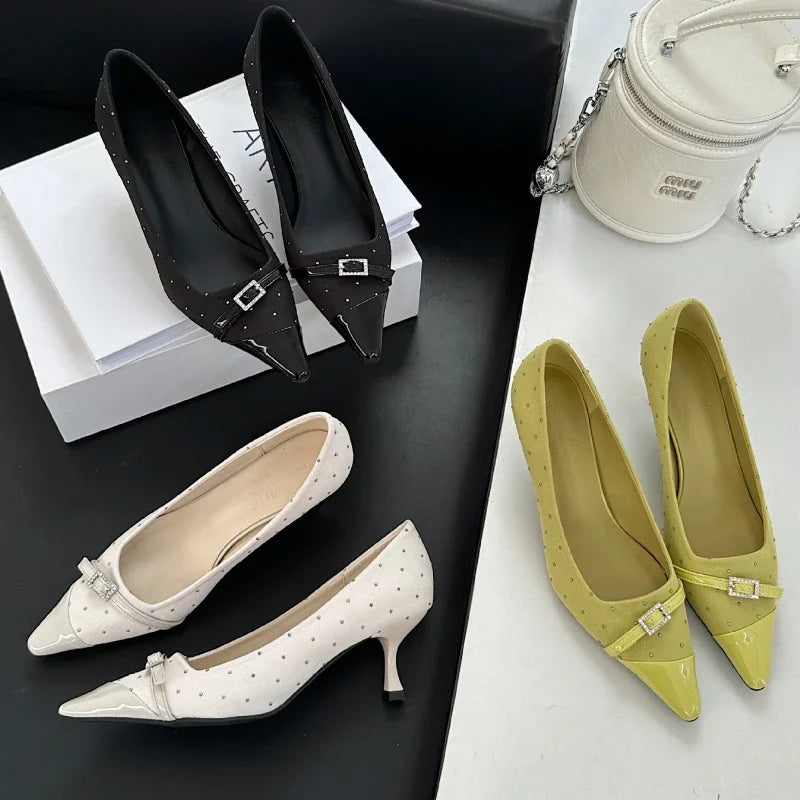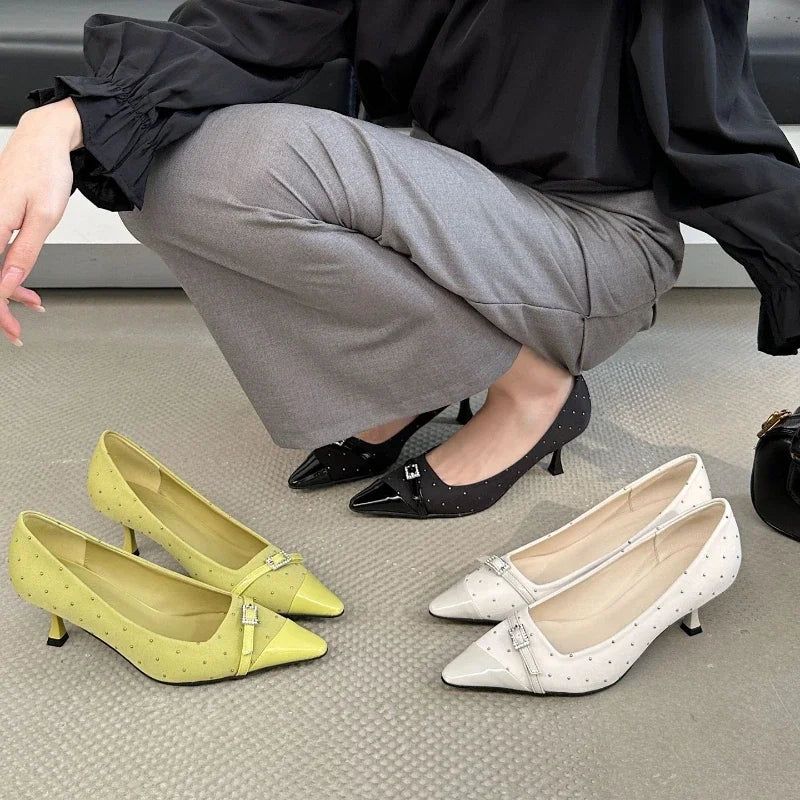 Kylethomasw Pointed Toe Low Heel Women Shoes Belt Buckle Elegant Office Thin High Heels Female Shallow Pumps Women Zapatos De Mujer