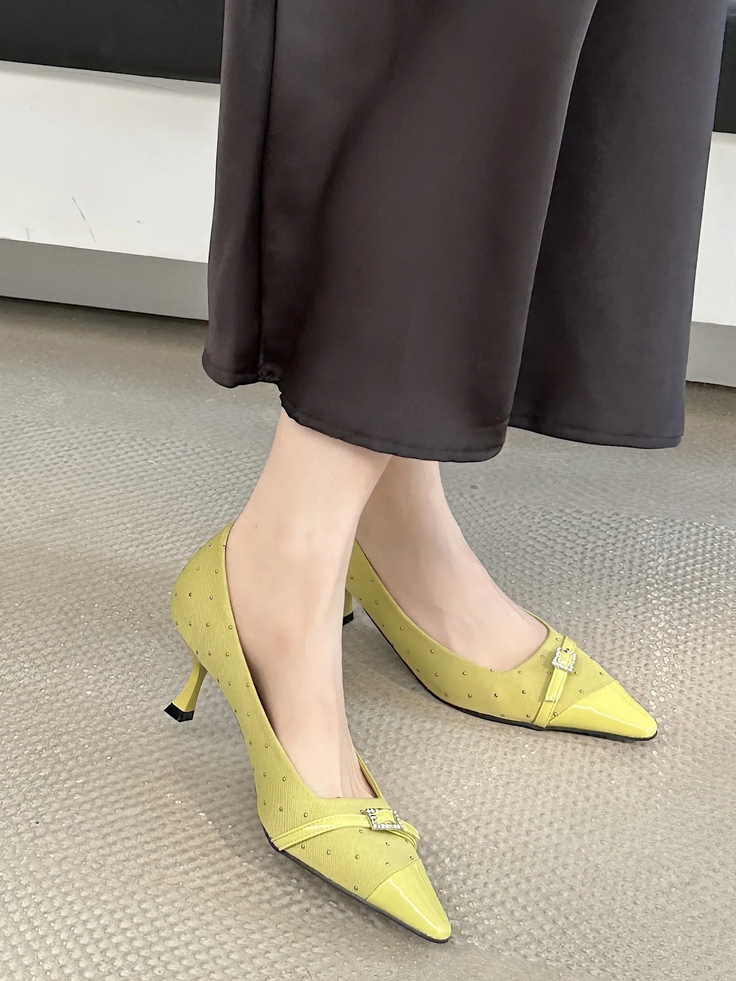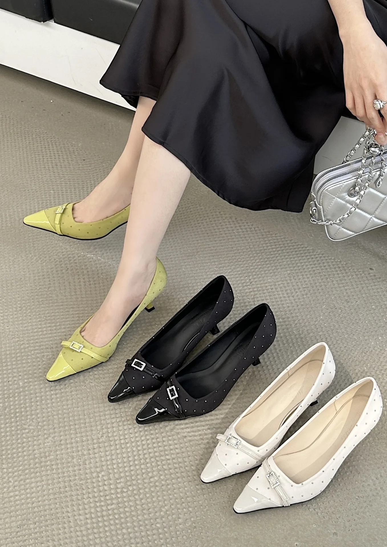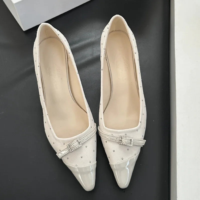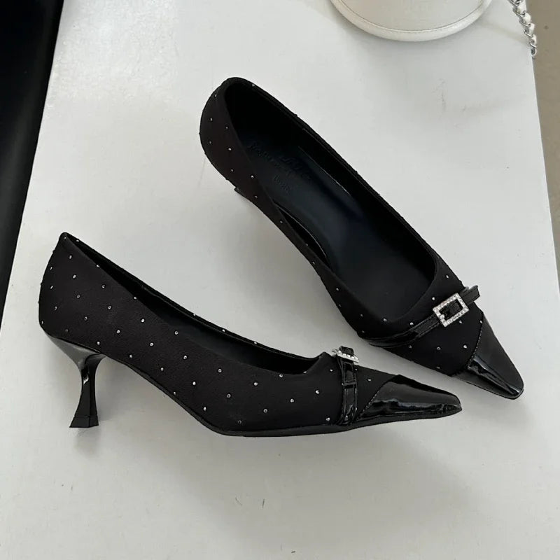 Kylethomasw Pointed Toe Low Heel Women Shoes Belt Buckle Elegant Office Thin High Heels Female Shallow Pumps Women Zapatos De Mujer