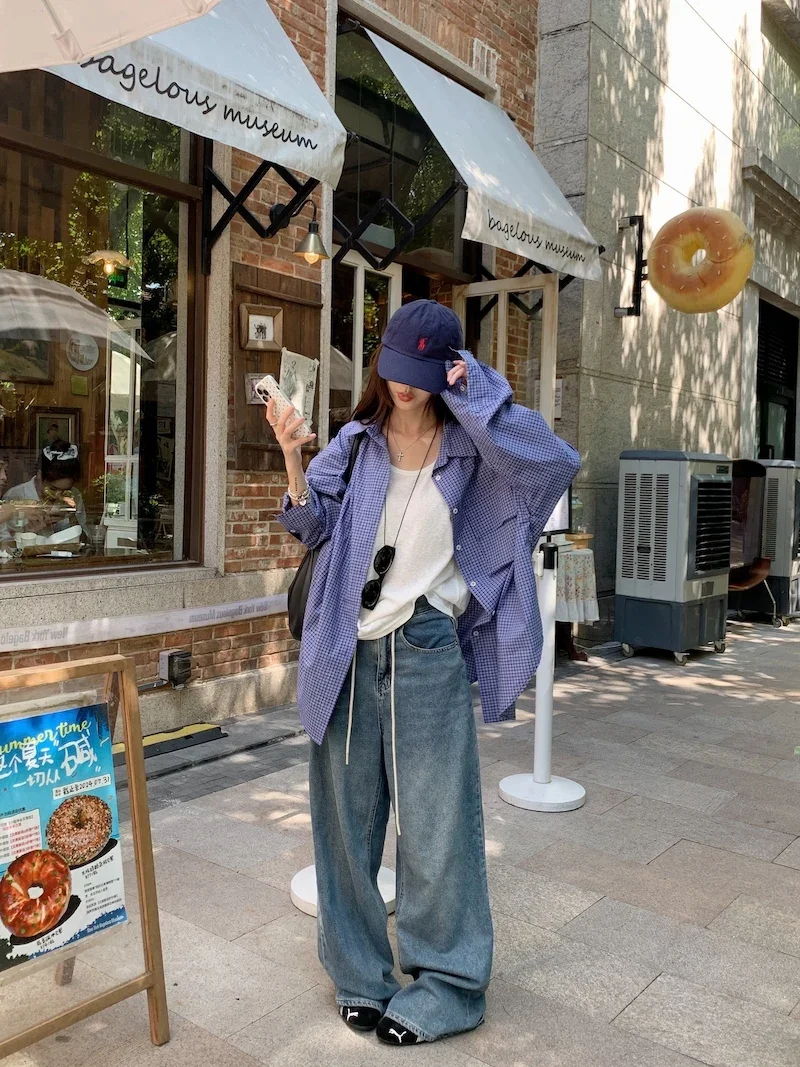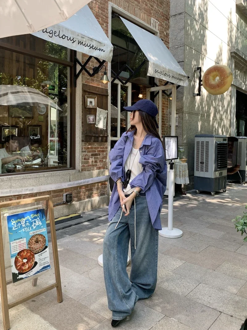 Kylethomasw Fake Two-piece Multi-button Solid Color Wide Leg Pants Women Autumn New High Waist Skirt Stitching Loose Casual Pants