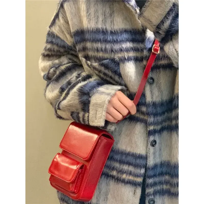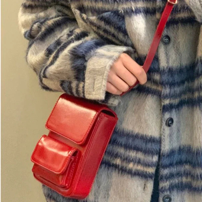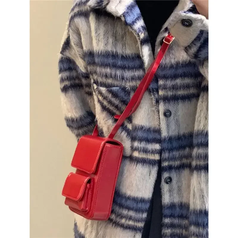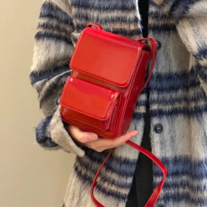 PU Leather Mini Simple Vintage Cellphone Bag Korean Ins Casual Solid Y2k Shoulder Bags Trendy Fashion Crossbody Handbags Women