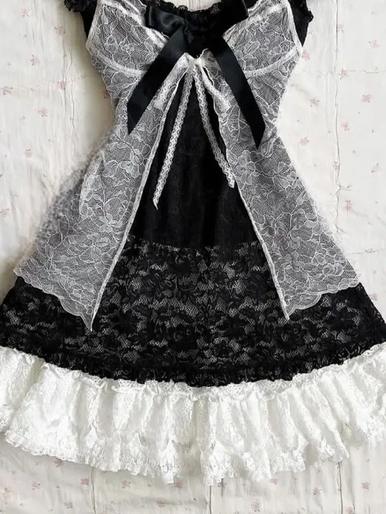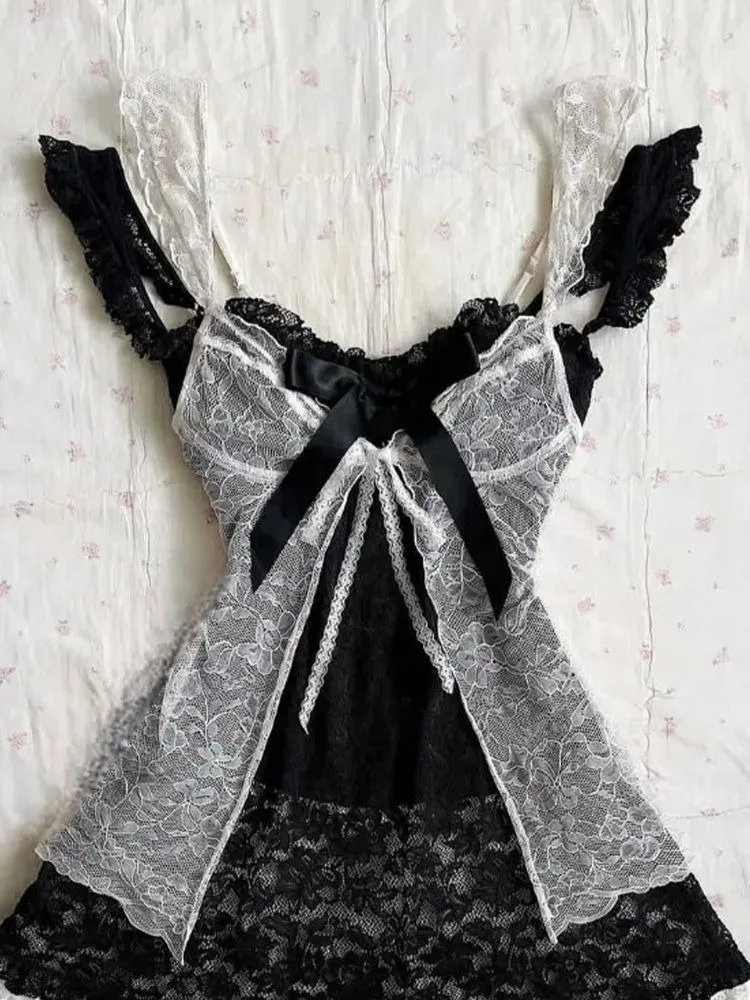 KYLETHOMASW - Retro Lace Patchwork Camisole Dress for Women+ Removable All-match White Vest Dresses 2025 Summer New Two Piece Sets