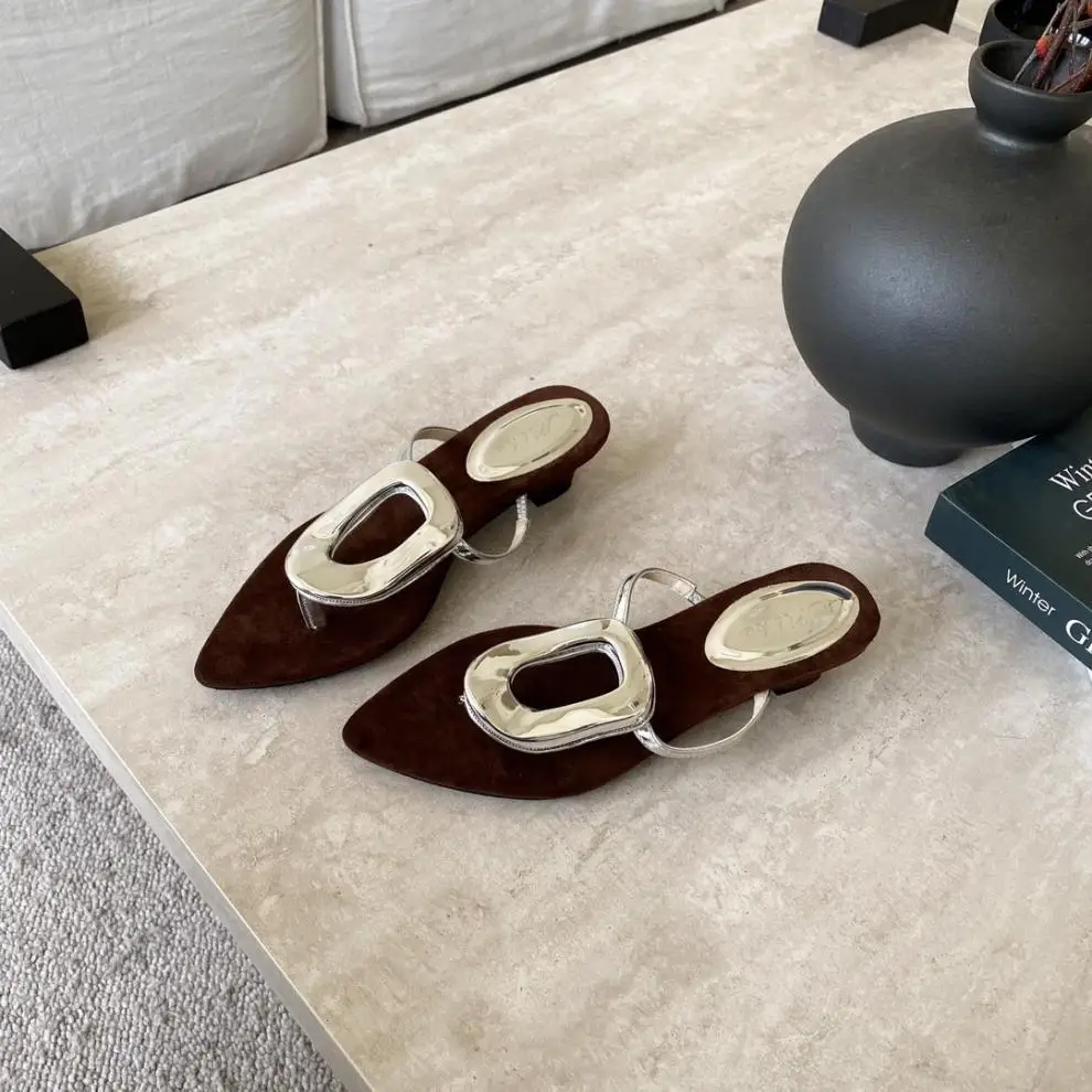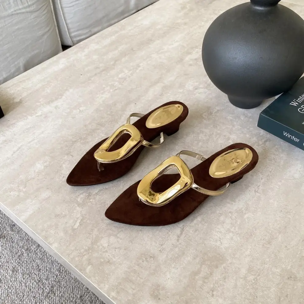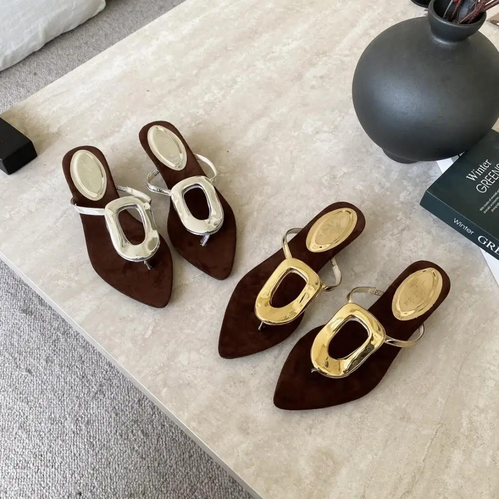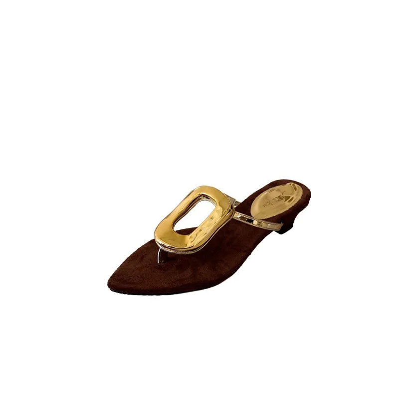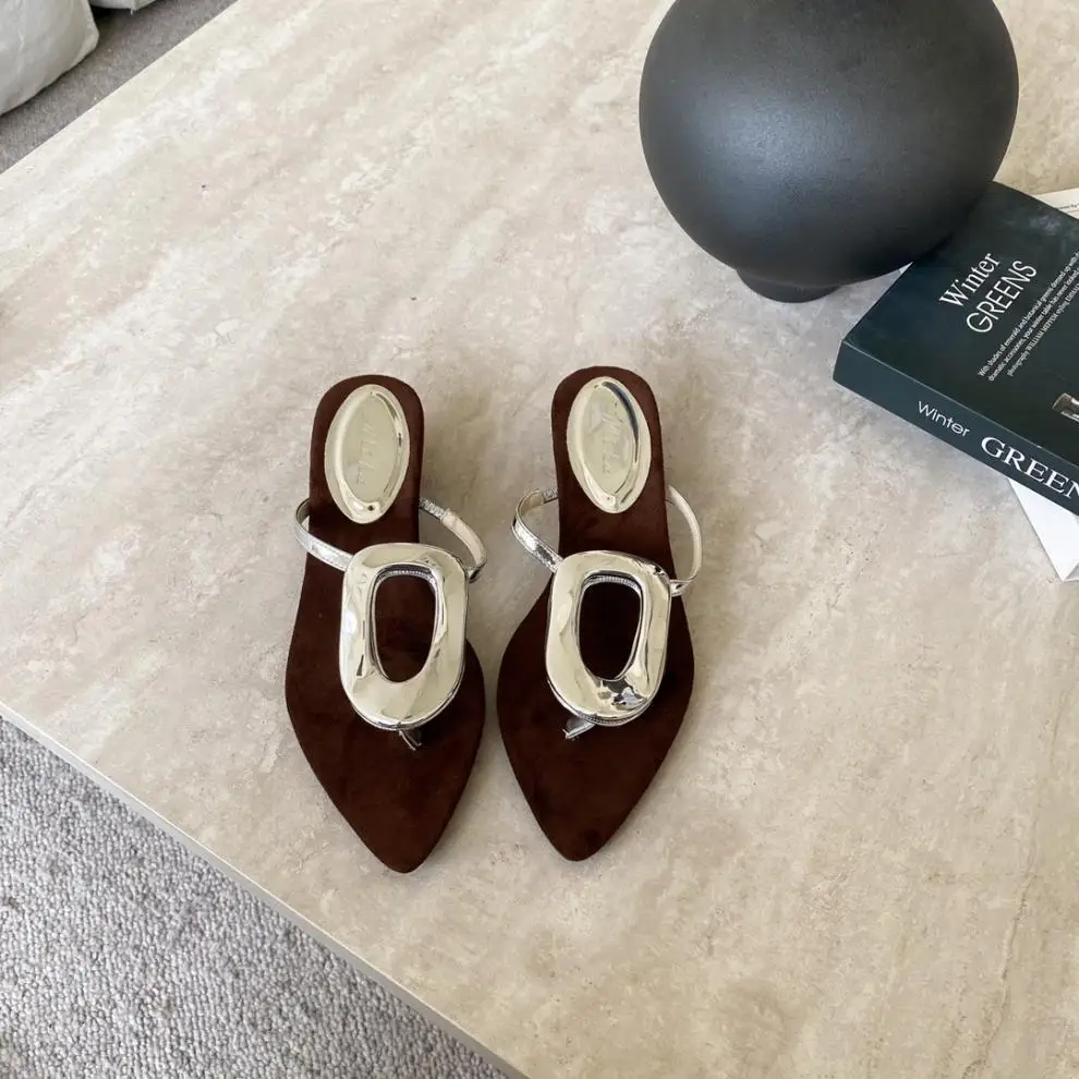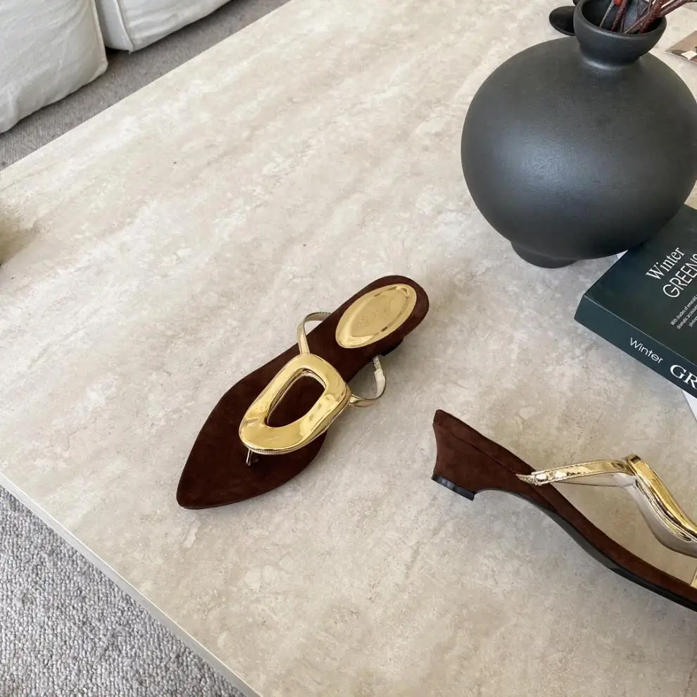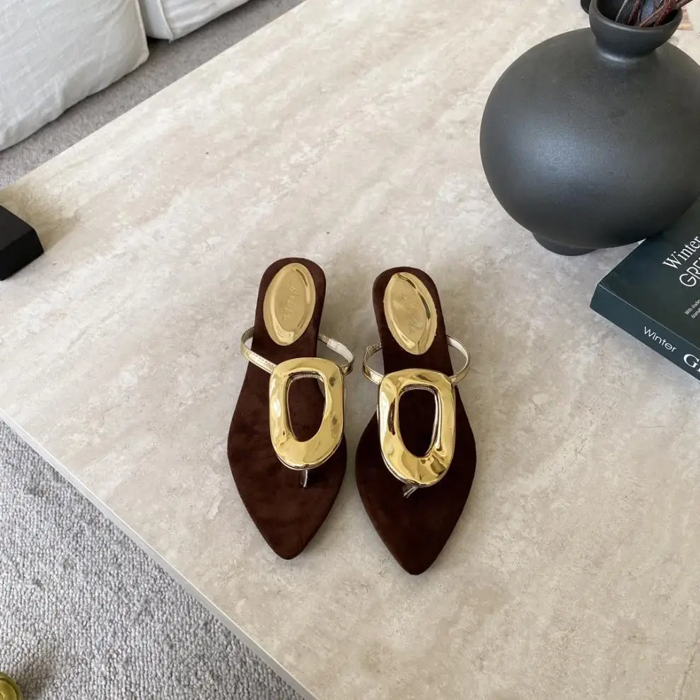 KYLETHOMASW - Shoes Rubber Flip Flops Ladies' Slippers On A Wedge Pointed Toe Flock Rivet Women Heels Low Hawaiian High PU Rome Slides Fabric