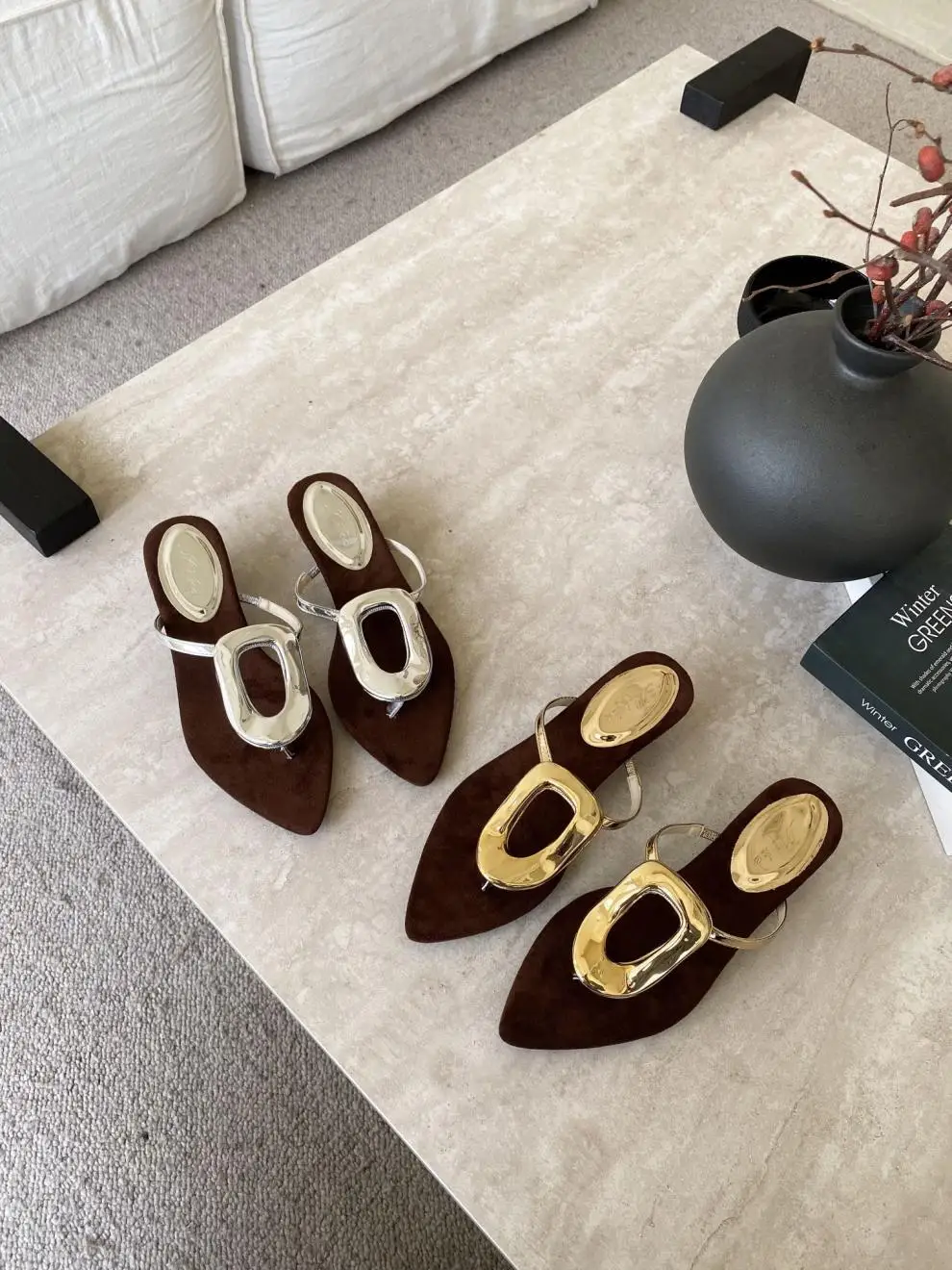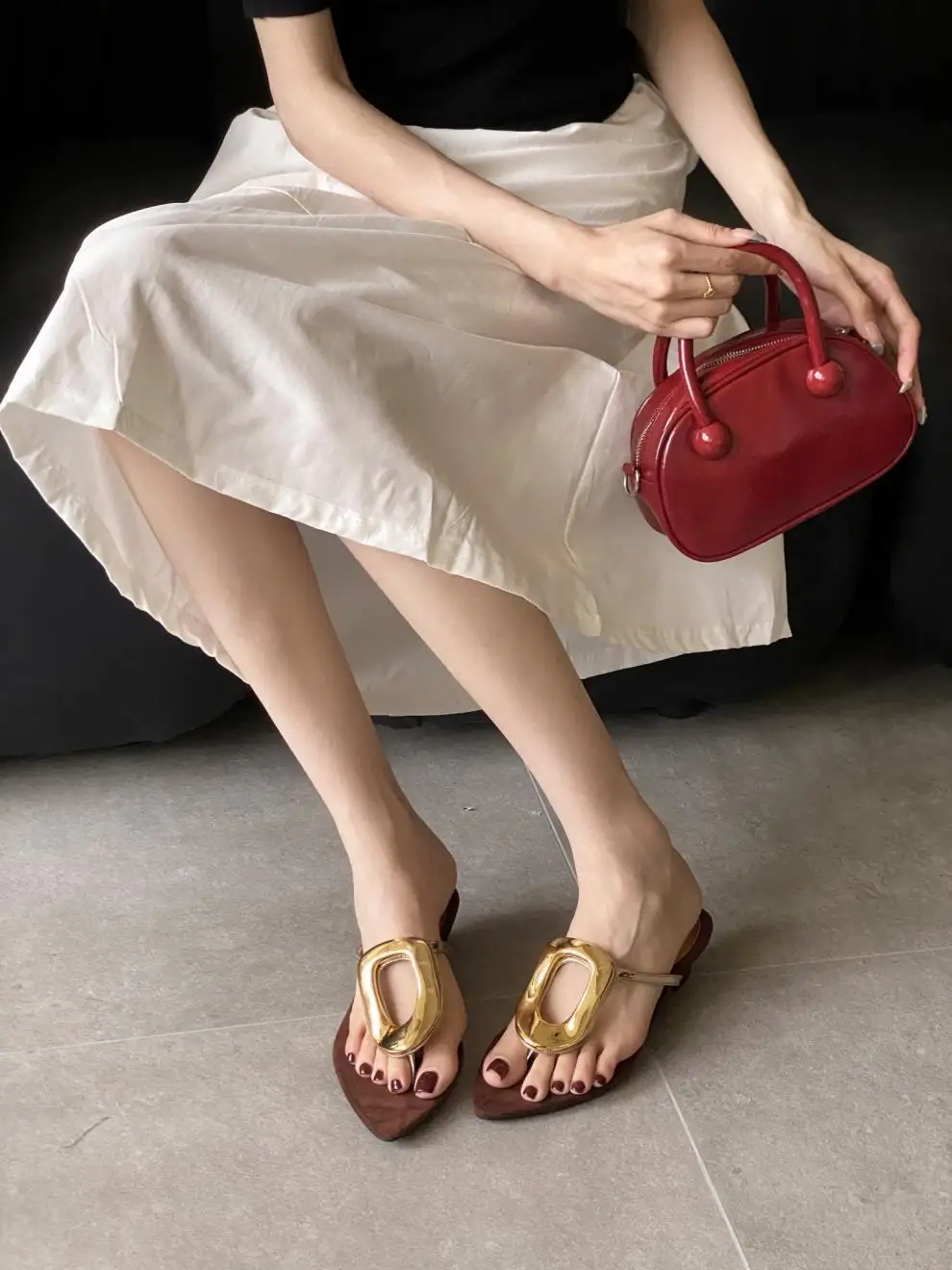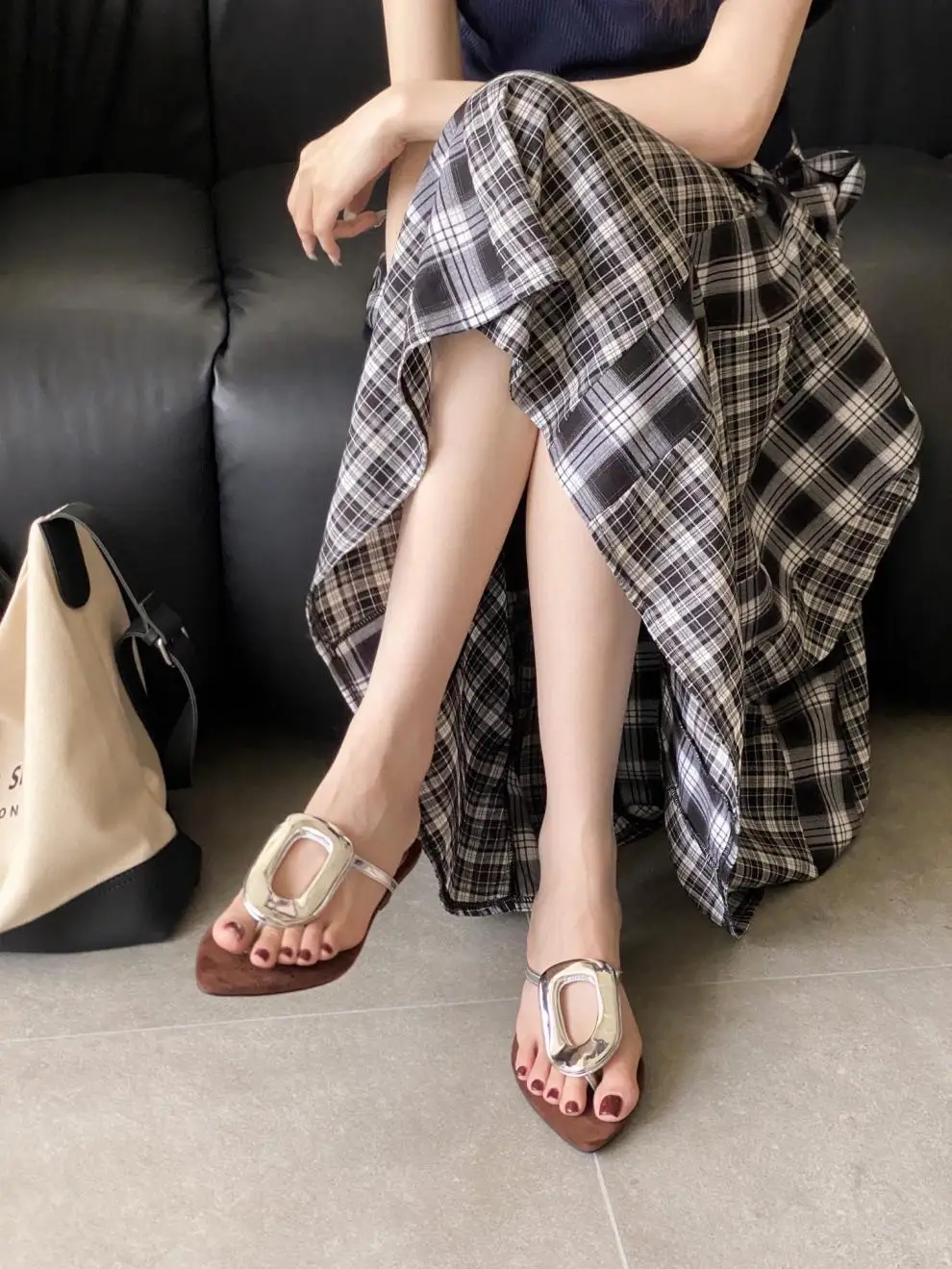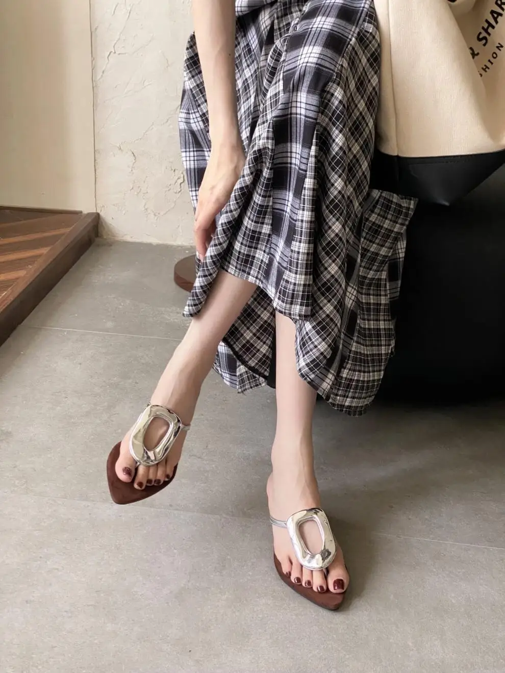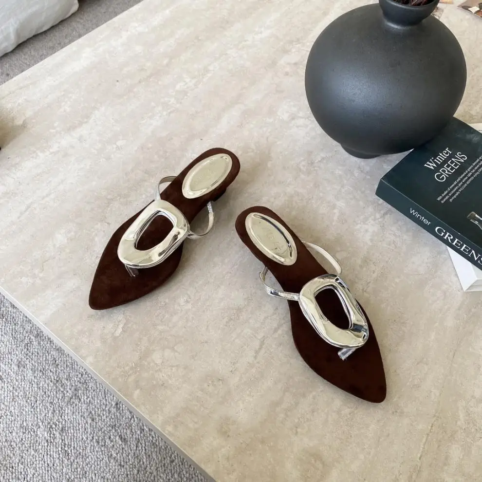 KYLETHOMASW - Shoes Rubber Flip Flops Ladies' Slippers On A Wedge Pointed Toe Flock Rivet Women Heels Low Hawaiian High PU Rome Slides Fabric