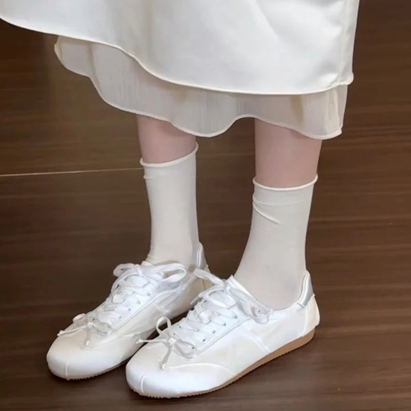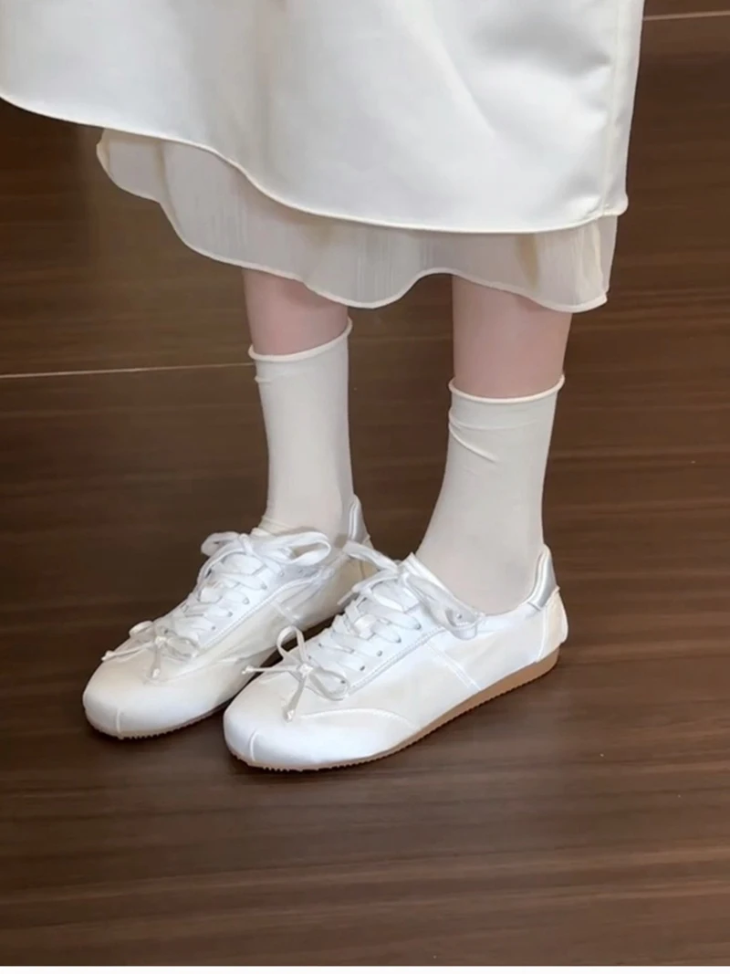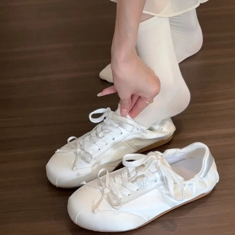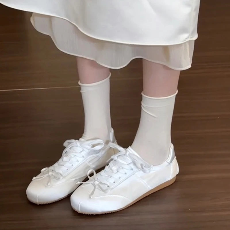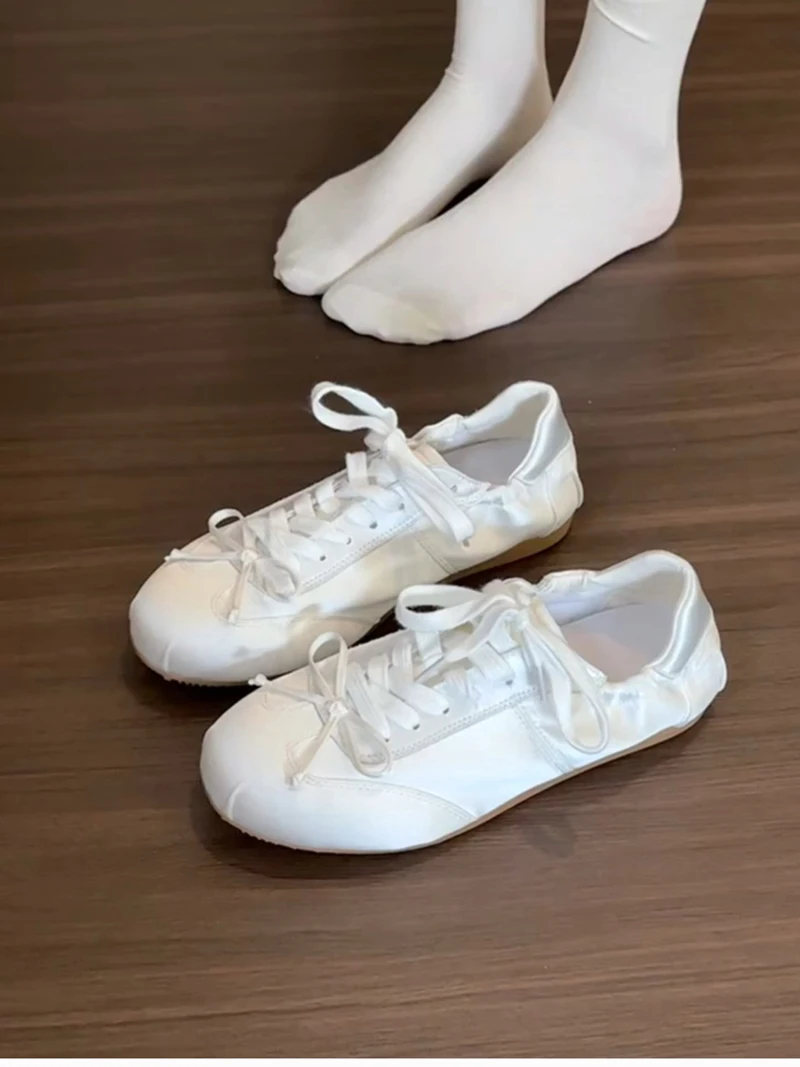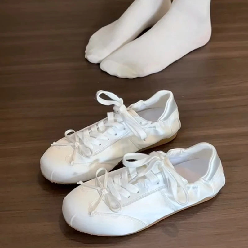 KYLETHOMASW - Silvery Women Vulcanize Casual Round Toe Sneakers Vintage Female Designer Flats Ballet Footwear