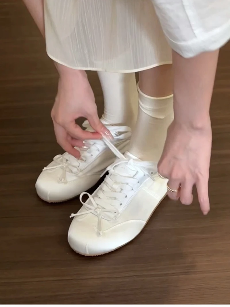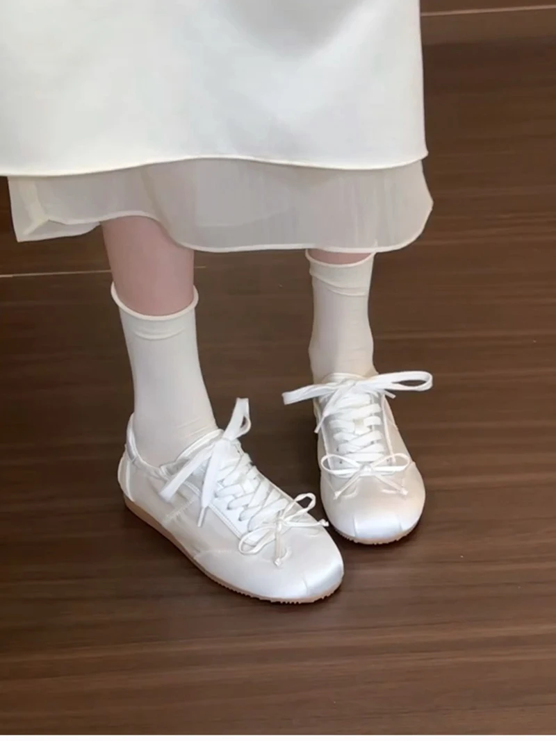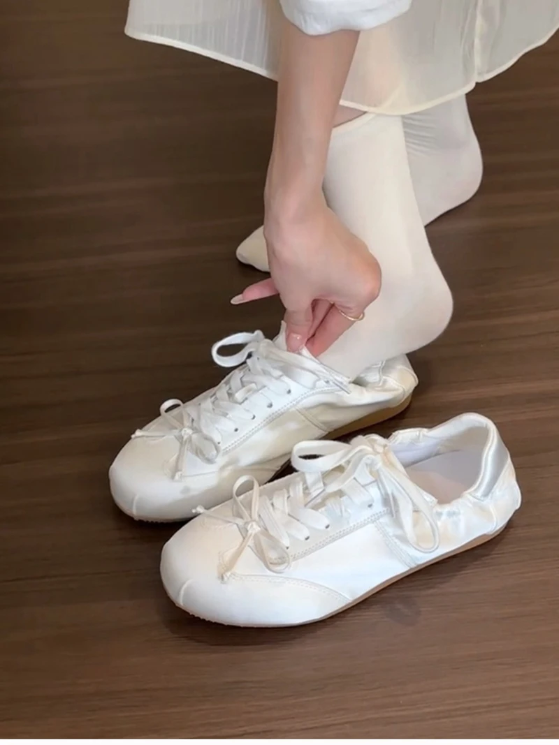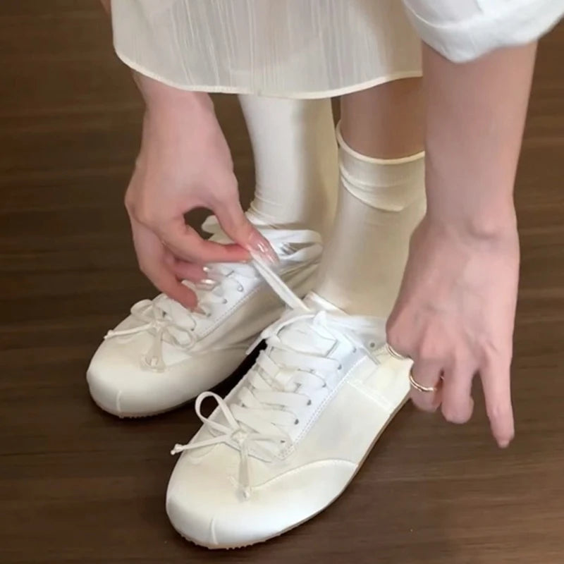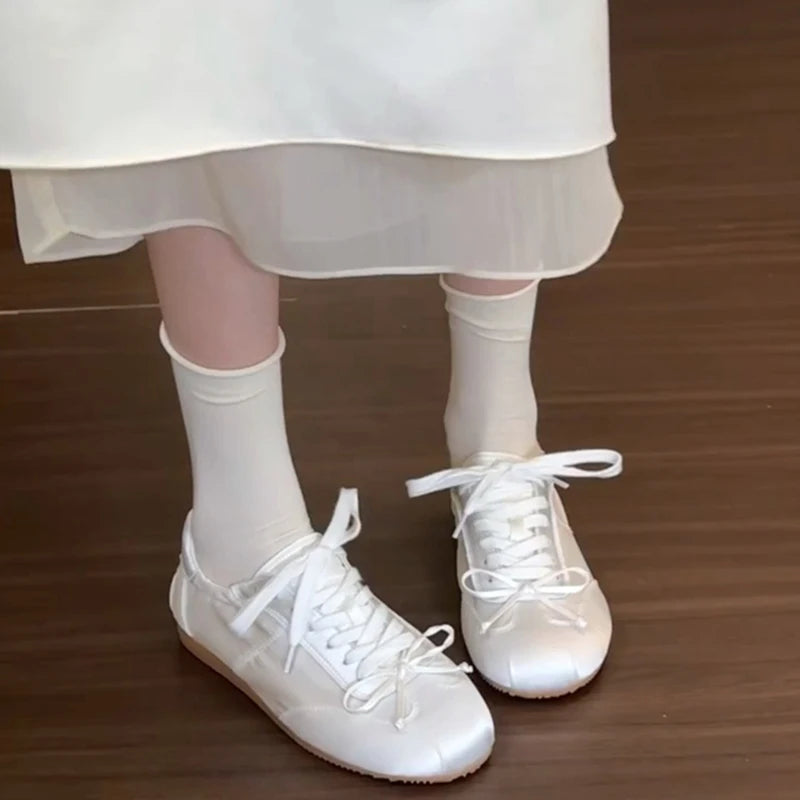 KYLETHOMASW - Silvery Women Vulcanize Casual Round Toe Sneakers Vintage Female Designer Flats Ballet Footwear