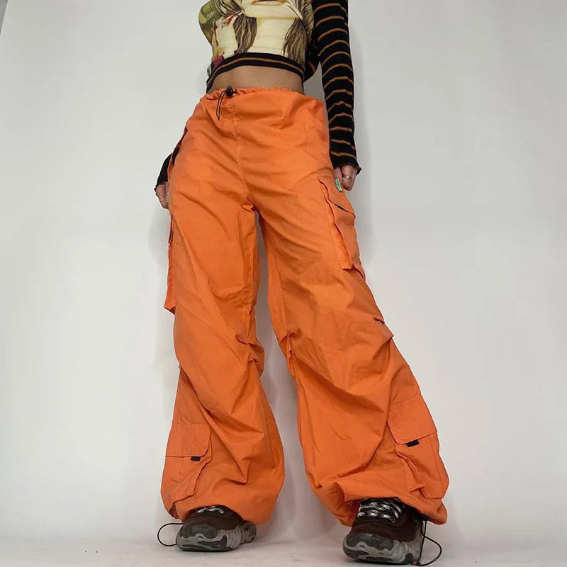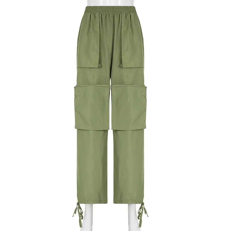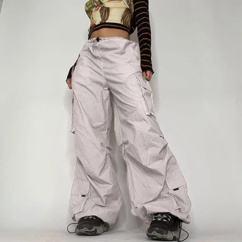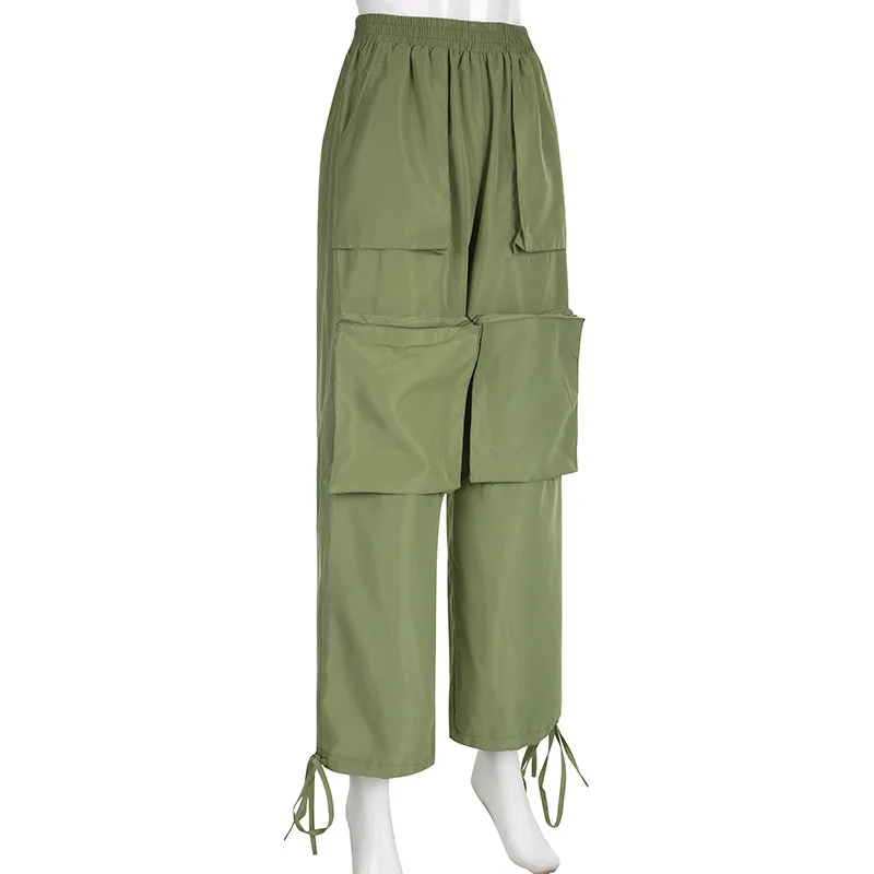 Street Big Pocket Cargo Pants Women Loose Drawstring Trouser 2023 New Arrival Female Solid Sweatpant Autumn Fashion Y2k Pants