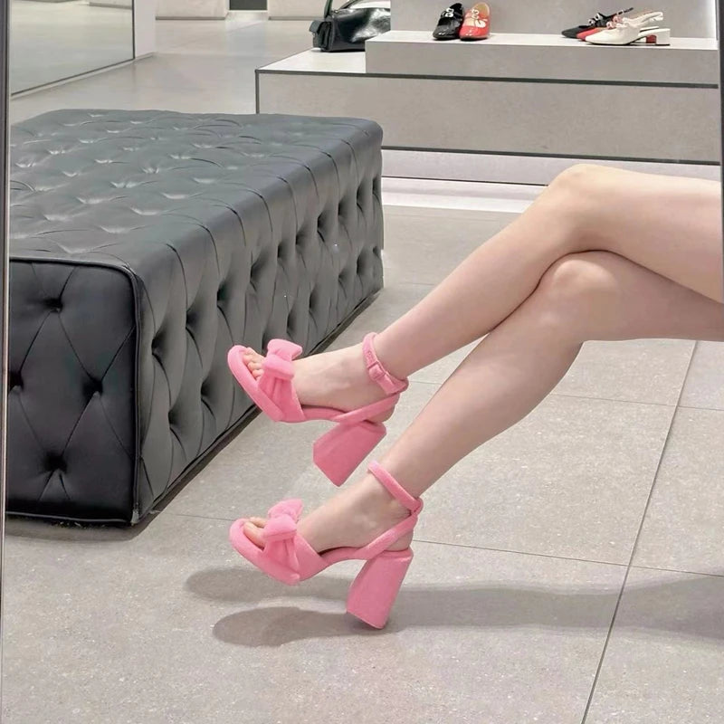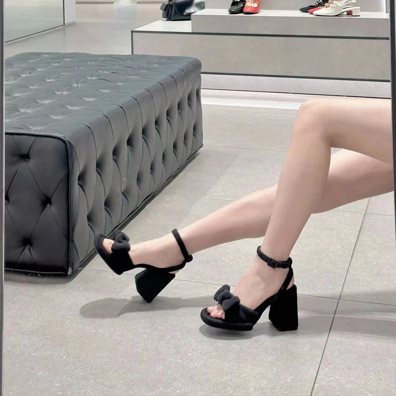 KYLETHOMASW - Street Style Summers Open Toe Women Sandals Fashion Butterfly-knot Ladies Thick Heel Party Dress Sandalias
