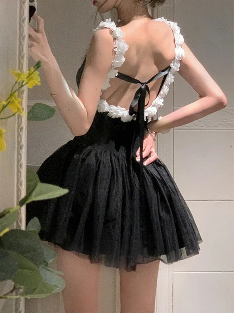 KYLETHOMASW - Summer Bandage Sweet Dress Women Backless Kawaii Y2K Mini Dress Female Causal Korean Fashion Sexy Strap Party Cute Dress