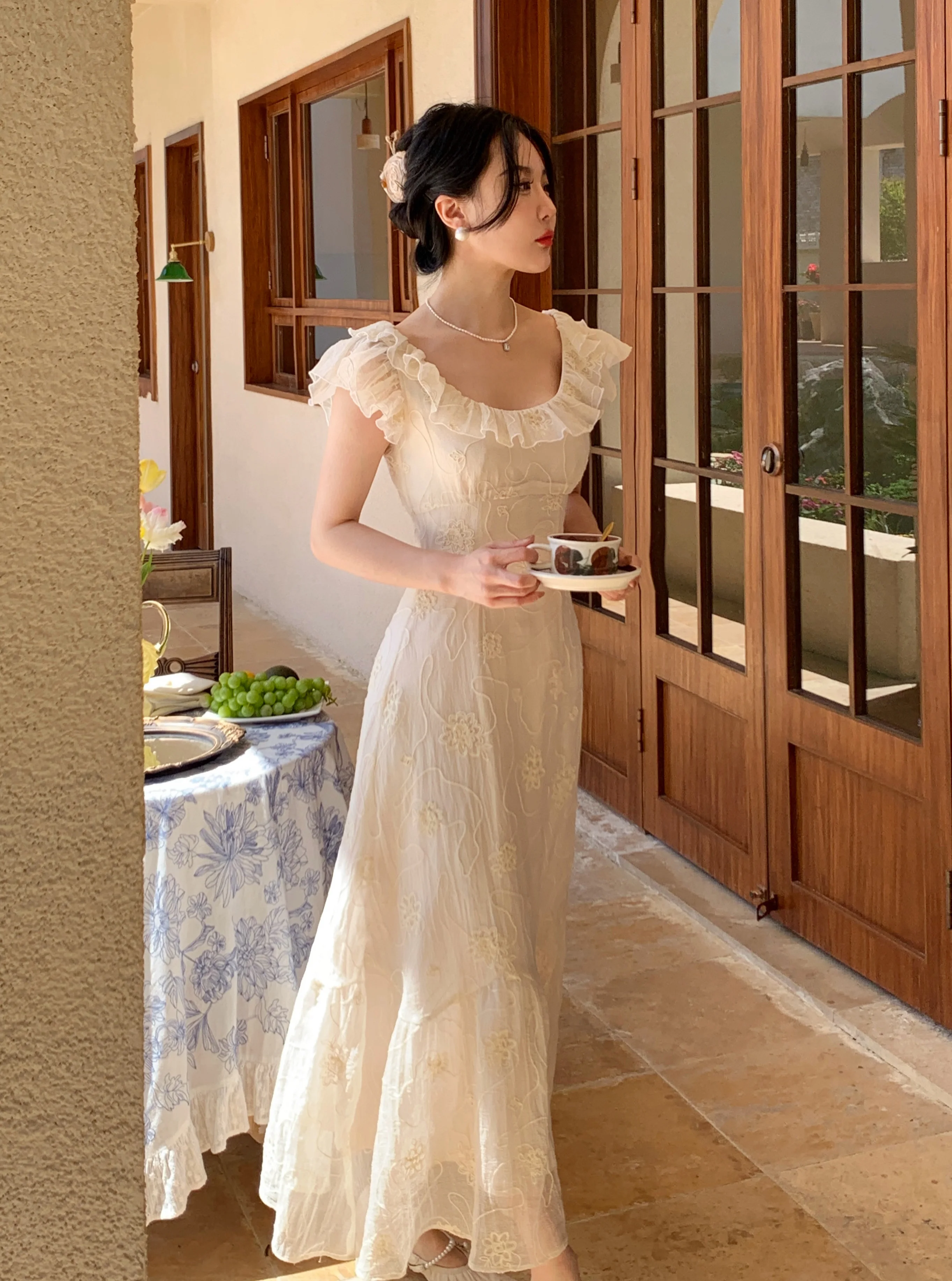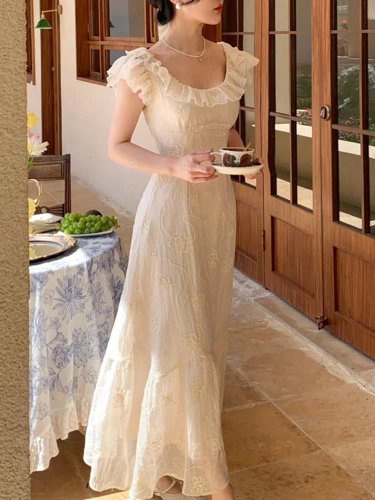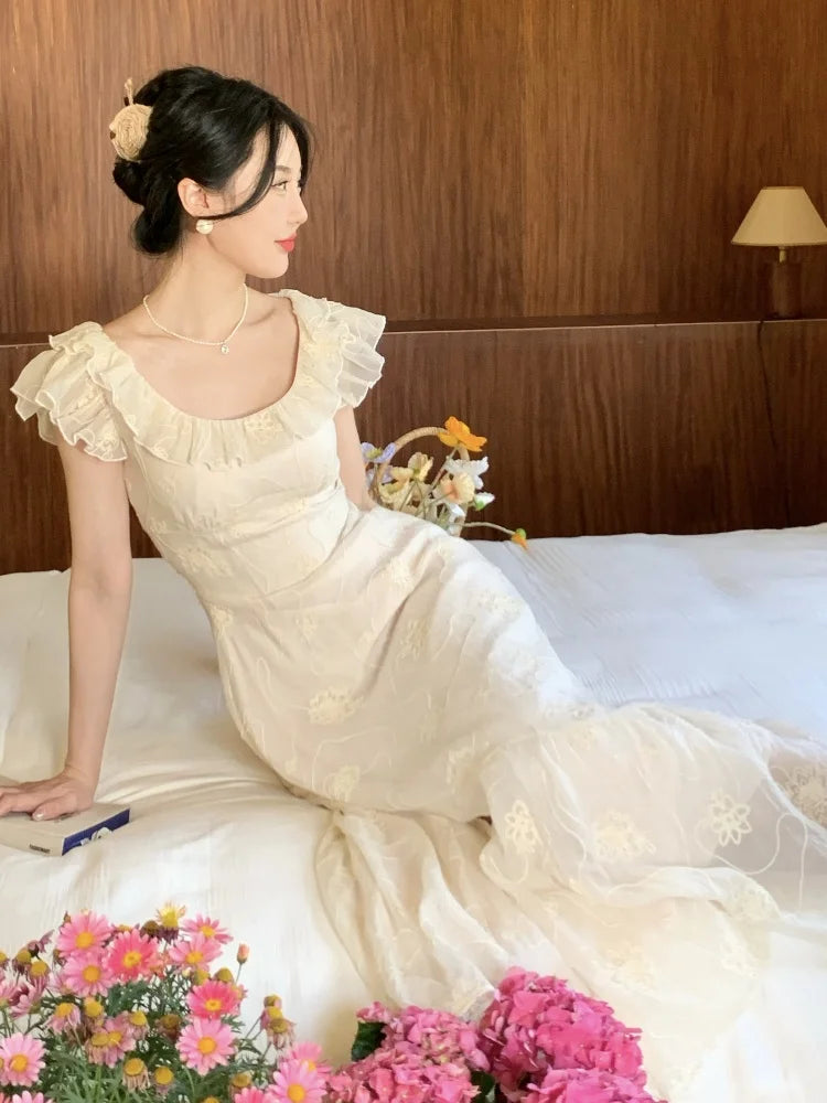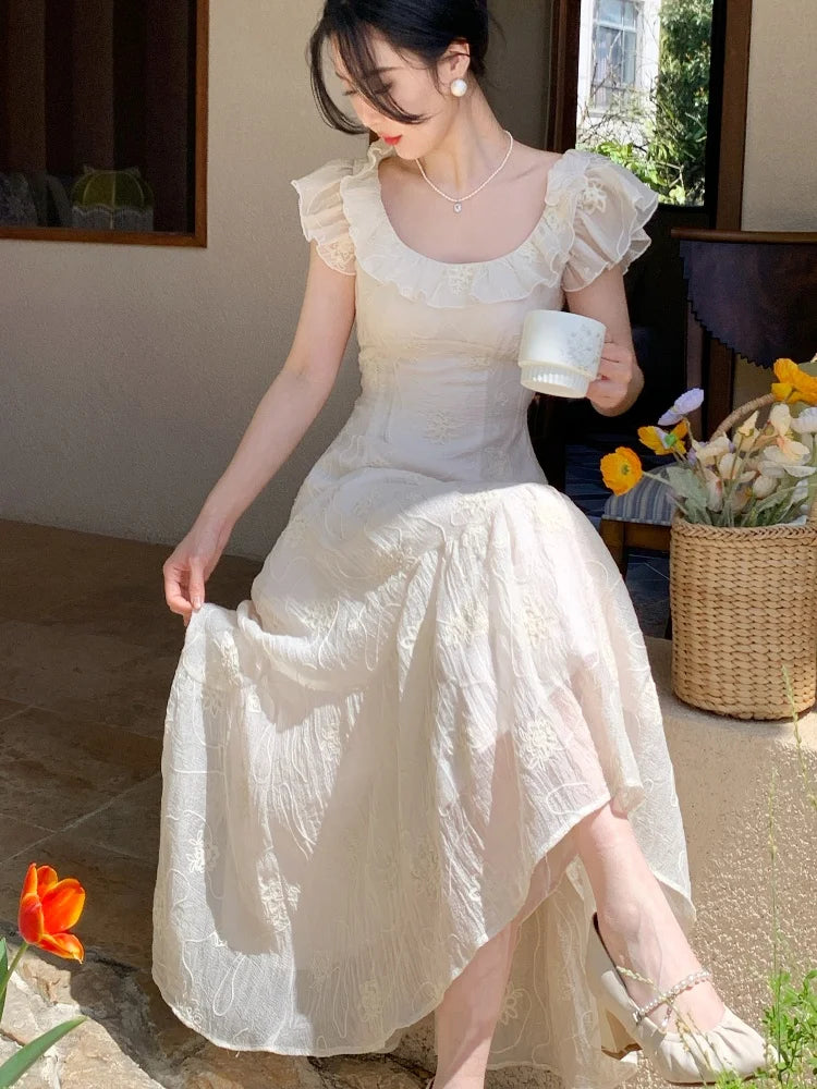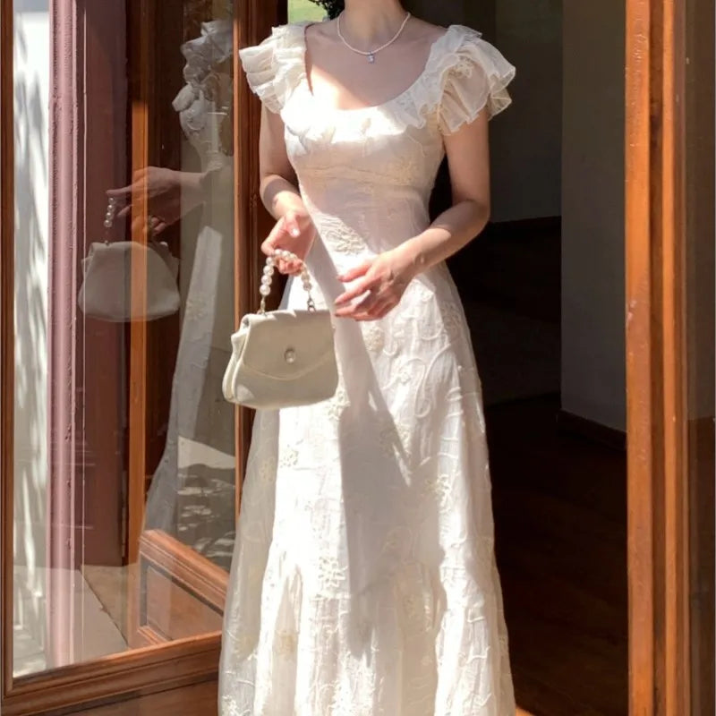 KYLETHOMASW - Summer French Elegant Midi Dress Women Ruffles Slim Floral Party Dress Holiday Beach Casual Korean Fashion Chic Vestidos