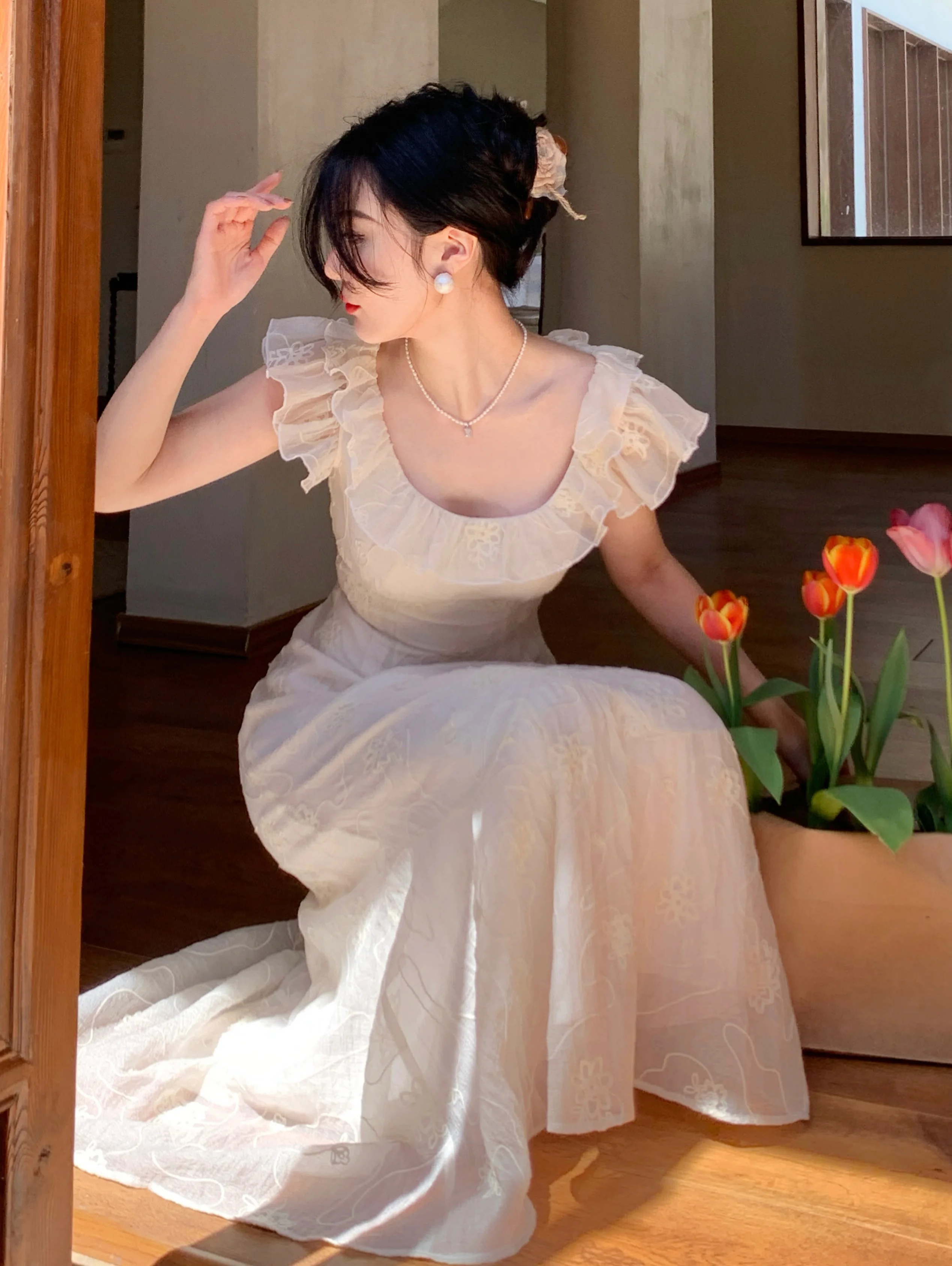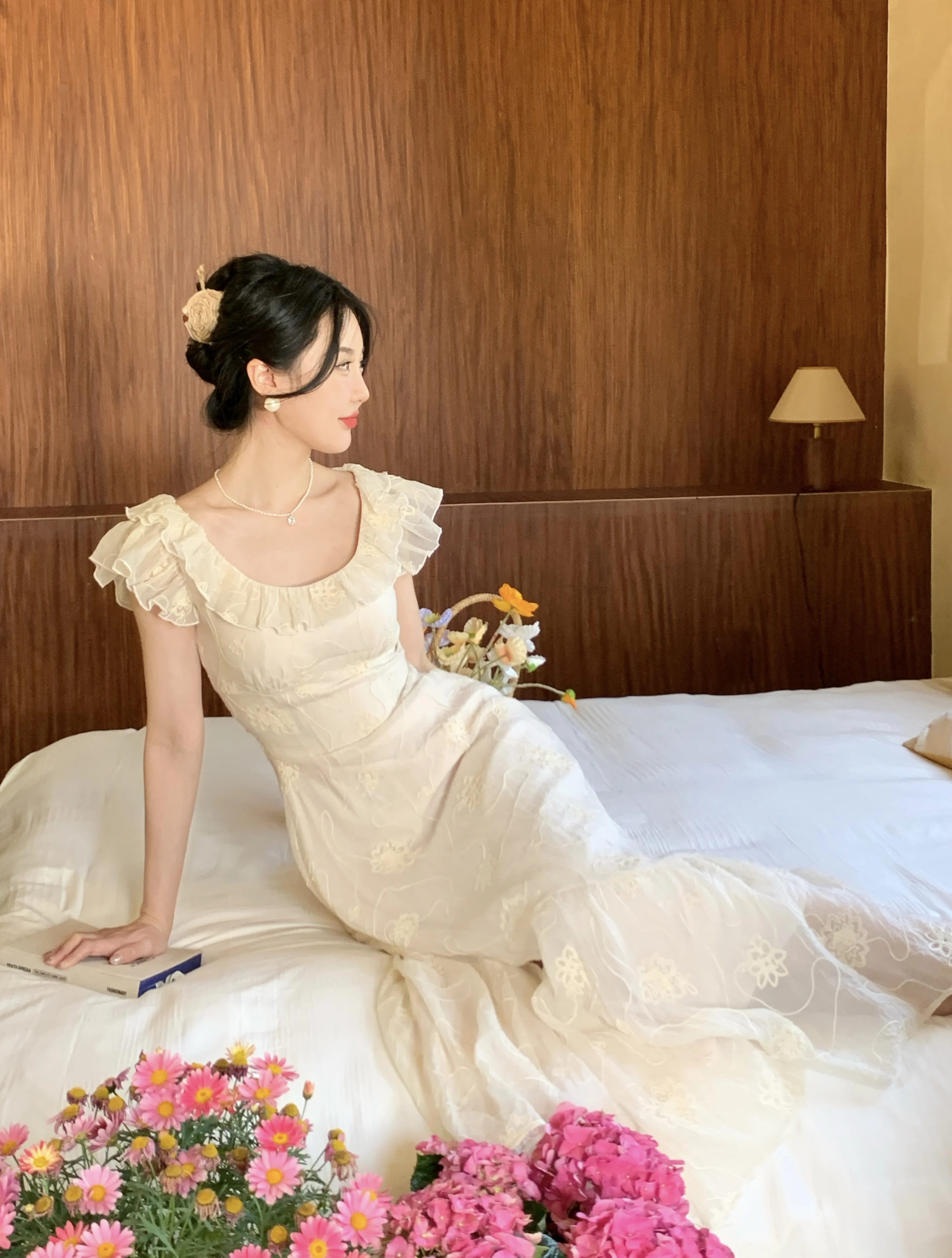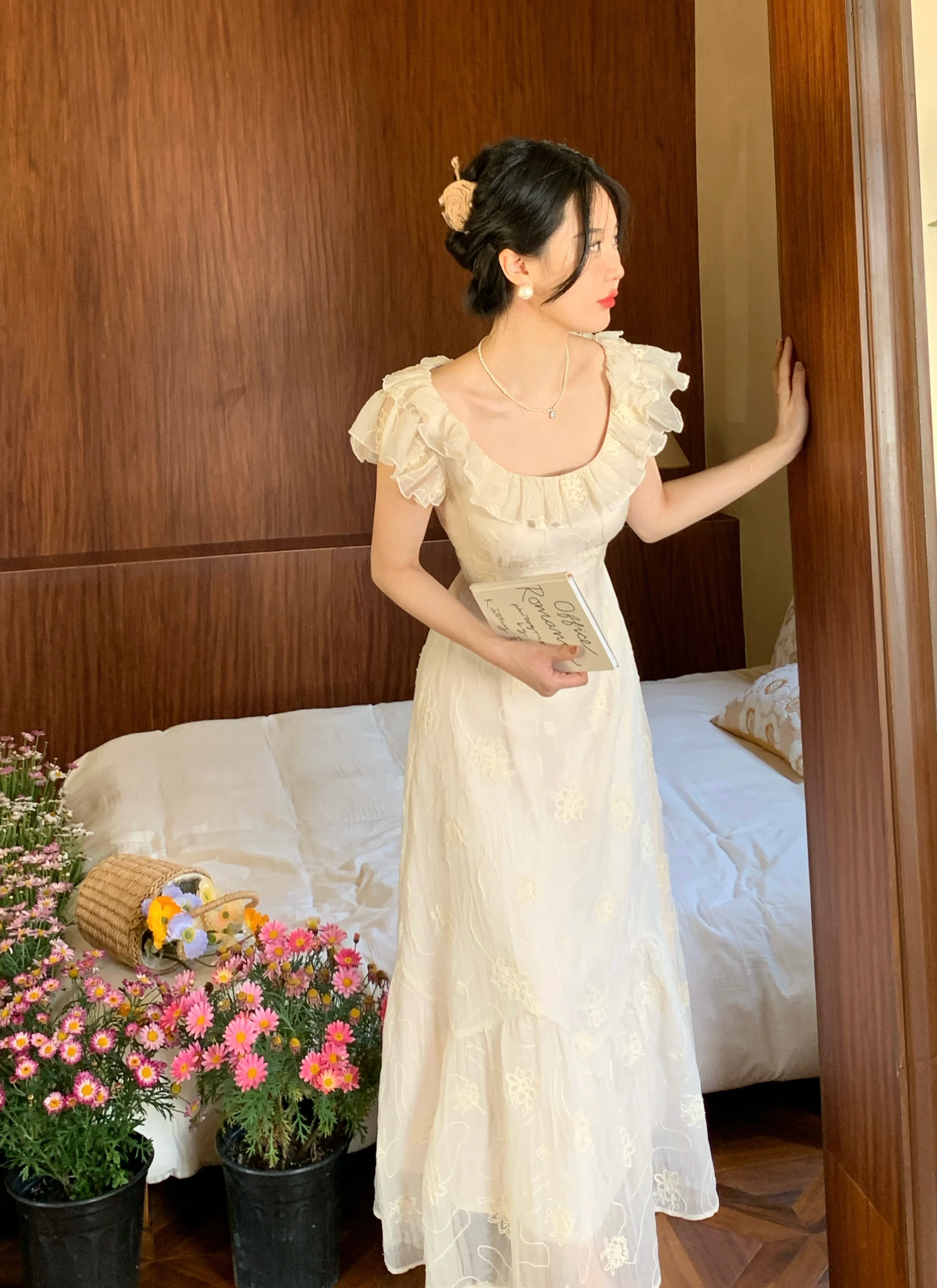 KYLETHOMASW - Summer French Elegant Midi Dress Women Ruffles Slim Floral Party Dress Holiday Beach Casual Korean Fashion Chic Vestidos
