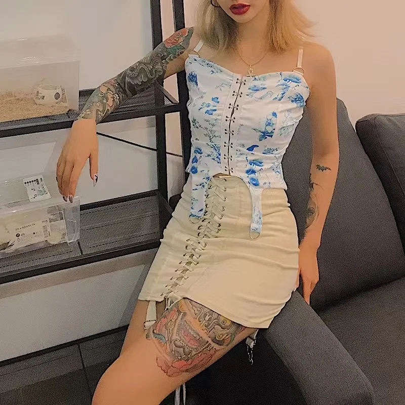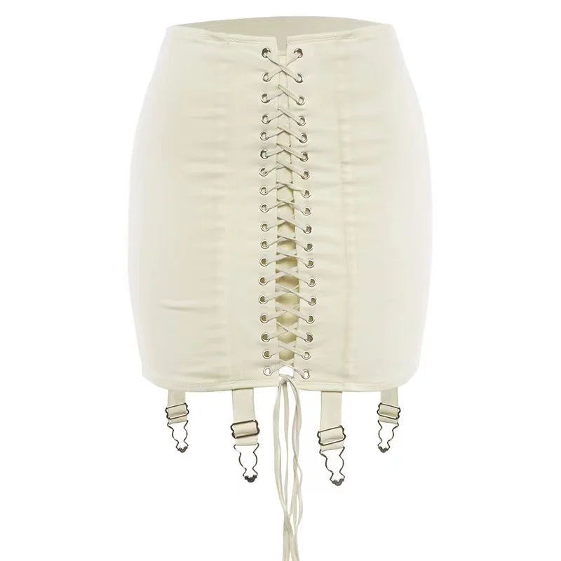 Summer Gothic Y2K Vintage Mini Skirt Women Punk Patchwork High Waist Bodycon Short Skirts Casual Sexy Party White Skirts