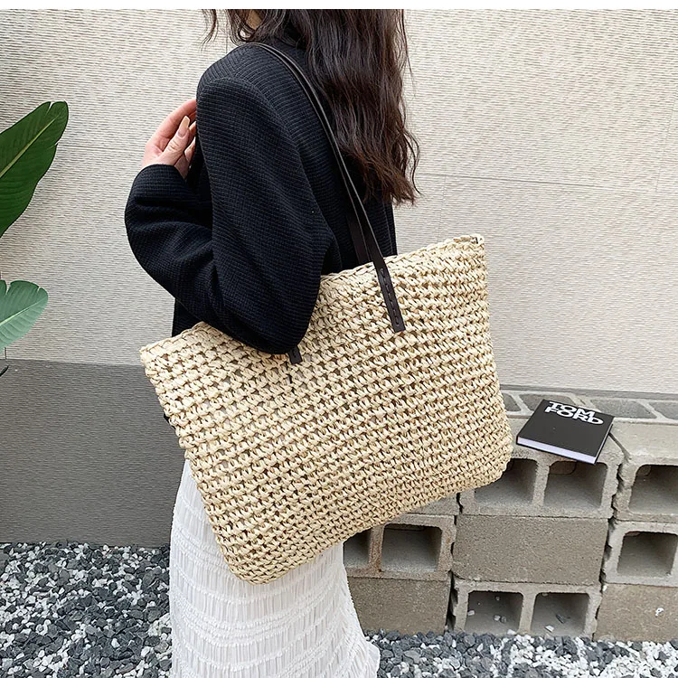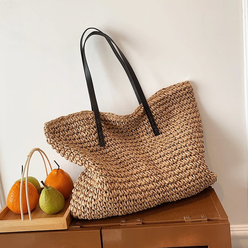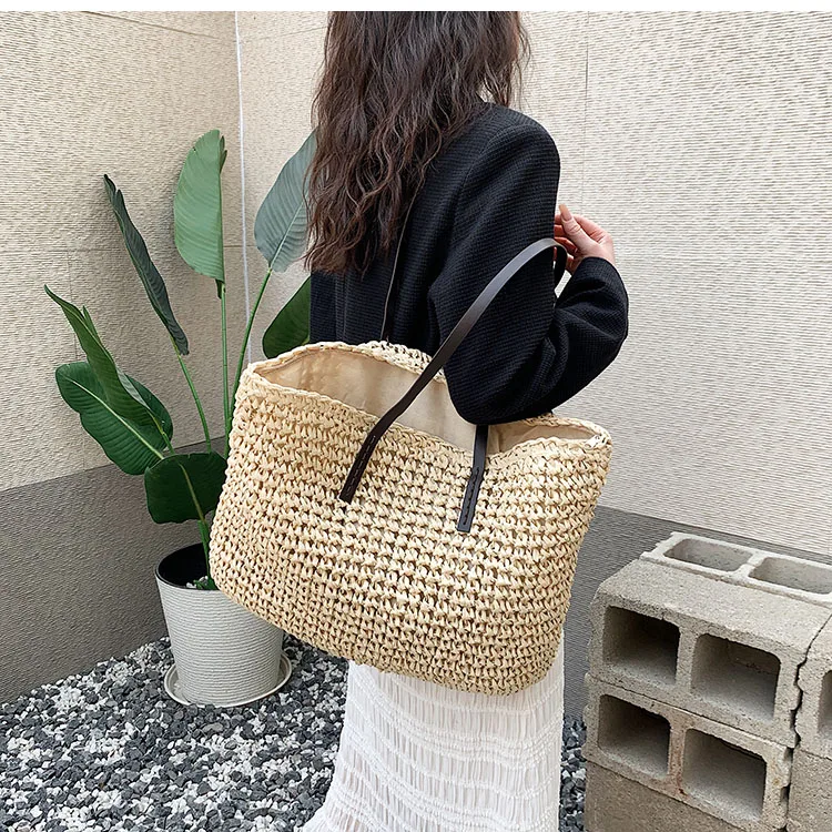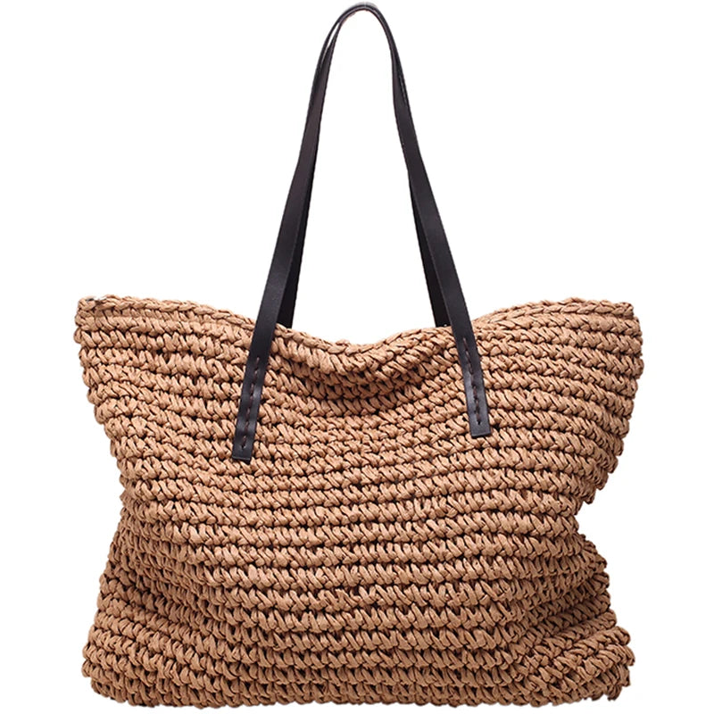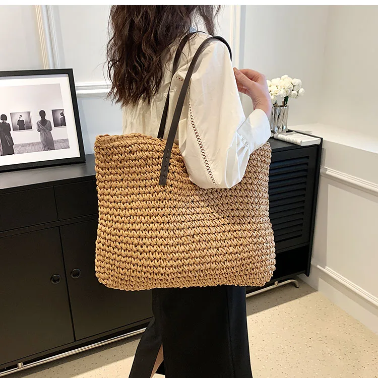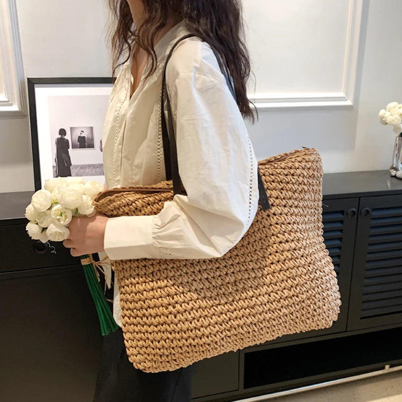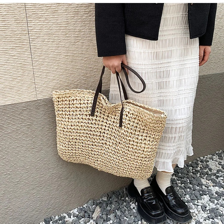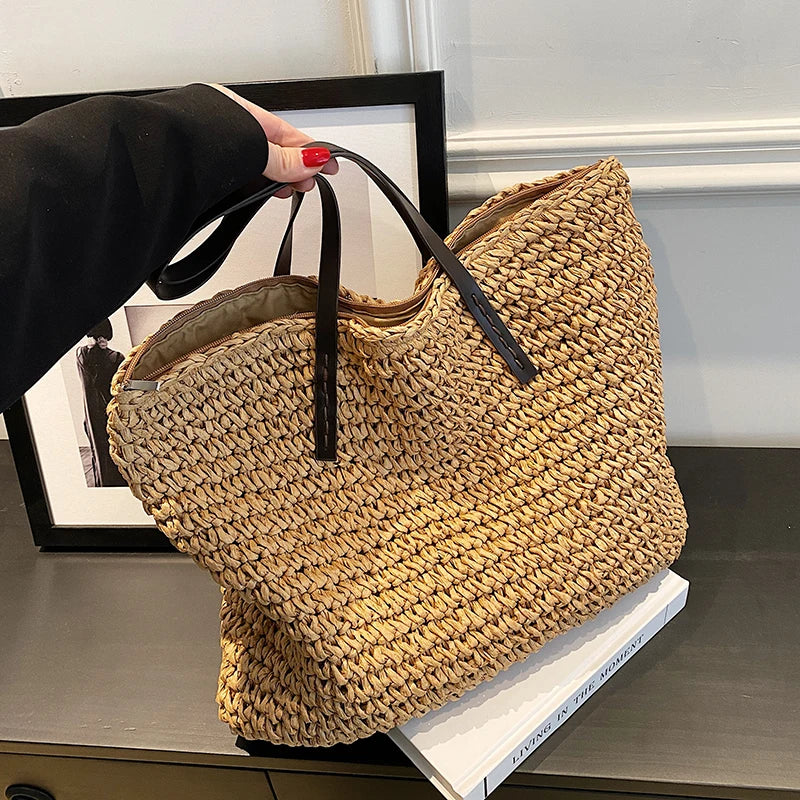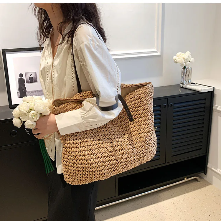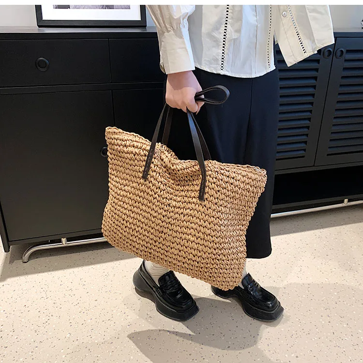 Kylethomasw - Summer Straw Bag Women Large Capacity Handle Bag Handmade Woven Handbag Bohemia Vacation Rattan Beach Bag Shopping bag tote bag