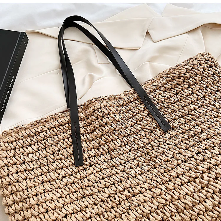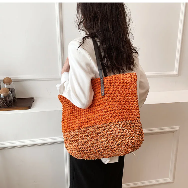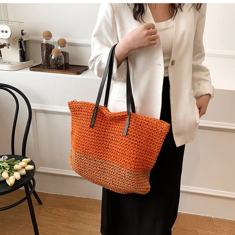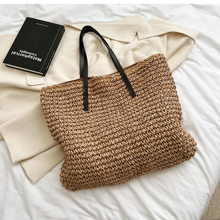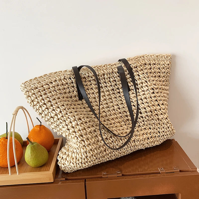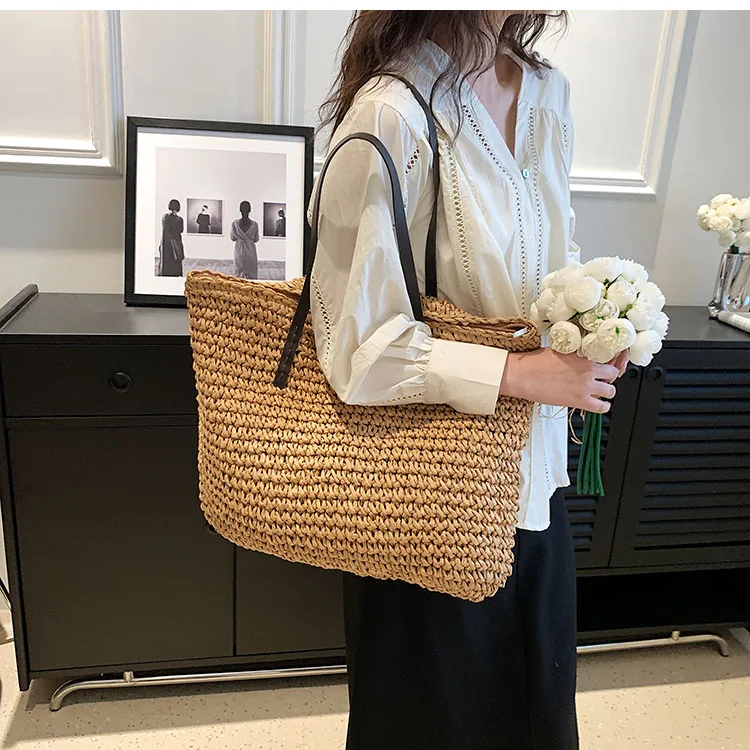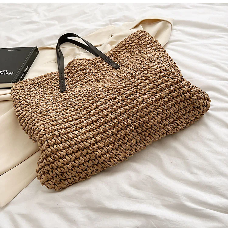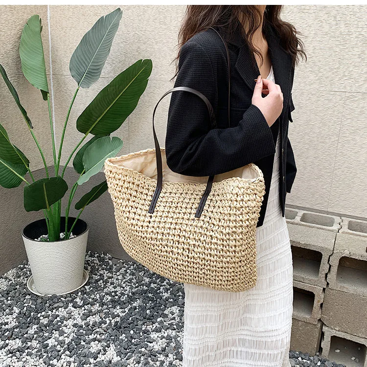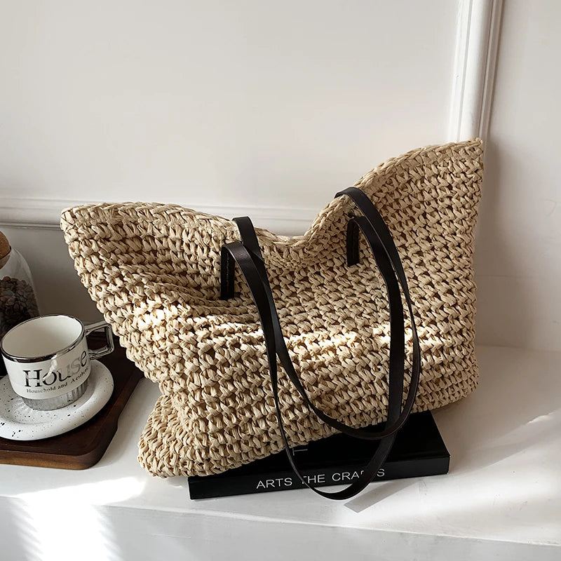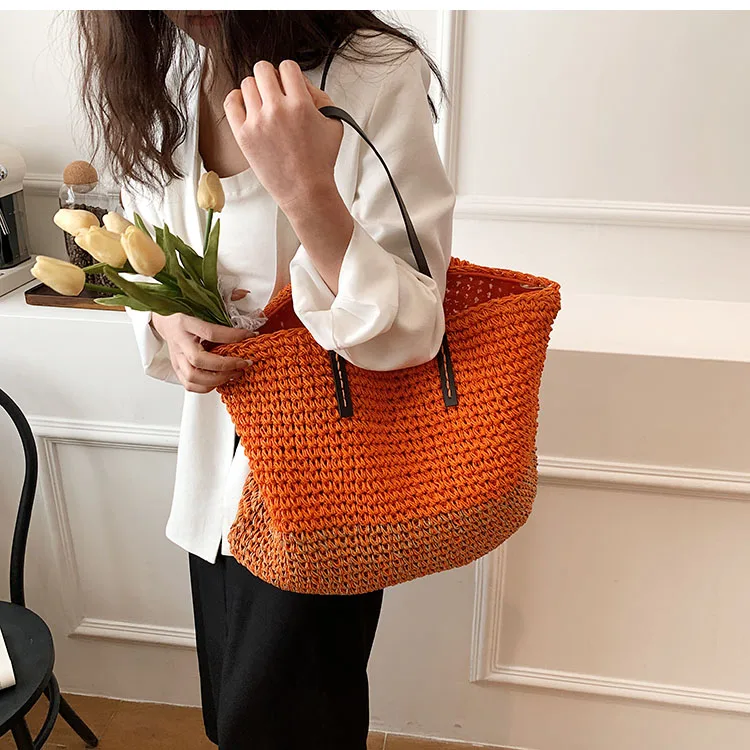 Kylethomasw - Summer Straw Bag Women Large Capacity Handle Bag Handmade Woven Handbag Bohemia Vacation Rattan Beach Bag Shopping bag tote bag