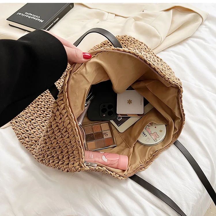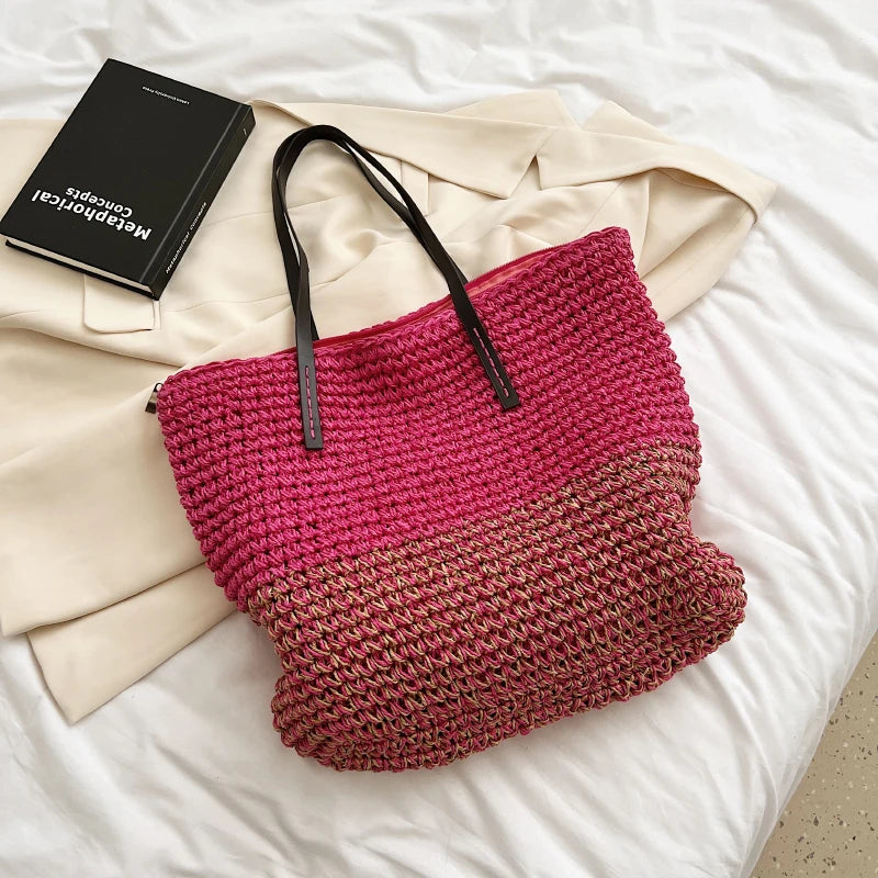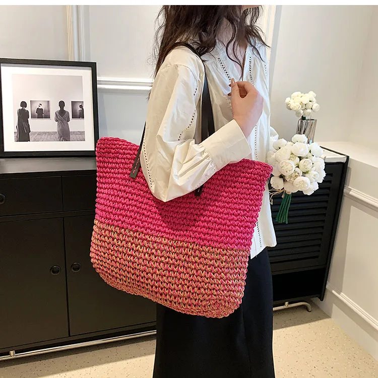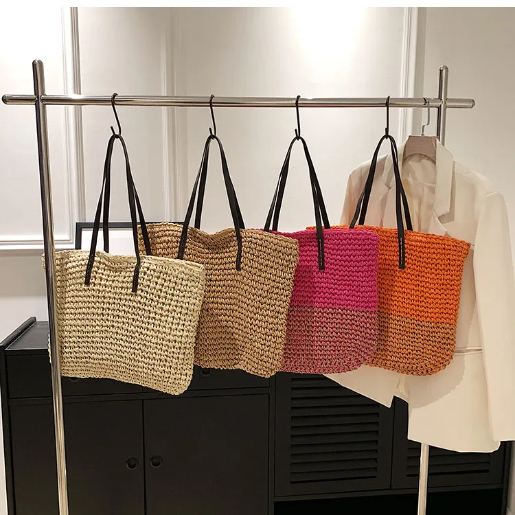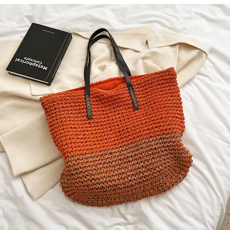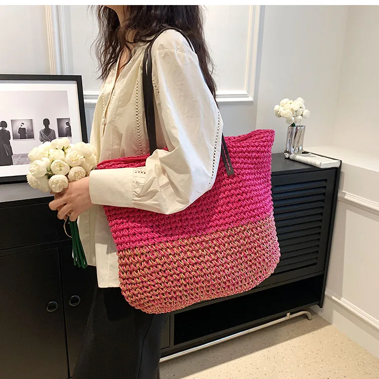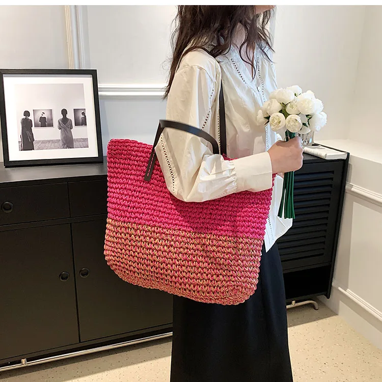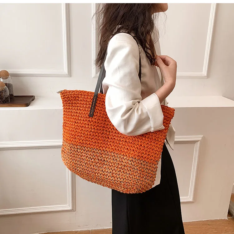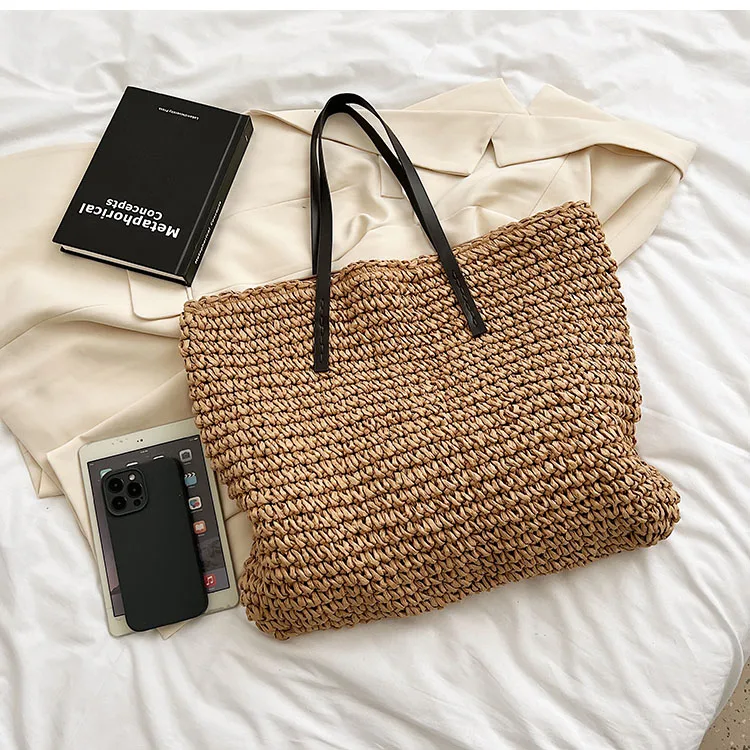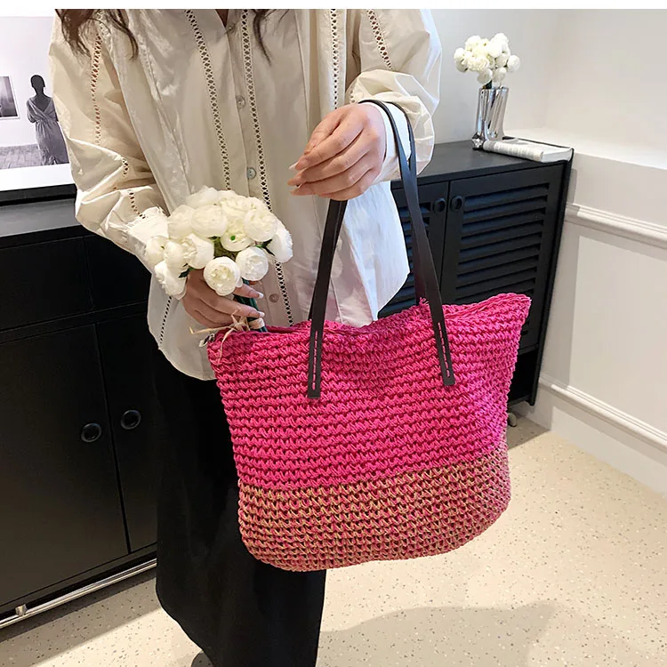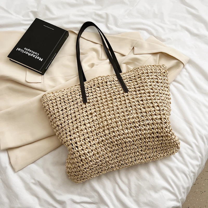 Kylethomasw - Summer Straw Bag Women Large Capacity Handle Bag Handmade Woven Handbag Bohemia Vacation Rattan Beach Bag Shopping bag tote bag
