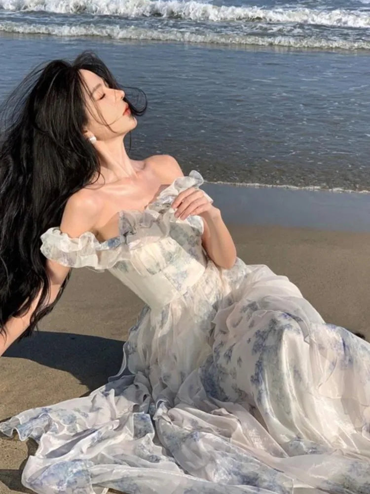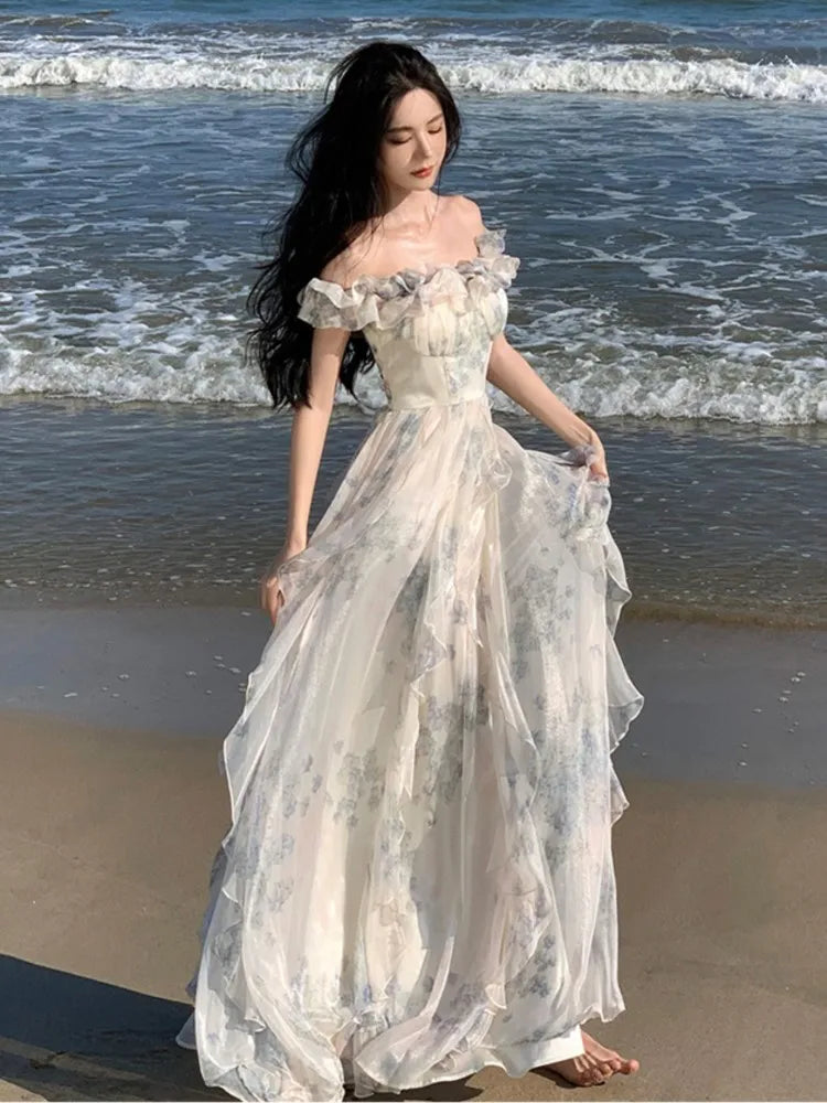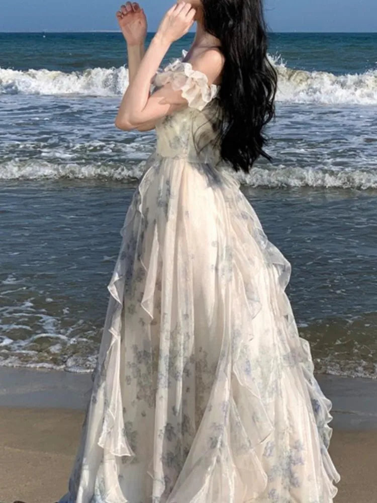 KYLETHOMASW - Summer Women Fashion Elegant Casual Floral Midi Dress Vintage Chic A-Line Ruffles Beach Holiday Clothes Female Robe Vestidos New