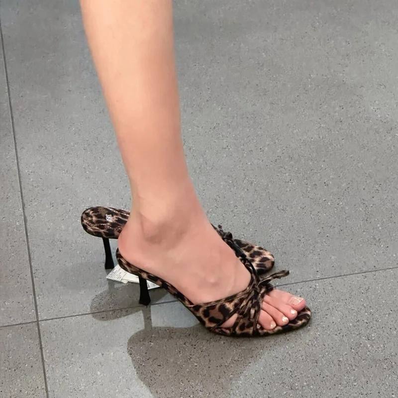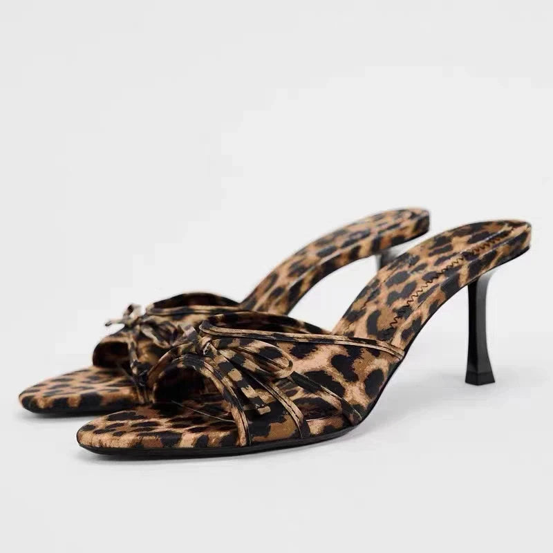 KYLETHOMASW - Summers Leopard Women Slippers Shoes Casual Street Style Ladies Open Toe High Heel Slides