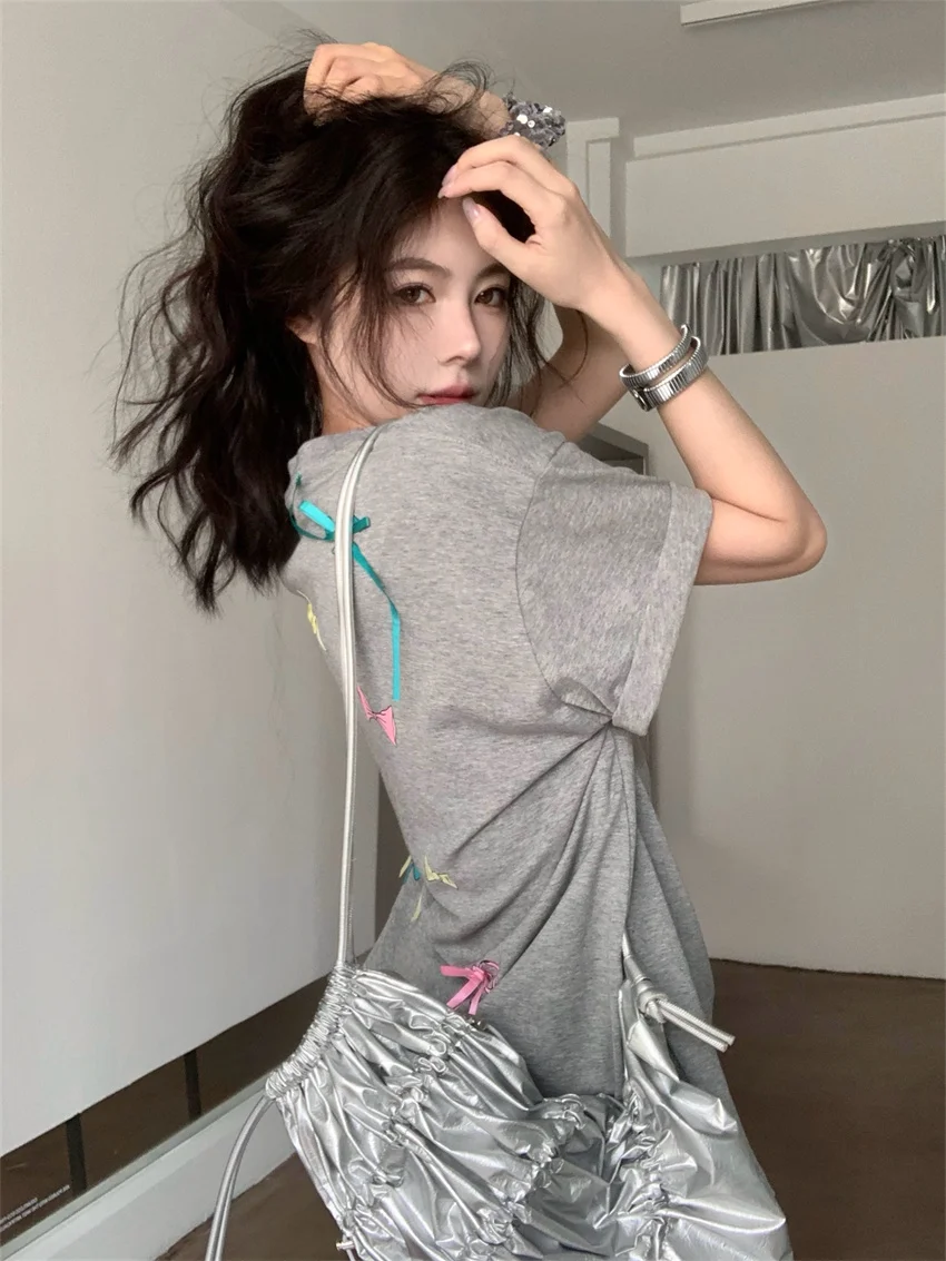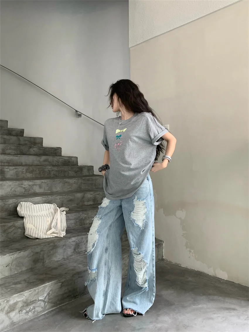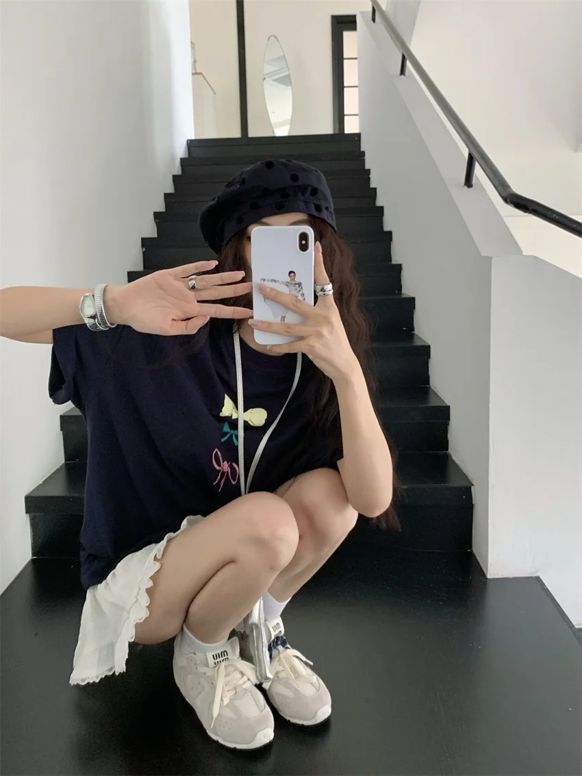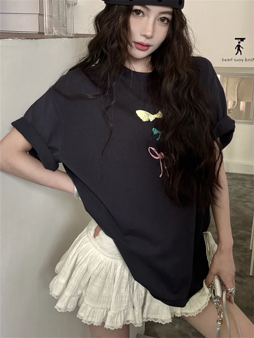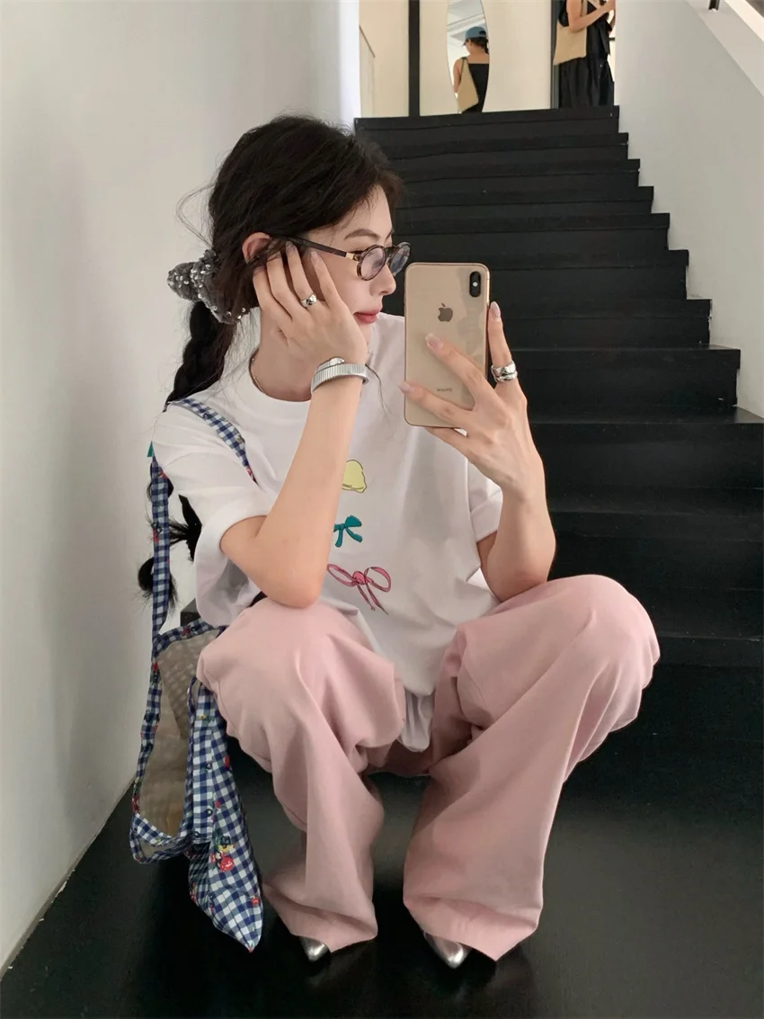 KYLETHOMASW - Sweet Printed Bow T-Shirts Women Oversize Half Sleeve 2024 Loose New Casual Summer Daily All Match Fashion Tees