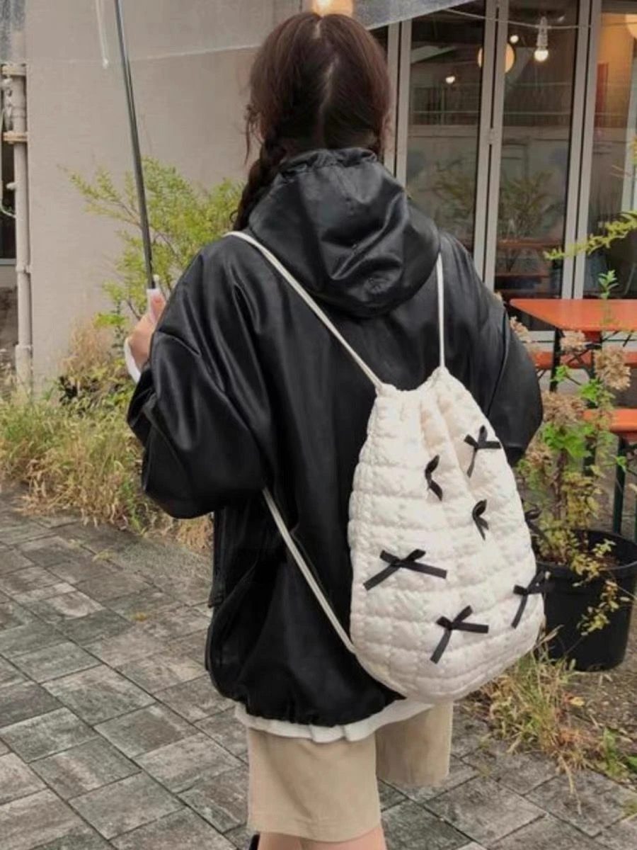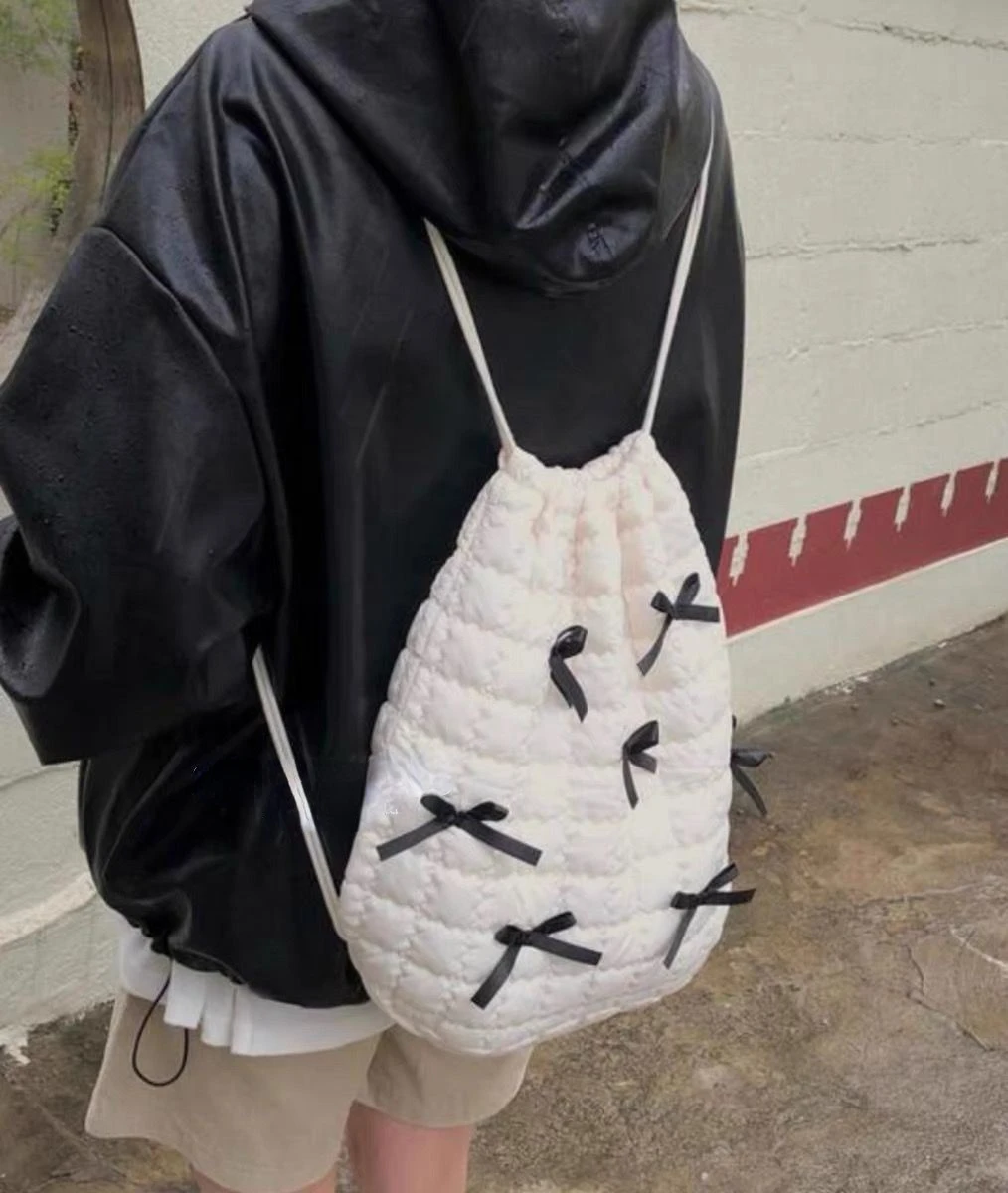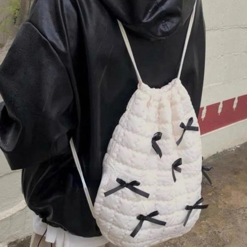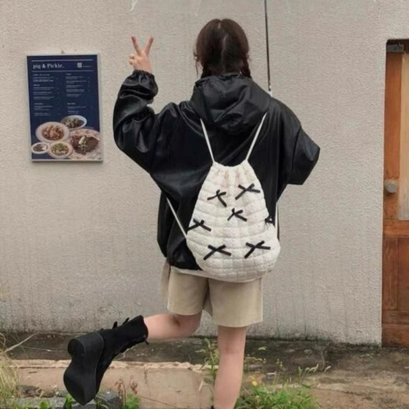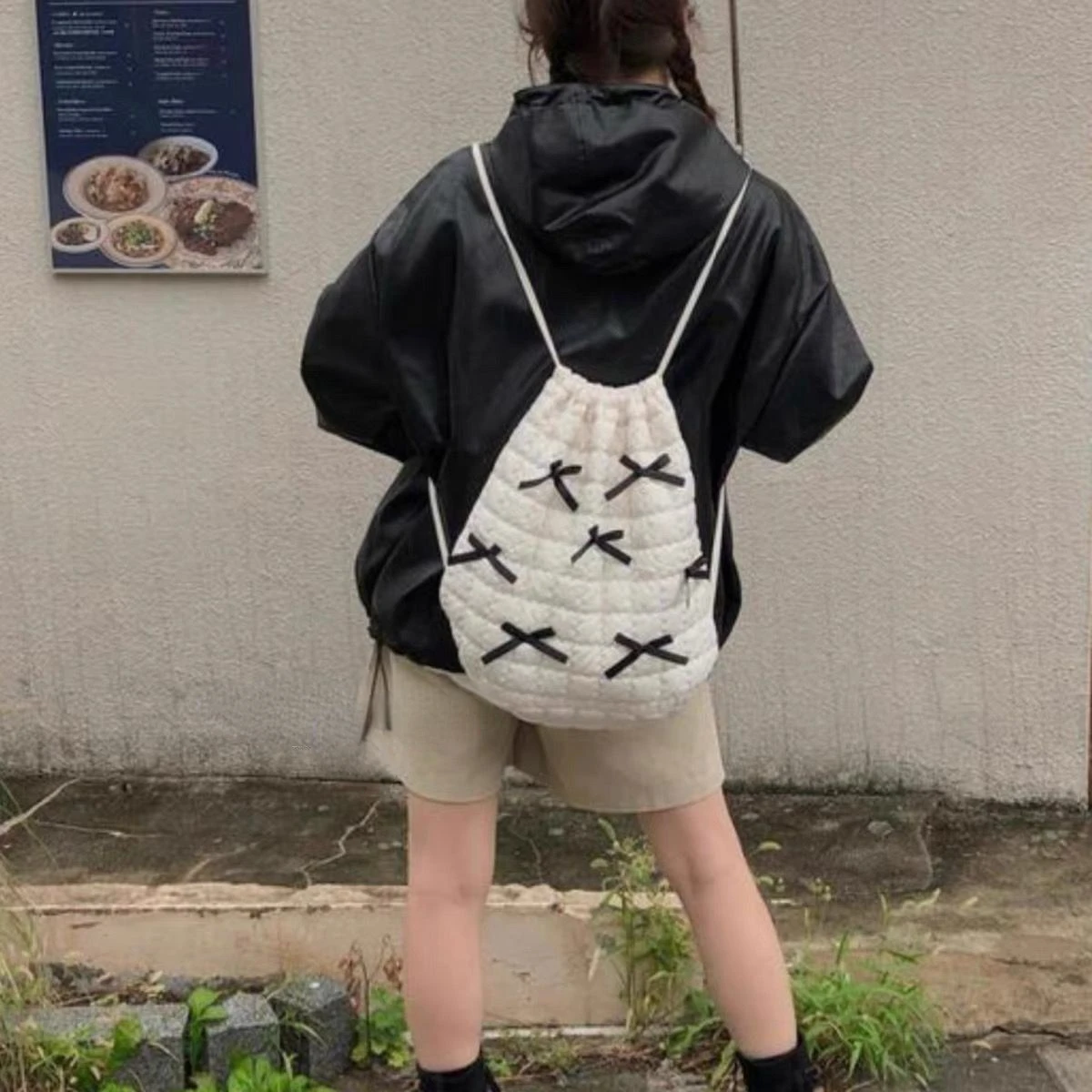 Kylethomasw Sweet Y2k Aesthetic Kawaii Bow Backpack Japanese Girls All Match Drawstring Backpacks Women Students Casual Trendy Schoolbags
