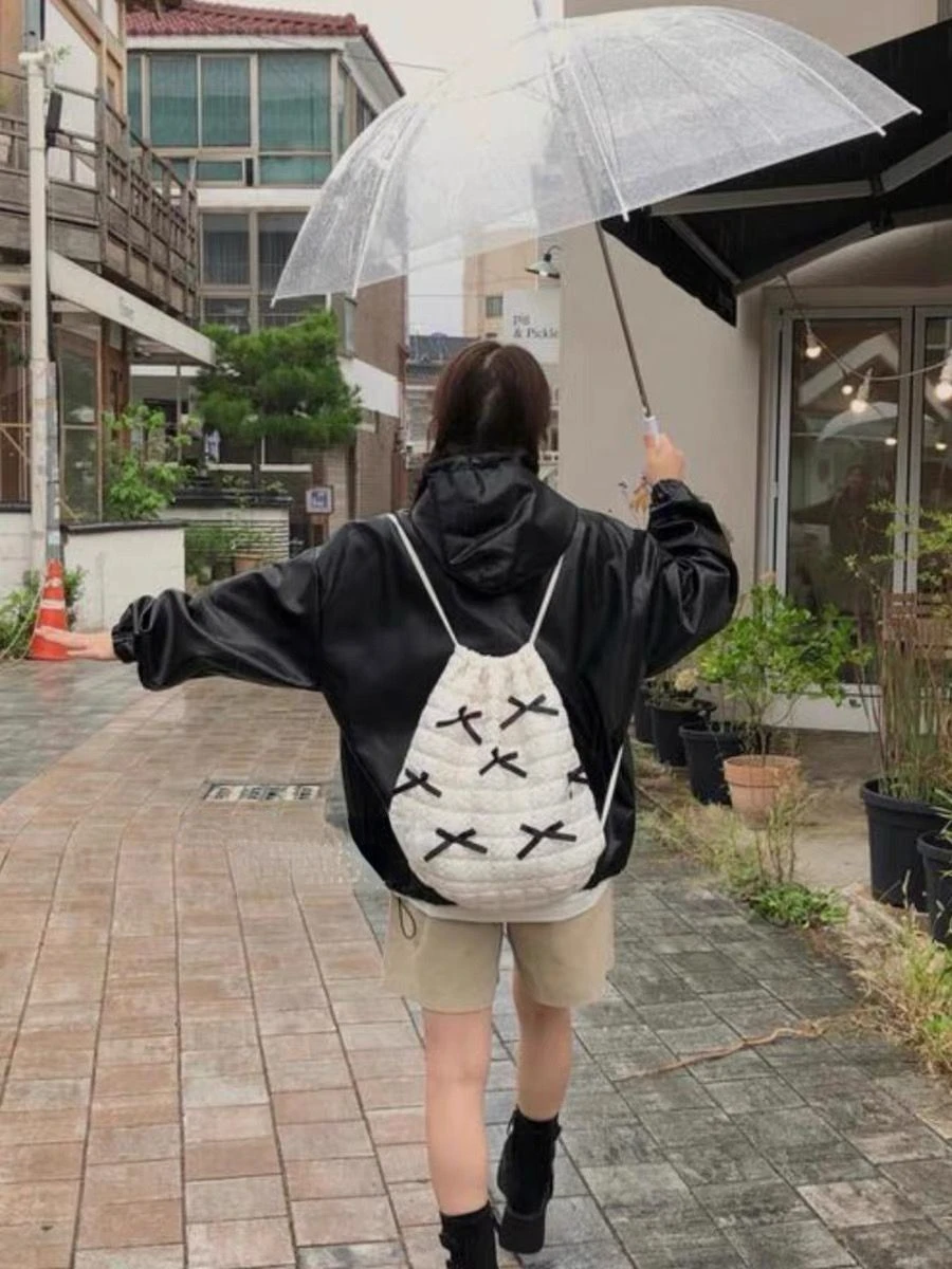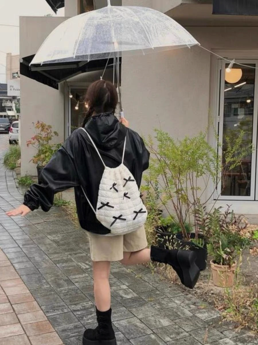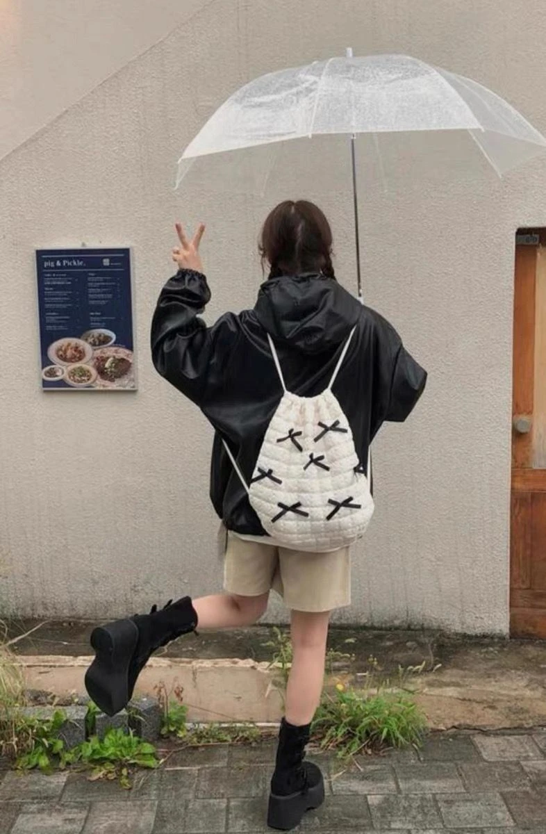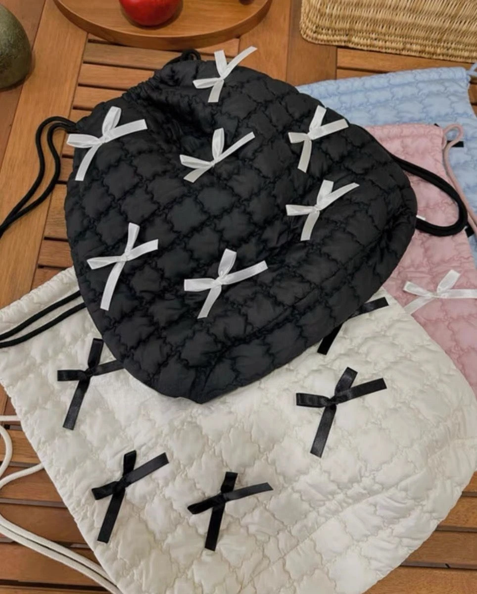 Kylethomasw Sweet Y2k Aesthetic Kawaii Bow Backpack Japanese Girls All Match Drawstring Backpacks Women Students Casual Trendy Schoolbags