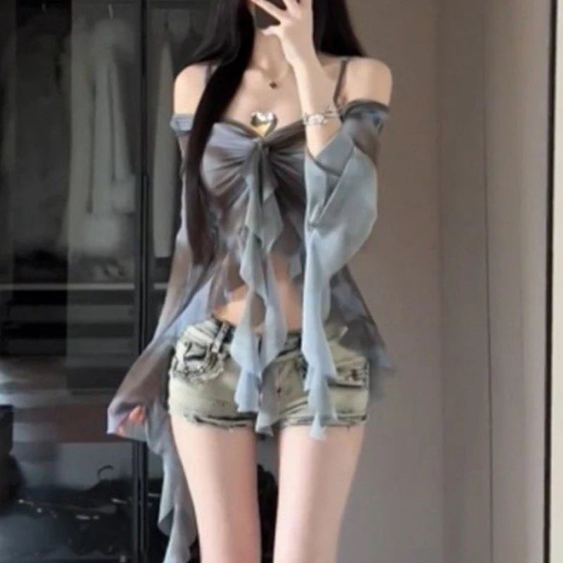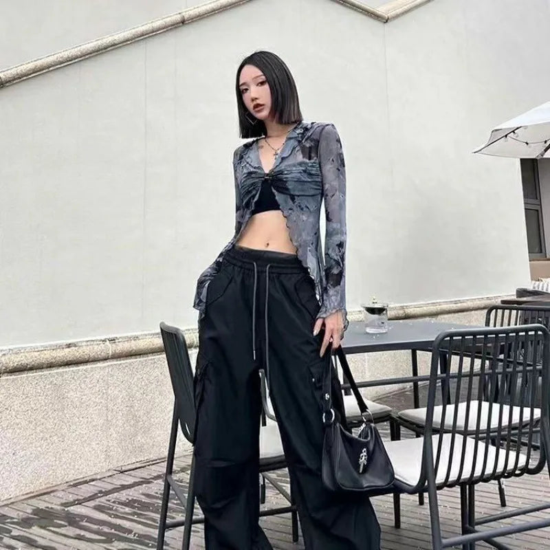 Kylethomasw Tie-dye Women's Fashion Short Cardigan V-neck Tie Long-sleeved T-shirt Women Casual Short Tops 2024 Summer New Ladies' T-shirts
