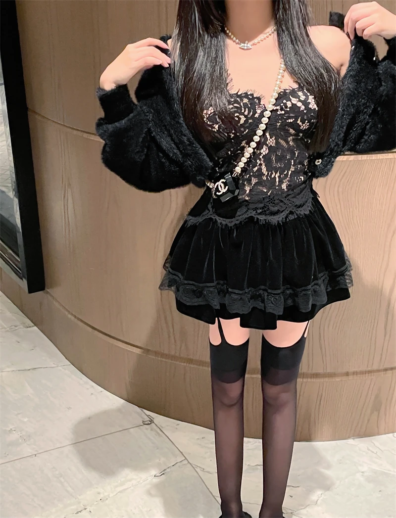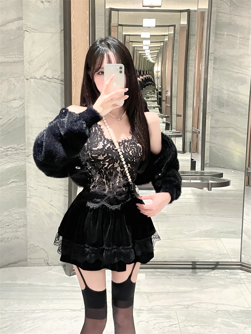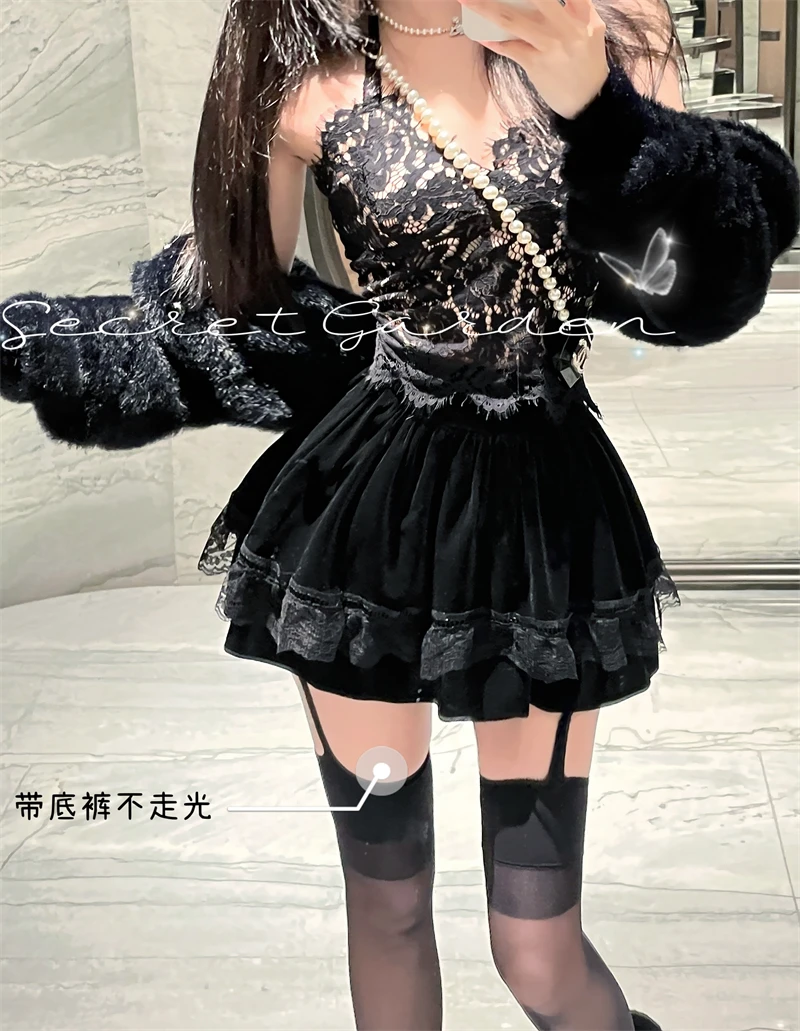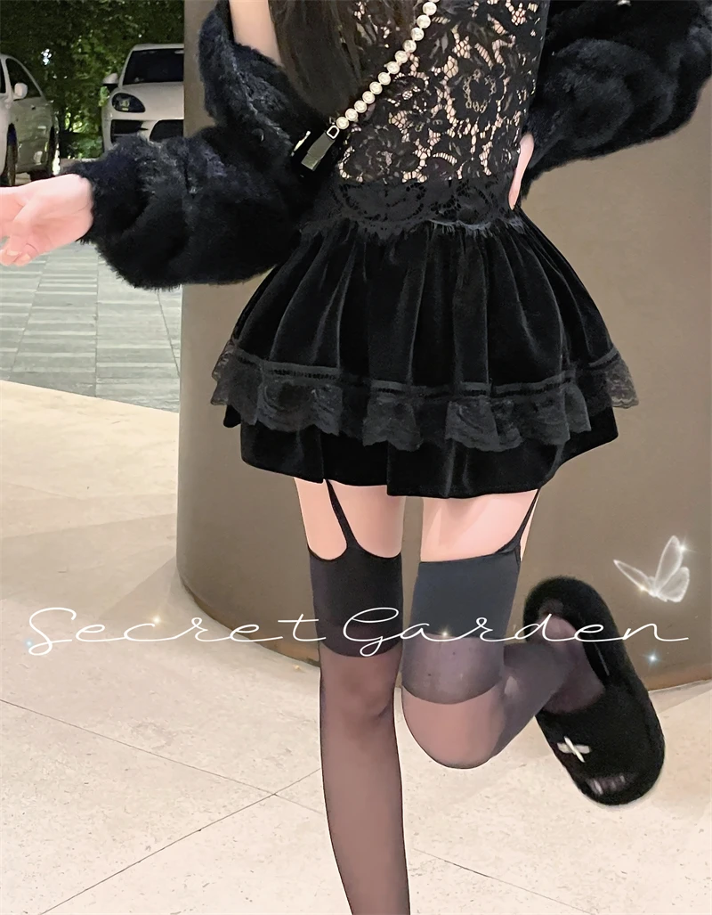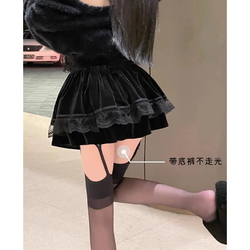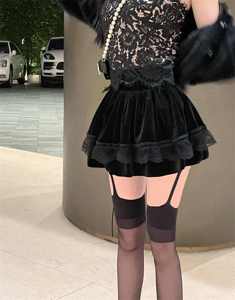 Vintage Korean Retro Japanese Style Lace Patchwork Low Waist Cake Mini Skirt Streetwear Fashion Skirt