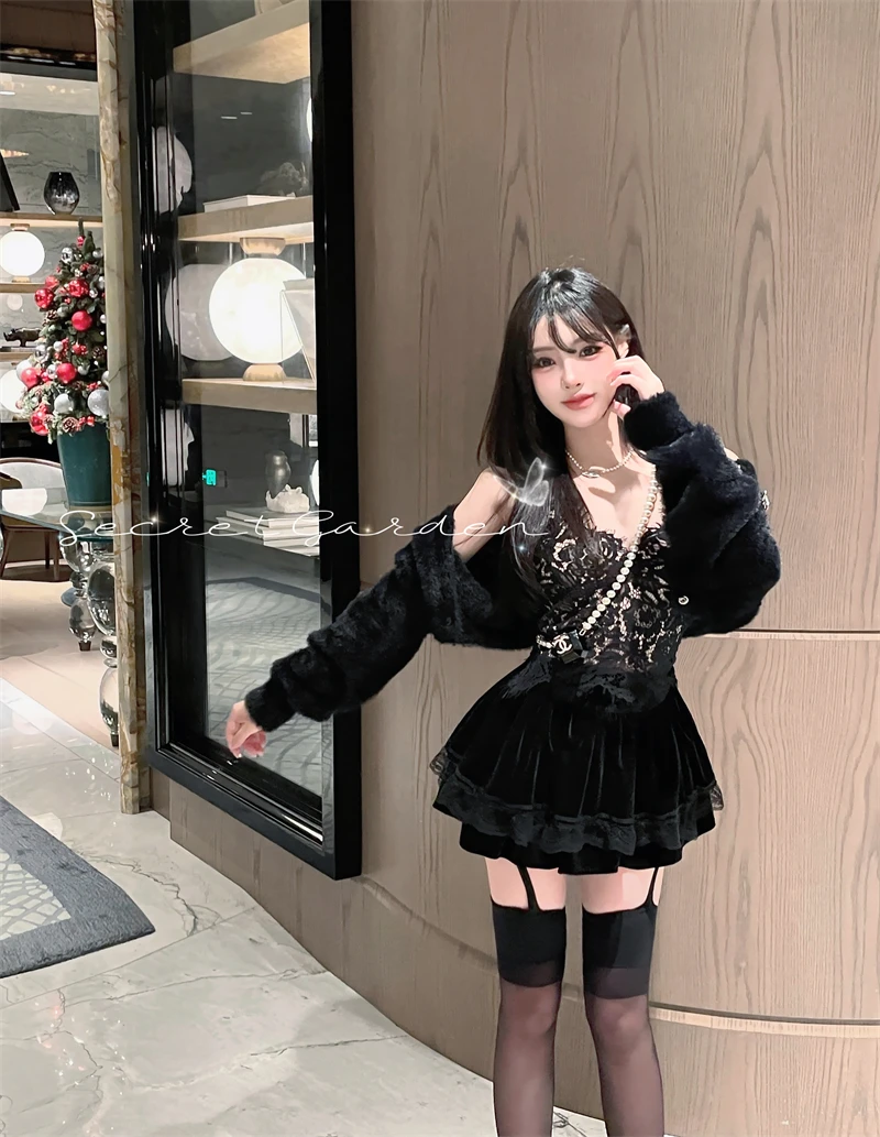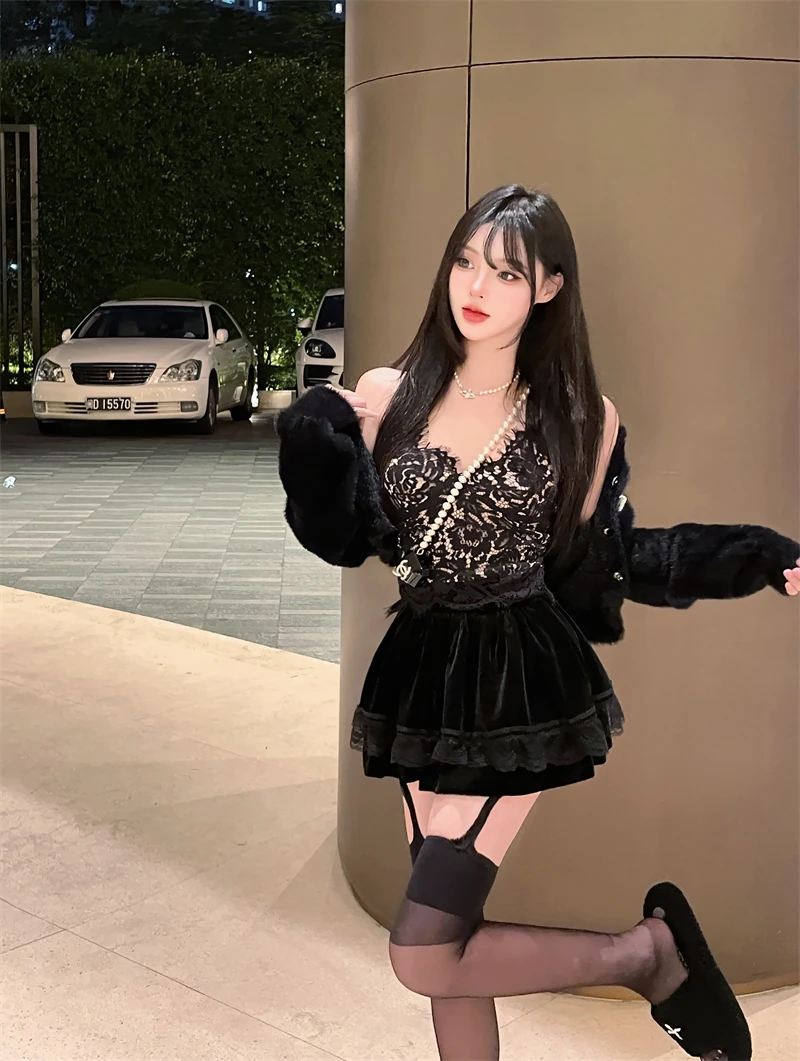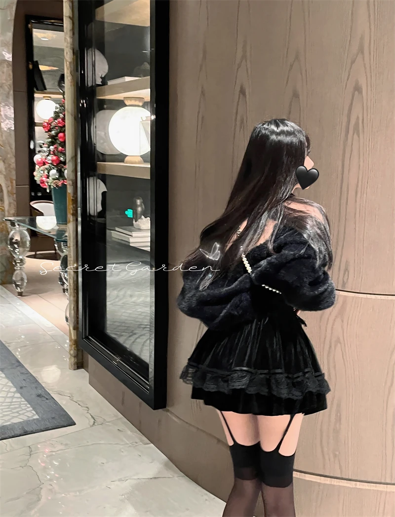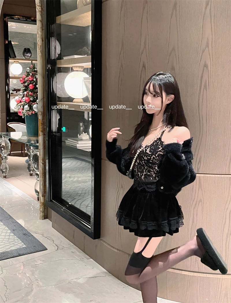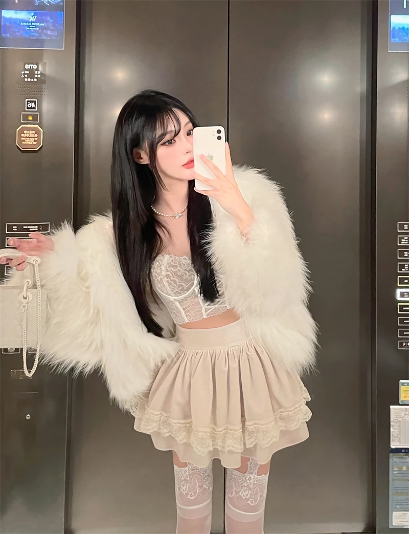 Vintage Korean Retro Japanese Style Lace Patchwork Low Waist Cake Mini Skirt Streetwear Fashion Skirt