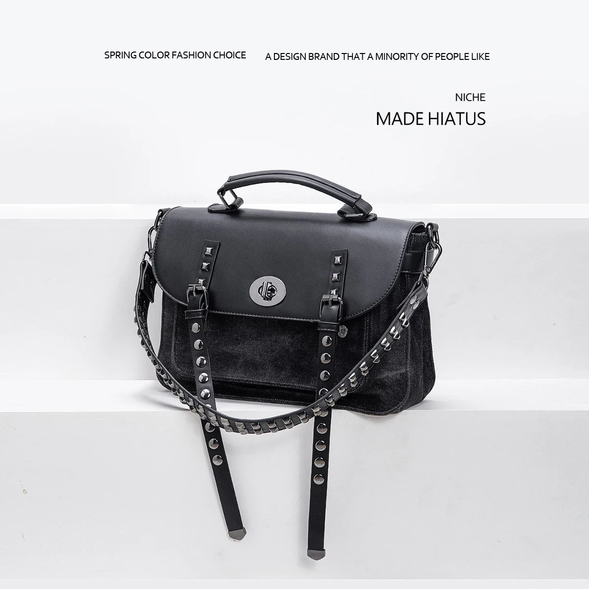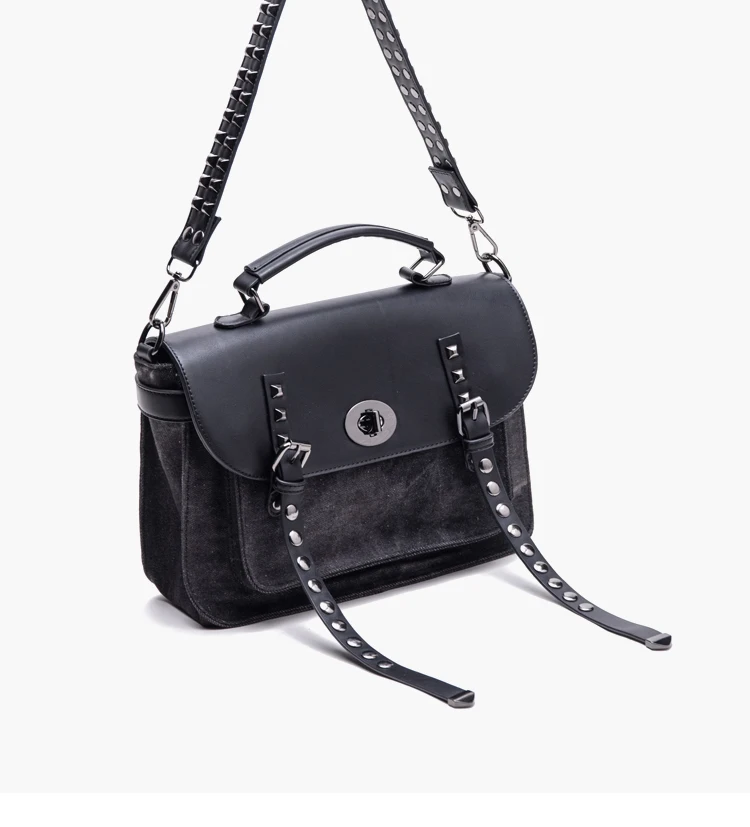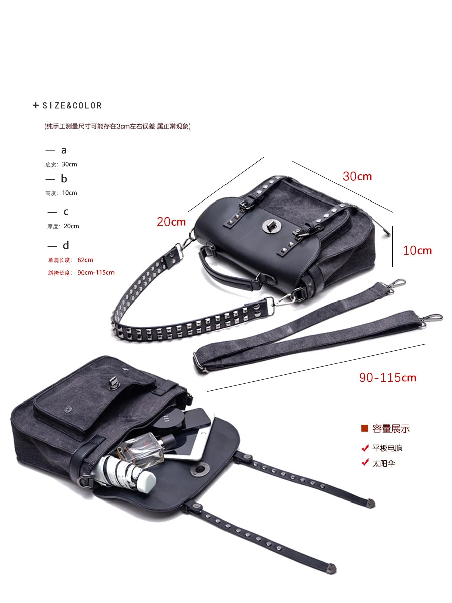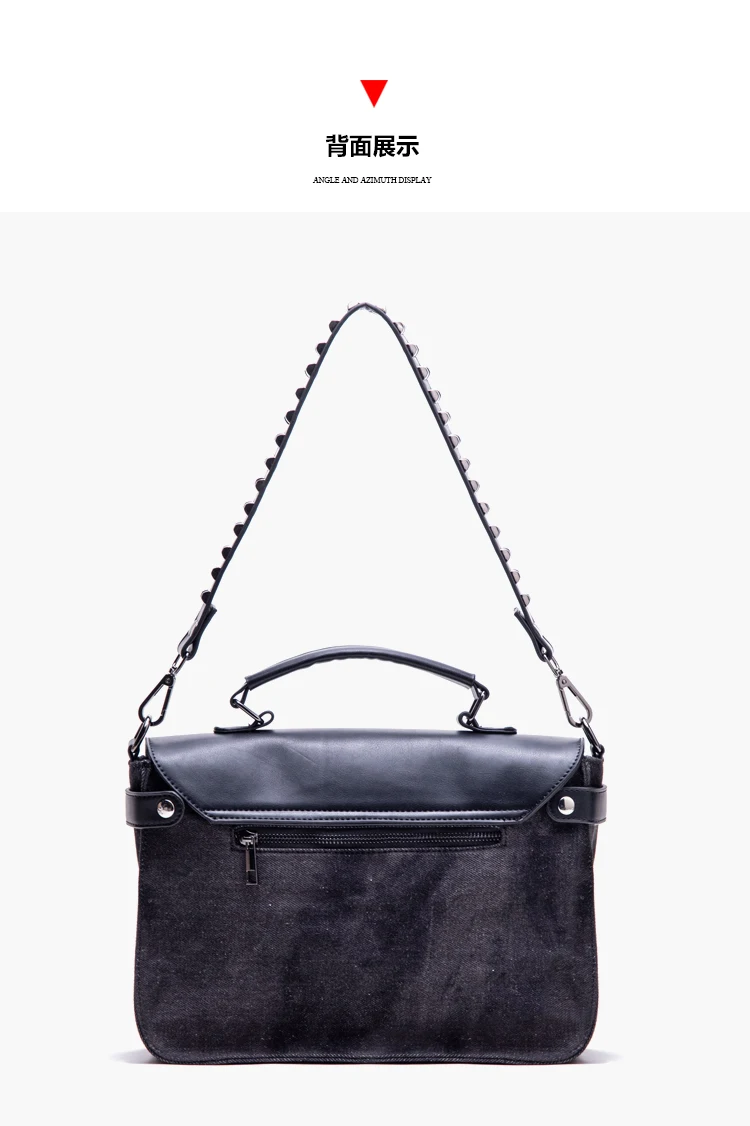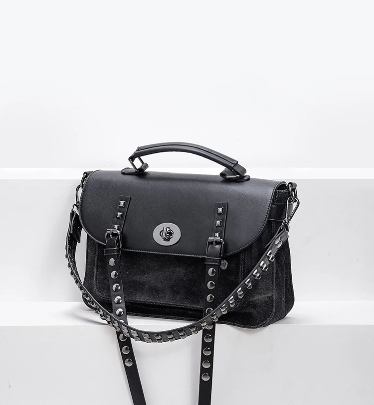 KYLETHOMASW - washing water denim rivet locomotive bag single shoulder crossbody rivet shoulder strap heavy industry versatile leisure mail