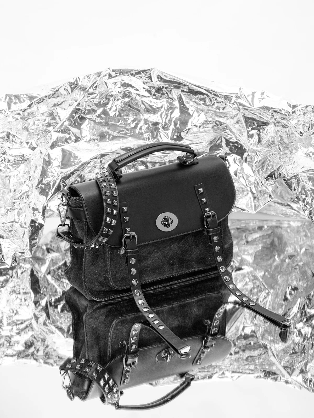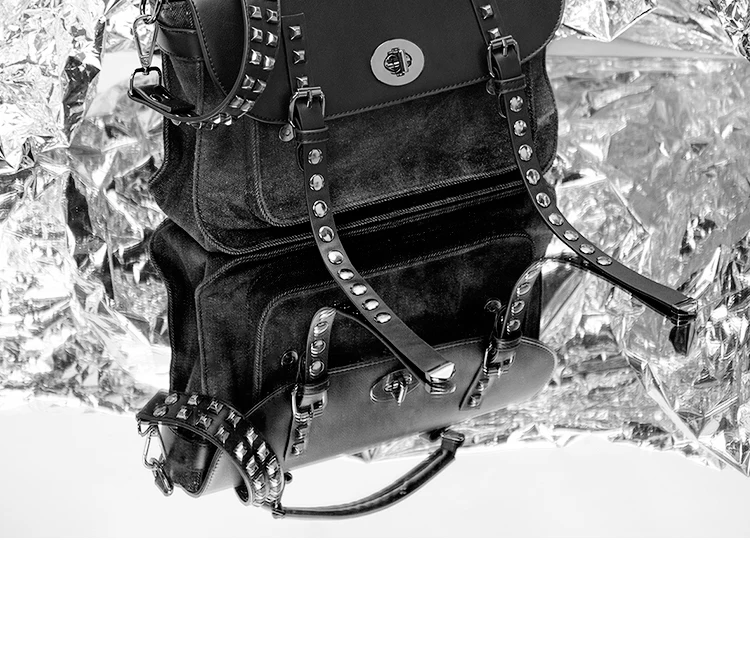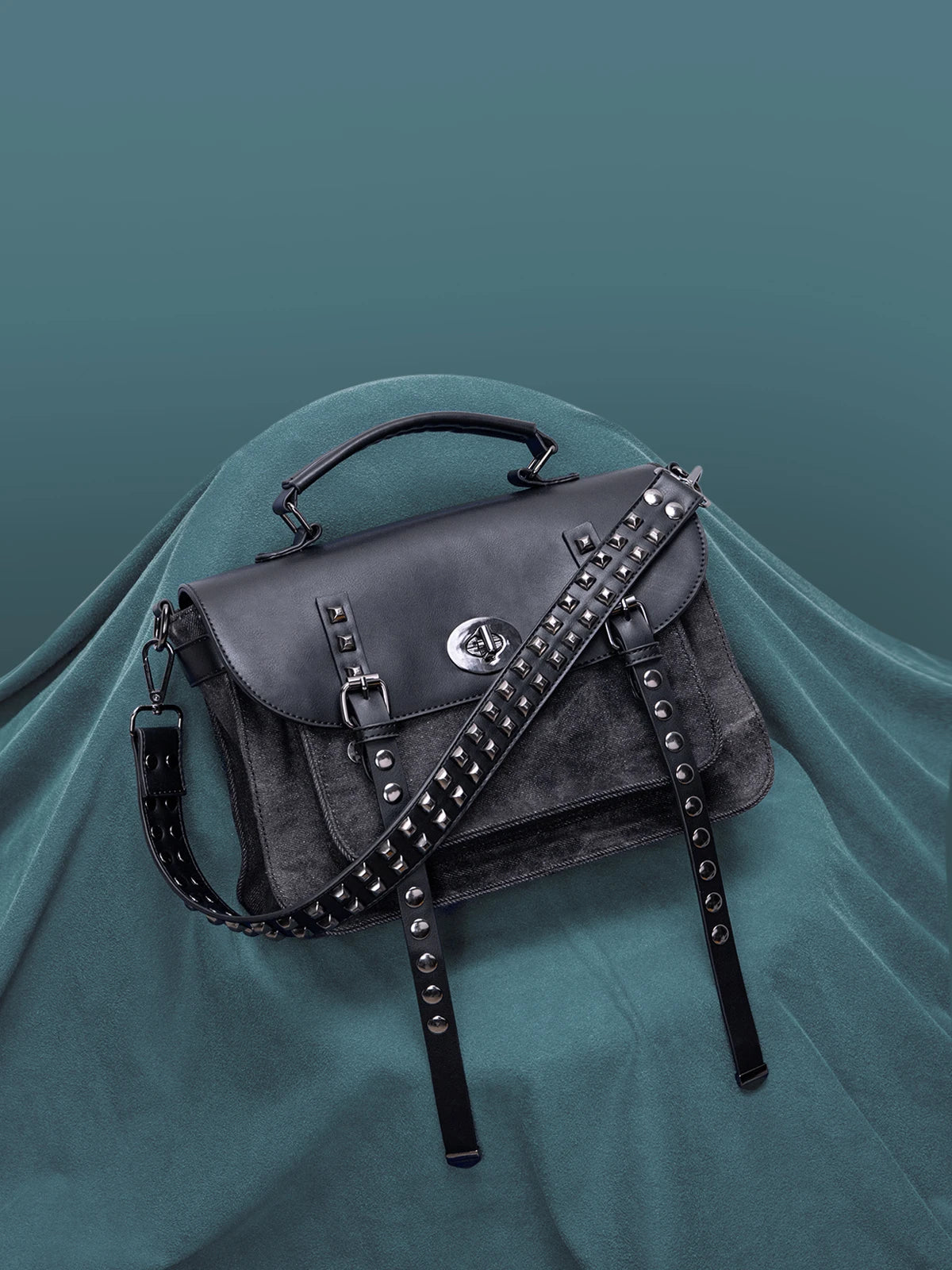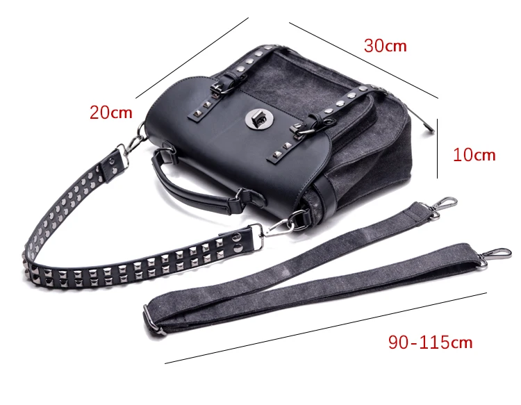 KYLETHOMASW - washing water denim rivet locomotive bag single shoulder crossbody rivet shoulder strap heavy industry versatile leisure mail