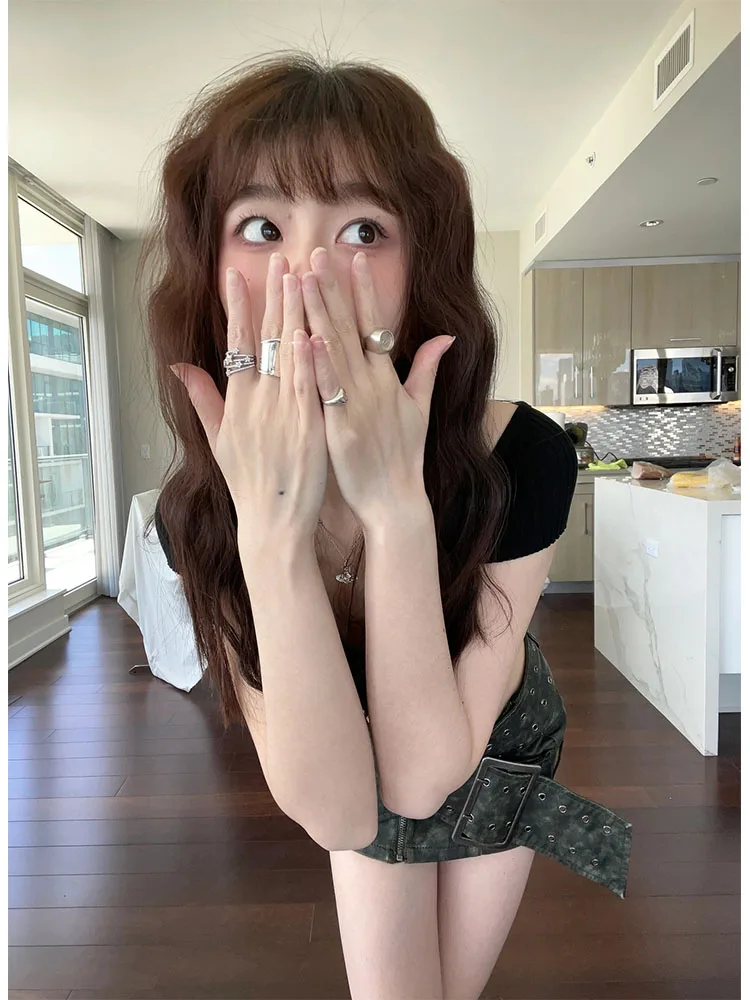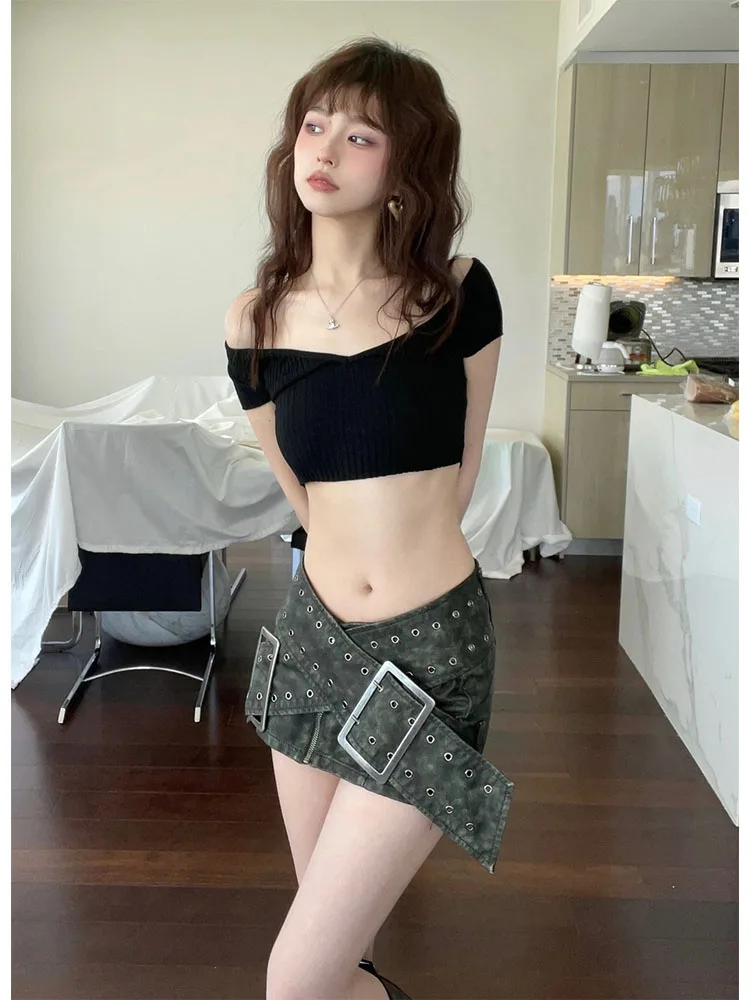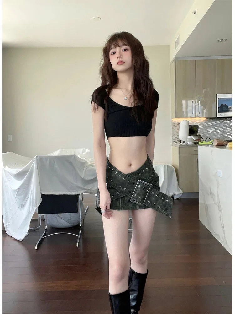 Woman Gothic PU Mini Faux Leather Skirt Low Waist Skirt With Belt Aline Skirt Korean Y2k Design 2000s Aesthetics Coquette Gyaru