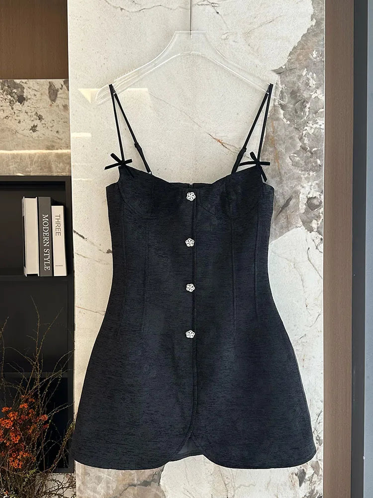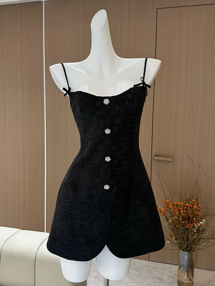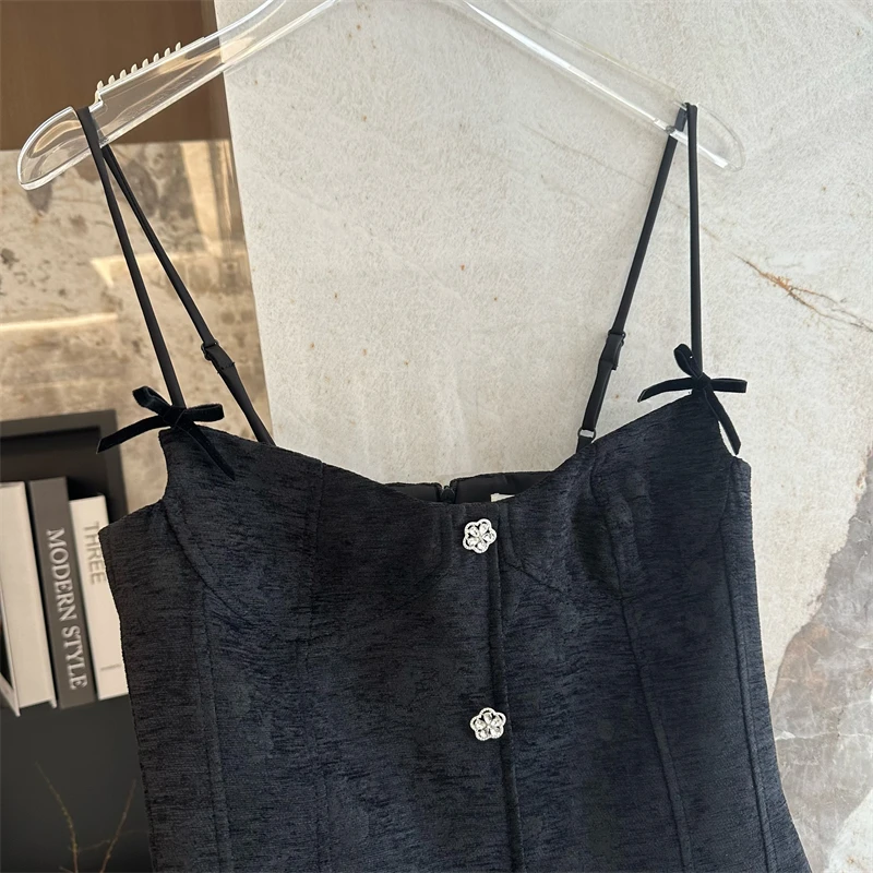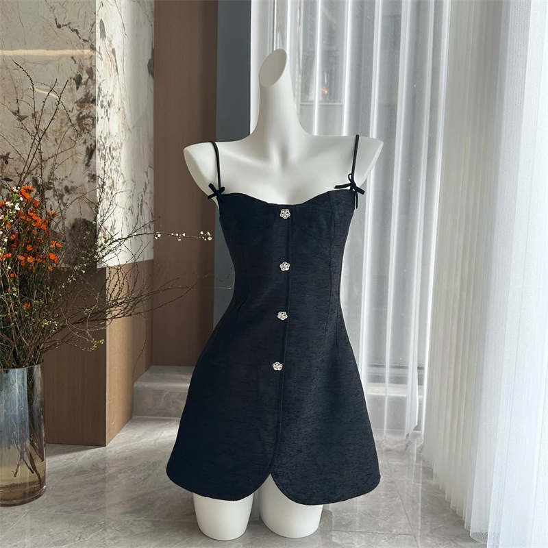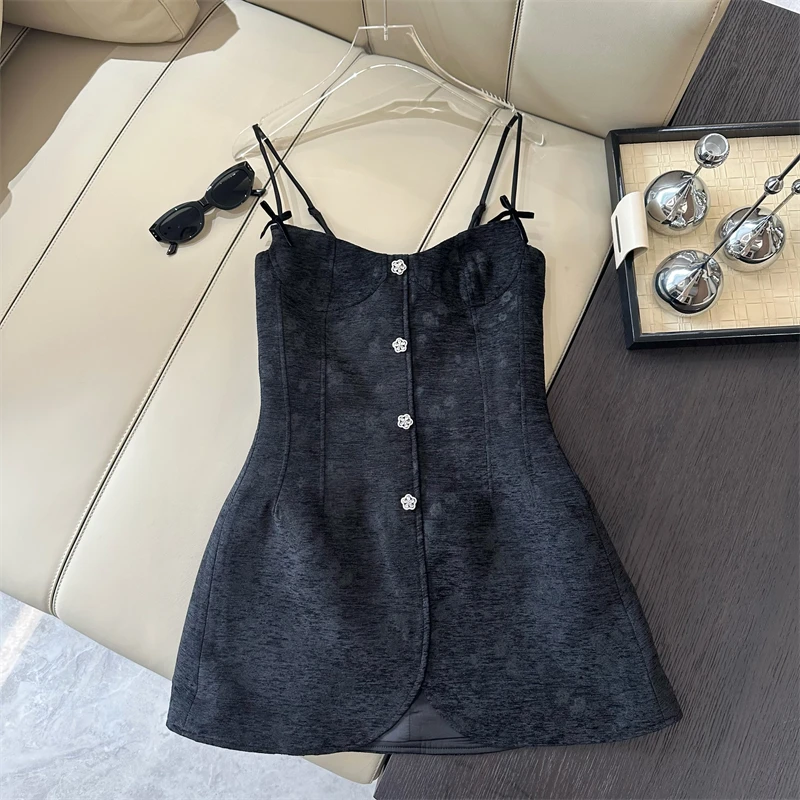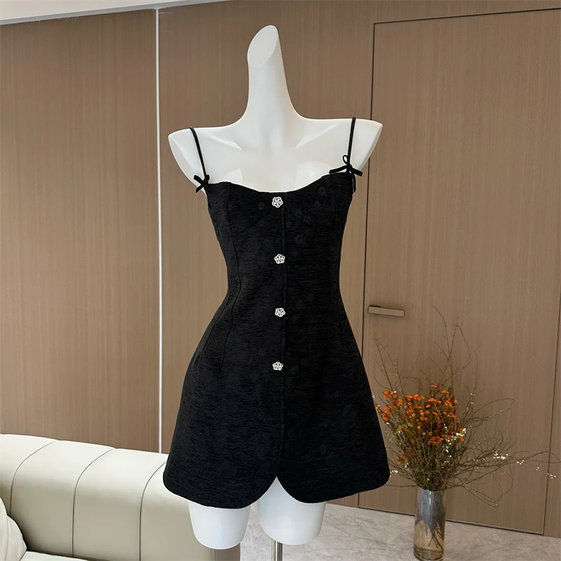 Women Black Gothic Sundress ALine Dress Fashion Off Shoulder OnePiece Frocks Sleeveless Basic Streetwear Tide Banquet Elegant