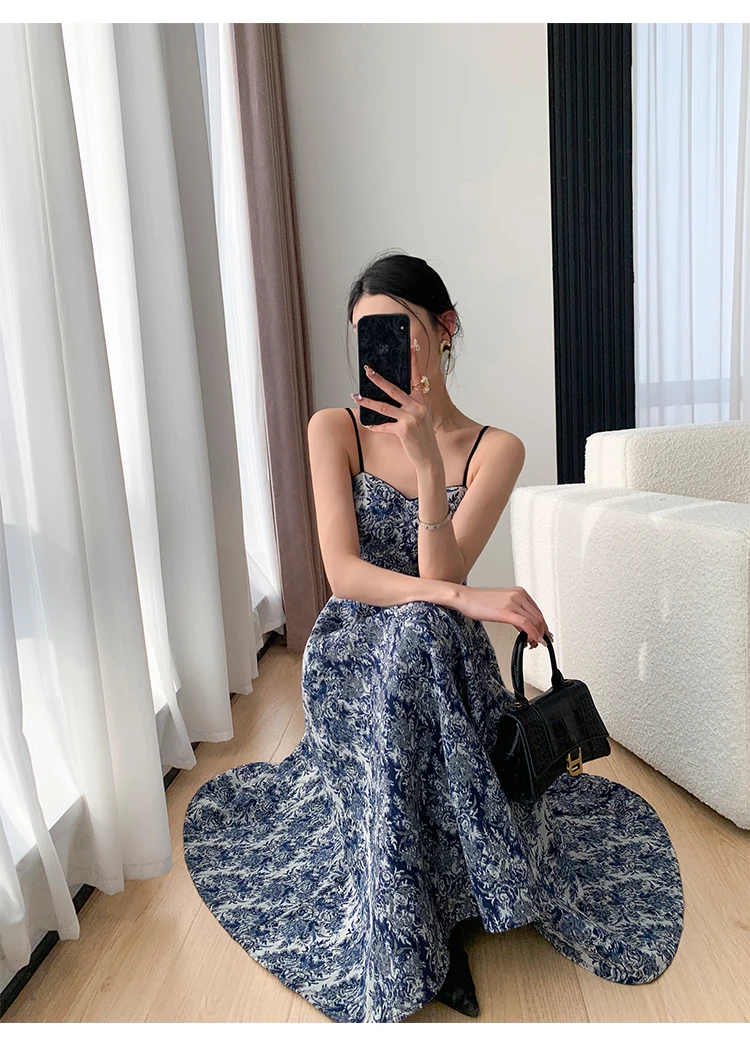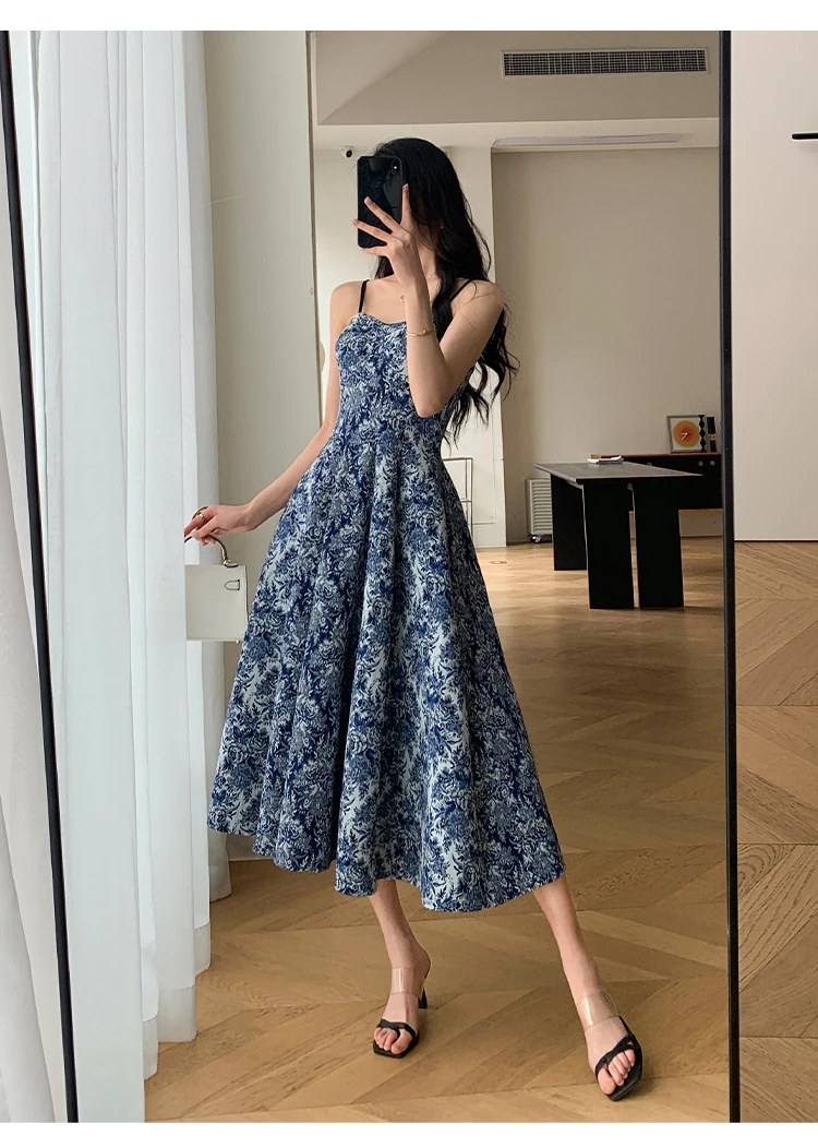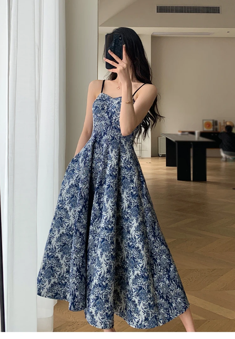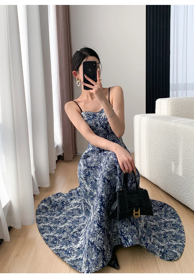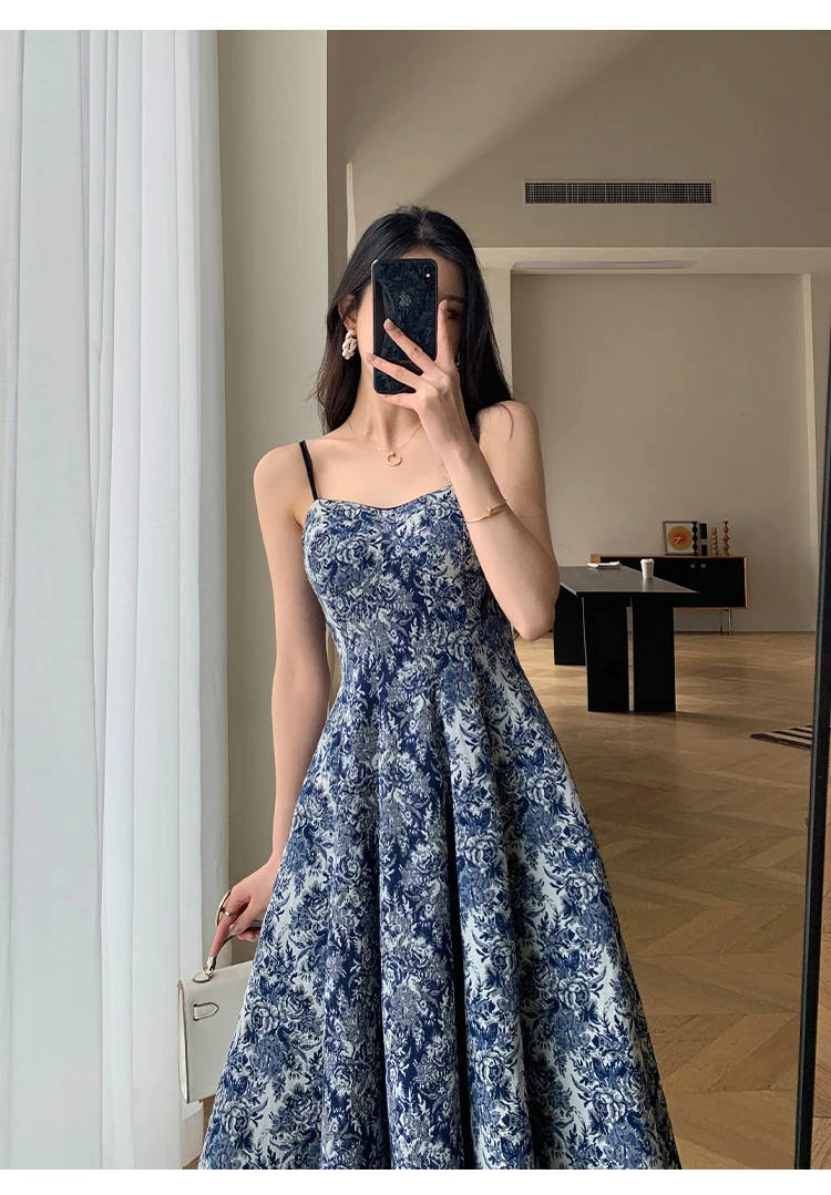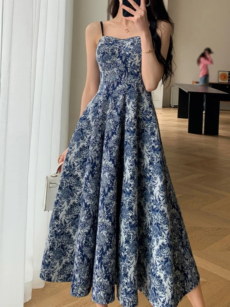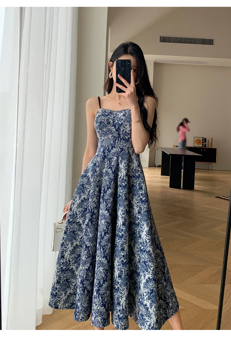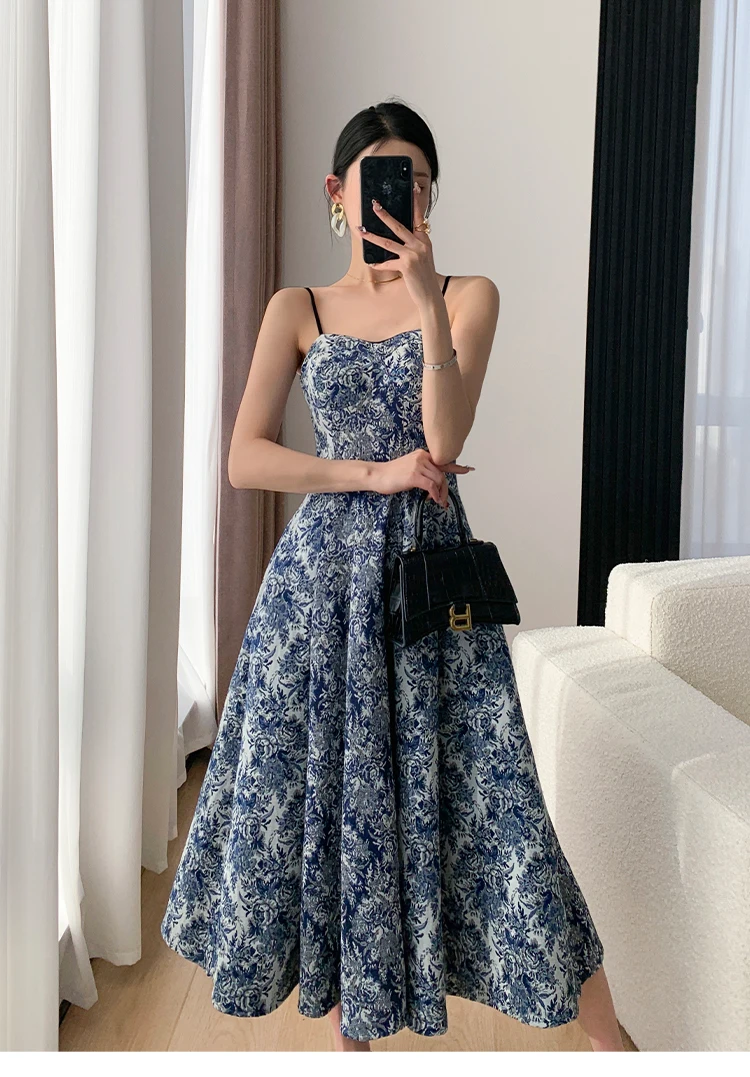 KYLETHOMASW - Women Fashion New Floral Casual Midi Dress Spaghetti Strap Elegant Slim A-Line Maxi Vestidos Female Chic Vintage Mujers Robe