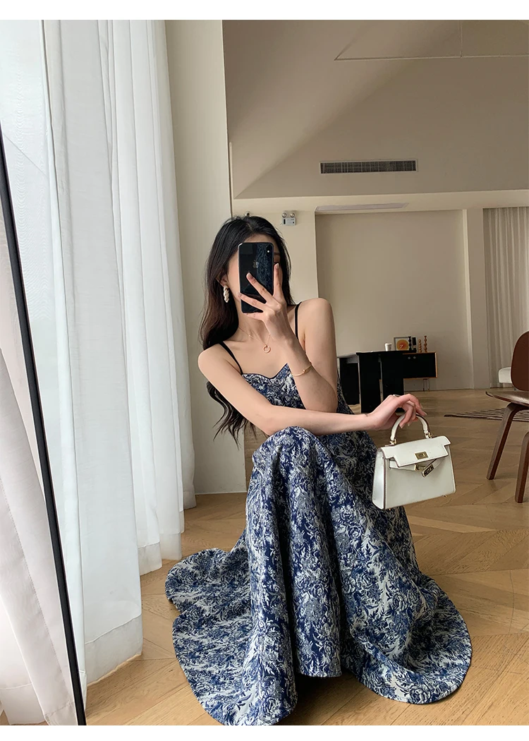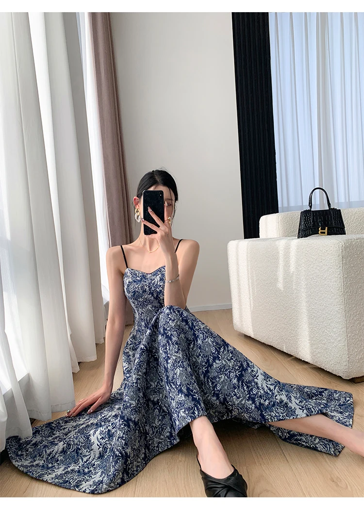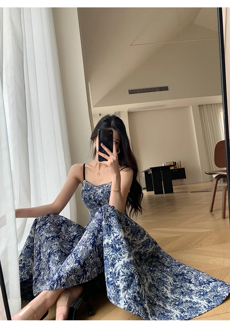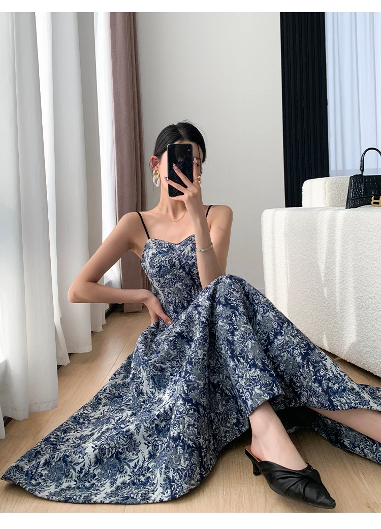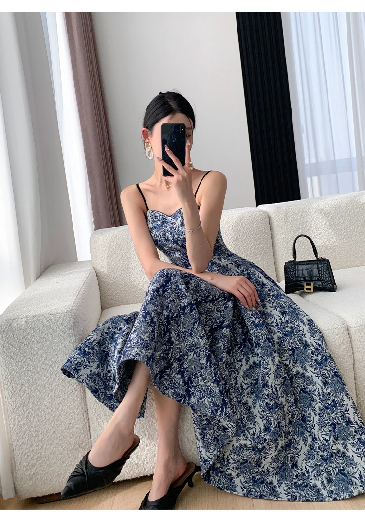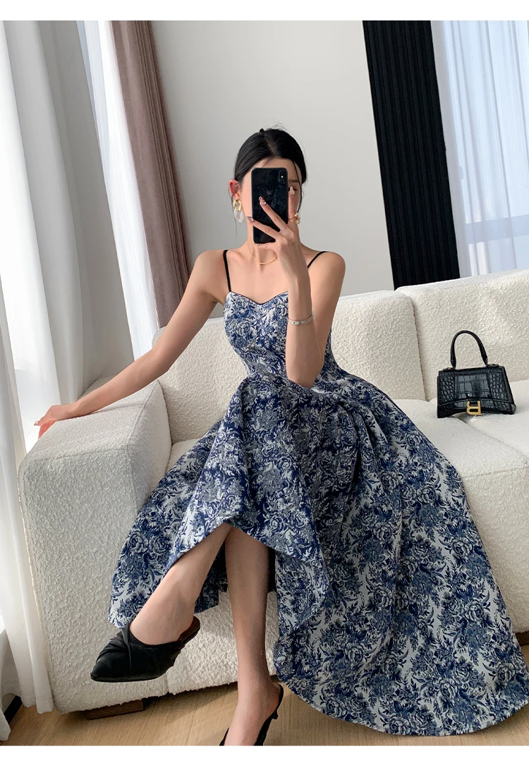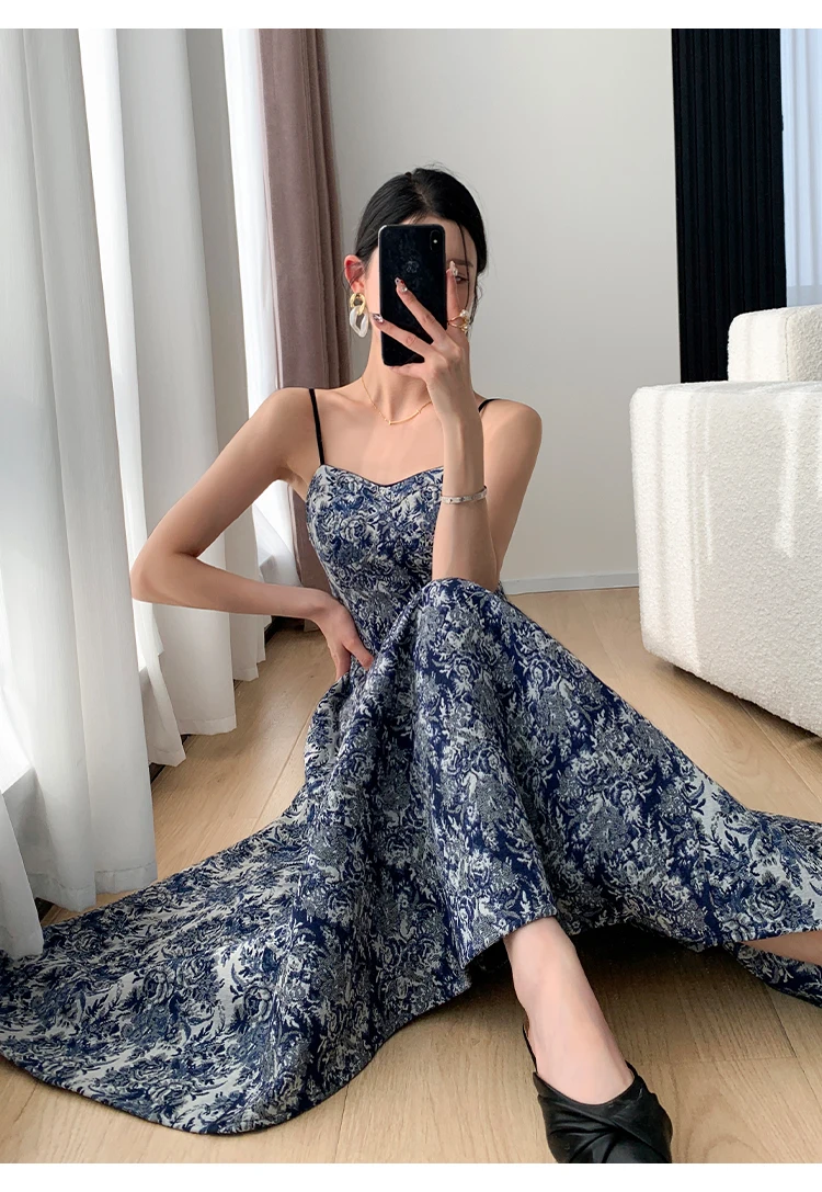KYLETHOMASW - Women Fashion New Floral Casual Midi Dress Spaghetti Strap Elegant Slim A-Line Maxi Vestidos Female Chic Vintage Mujers Robe
