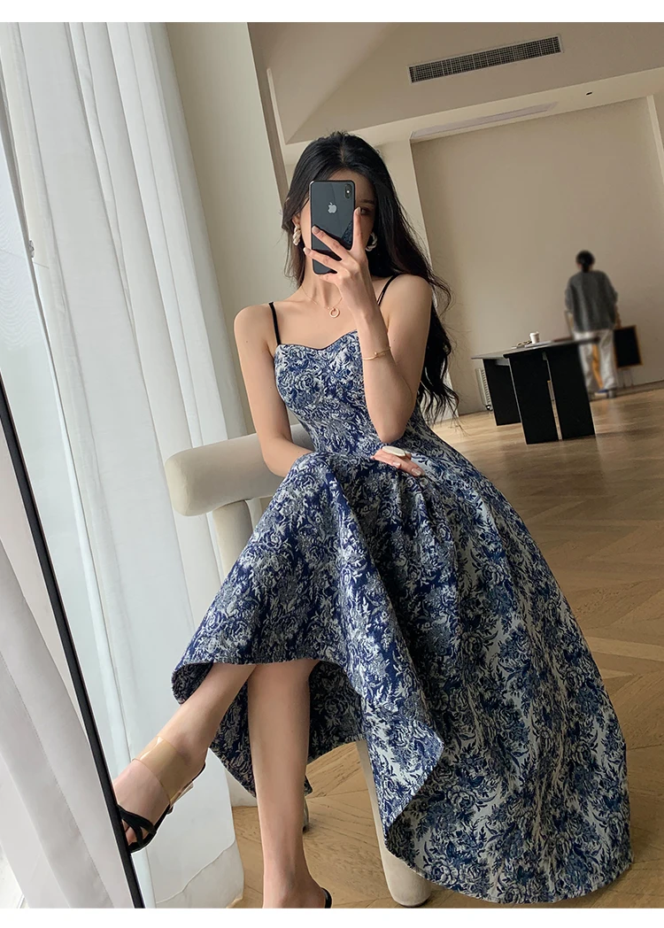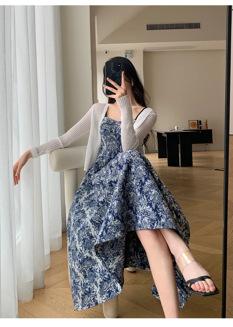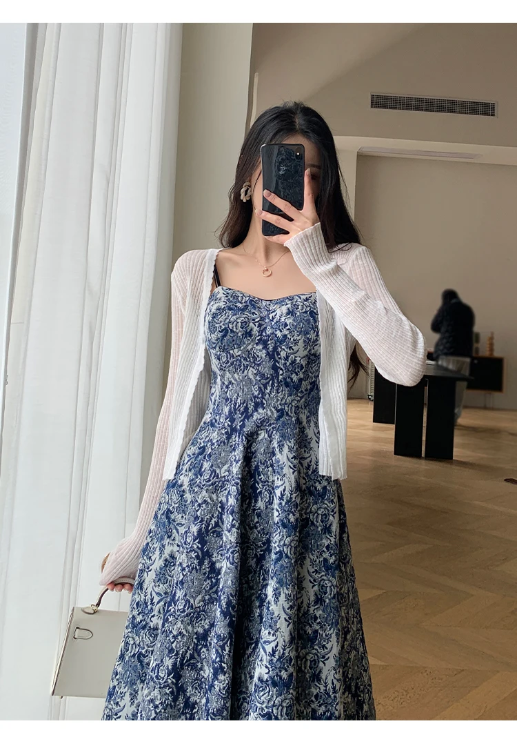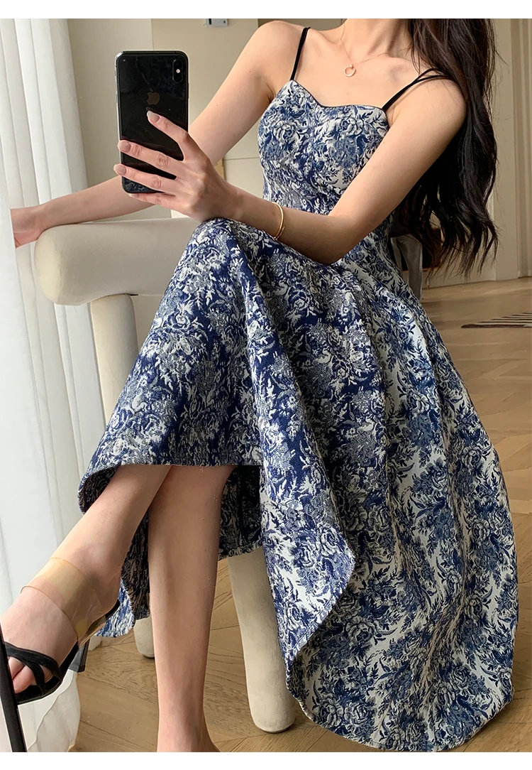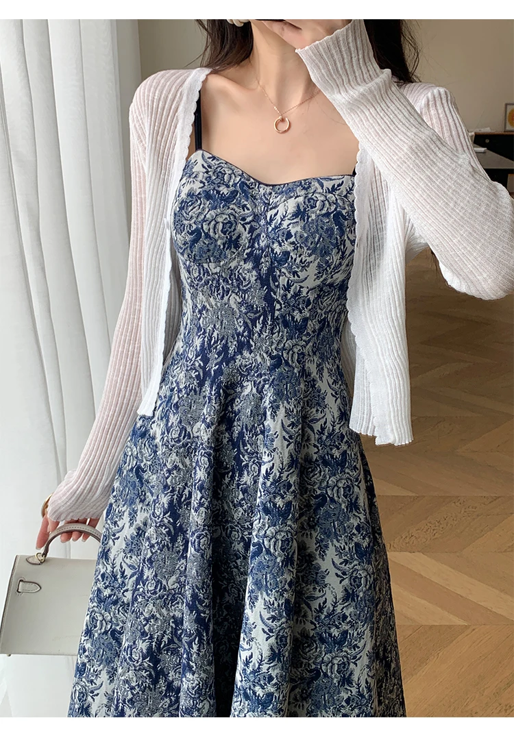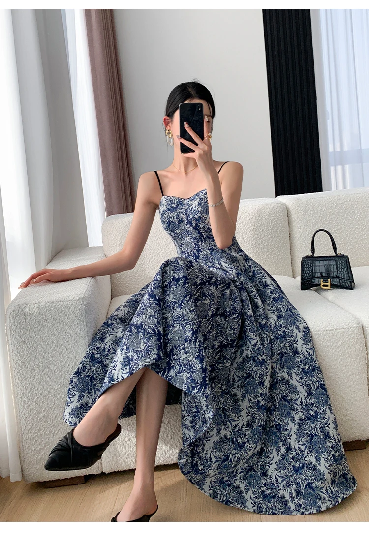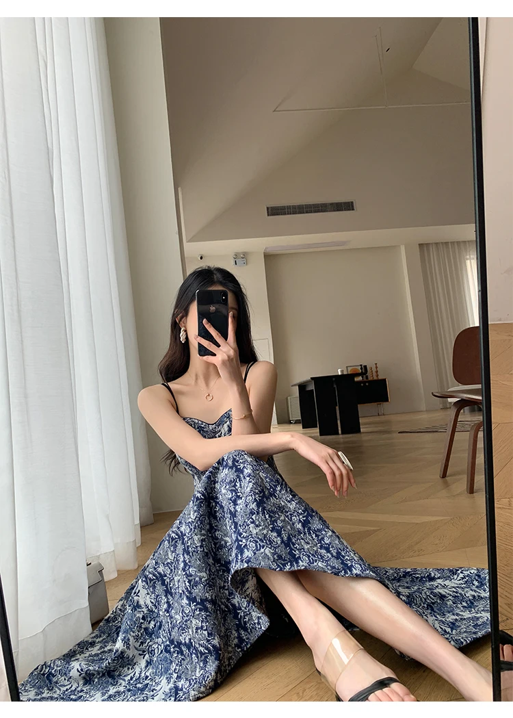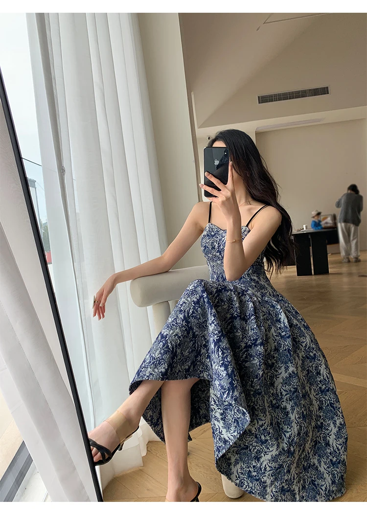 KYLETHOMASW - Women Fashion New Floral Casual Midi Dress Spaghetti Strap Elegant Slim A-Line Maxi Vestidos Female Chic Vintage Mujers Robe