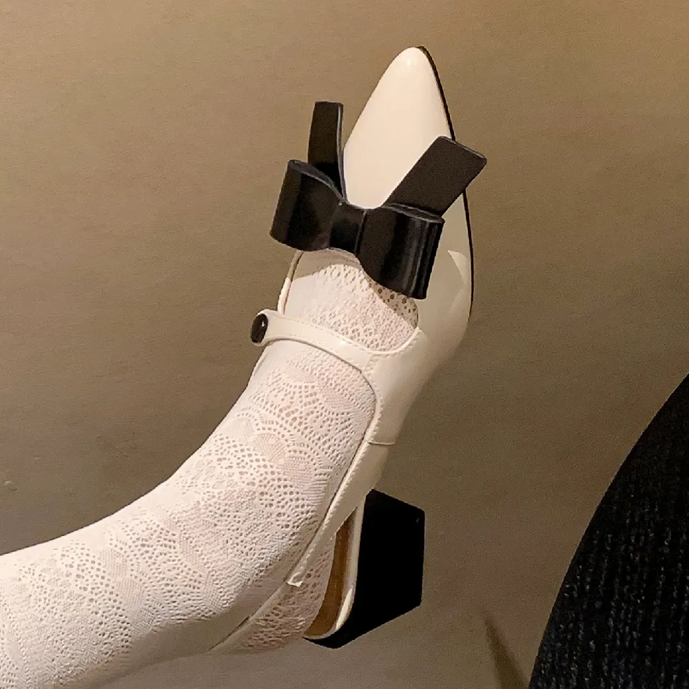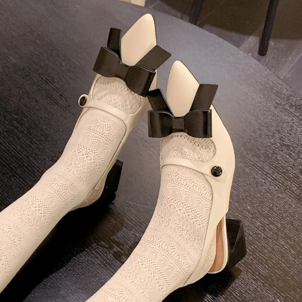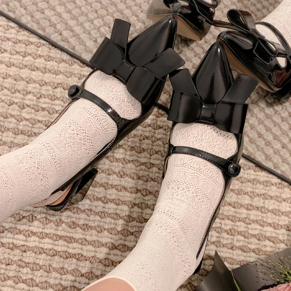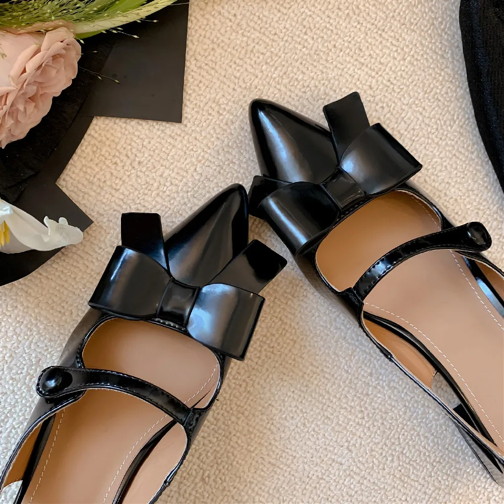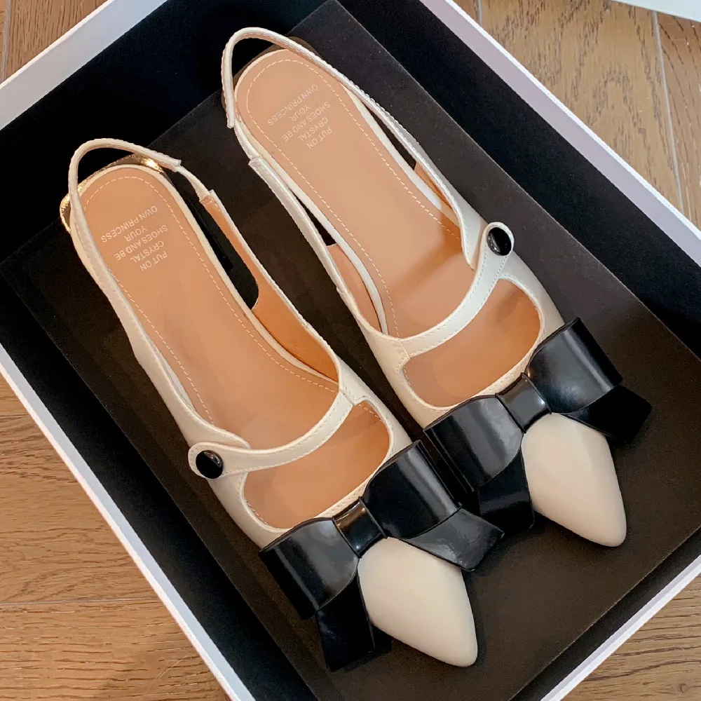 Kylethomasw - Women's genuine leather thick high heel pointed toe slip-on pumps sweet bowtie korean style summer heeled sandals shoes women